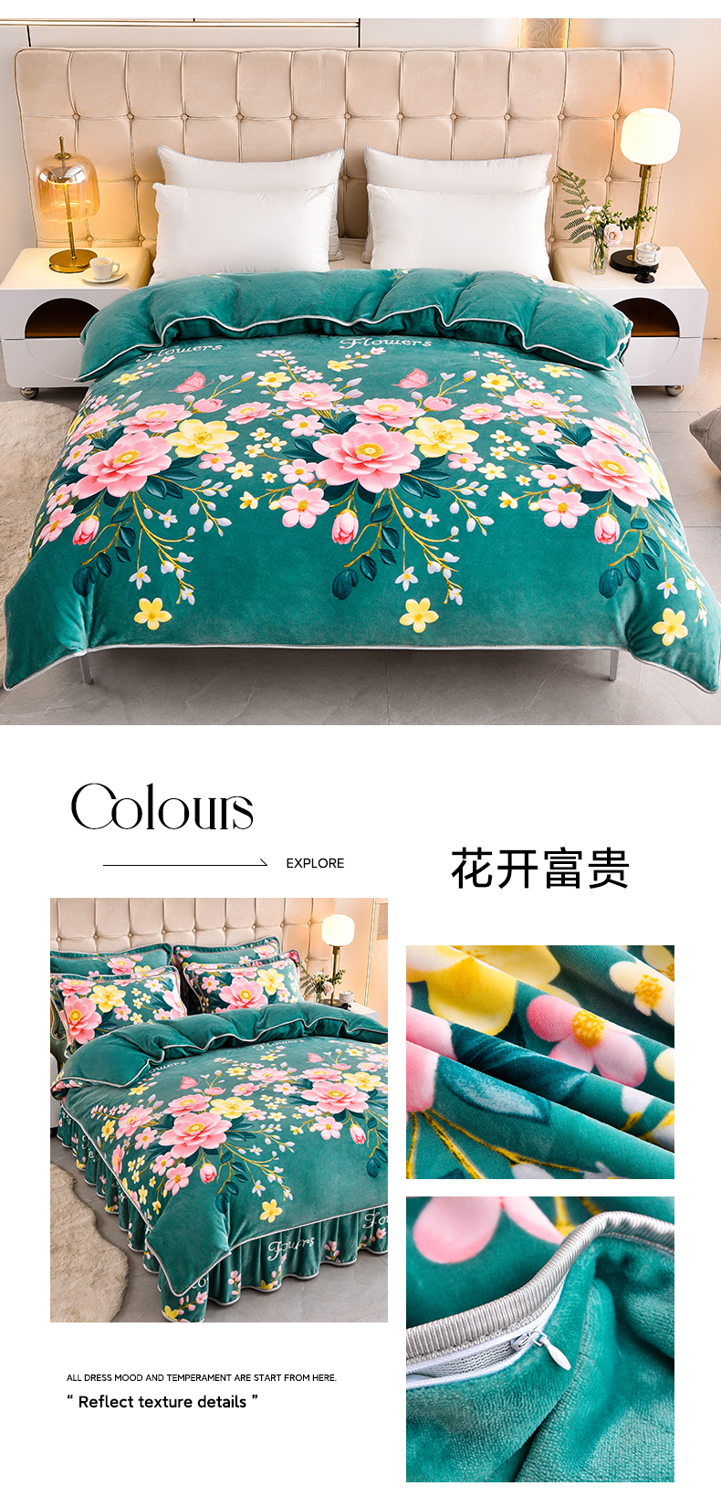 • 91家纺网 家纺一手货源 找家纺 博兰蒂 2025新款床裙款高克重牛奶绒印花单被套 春花秋拾