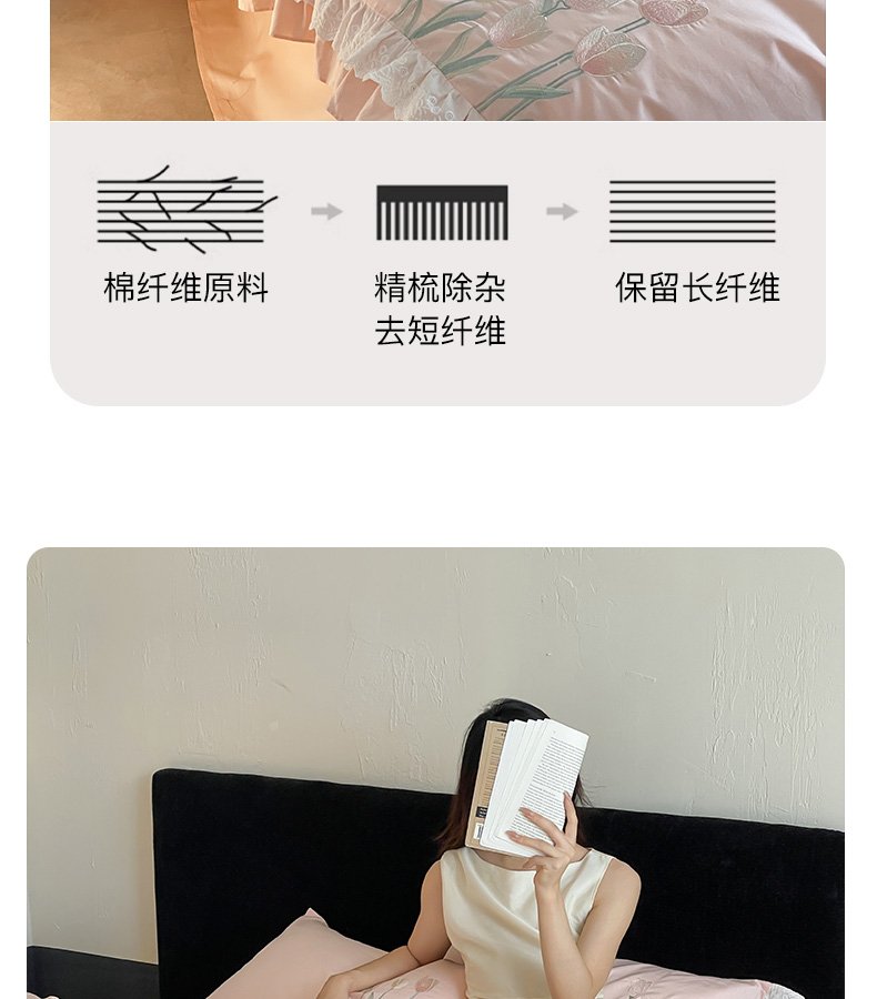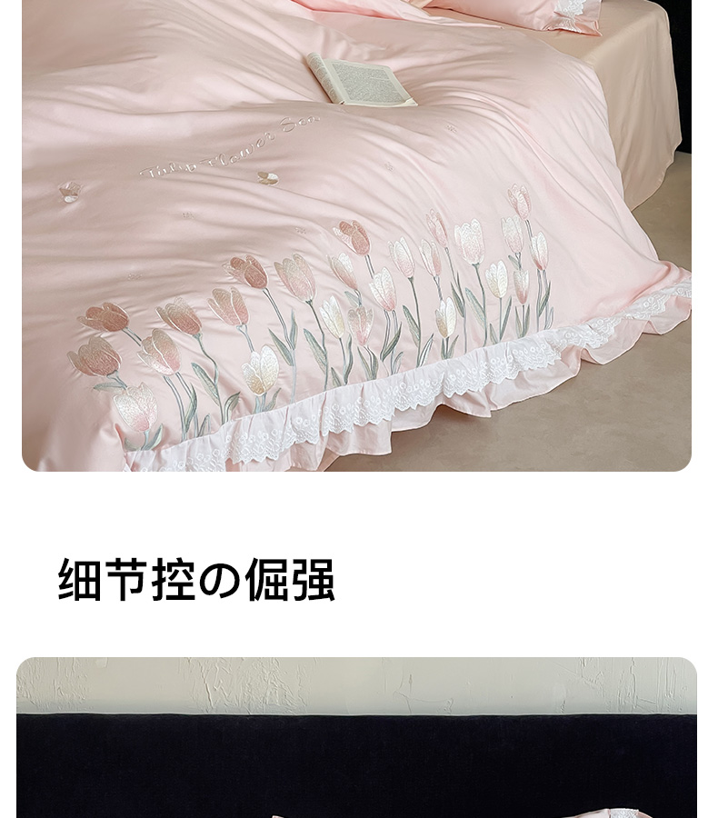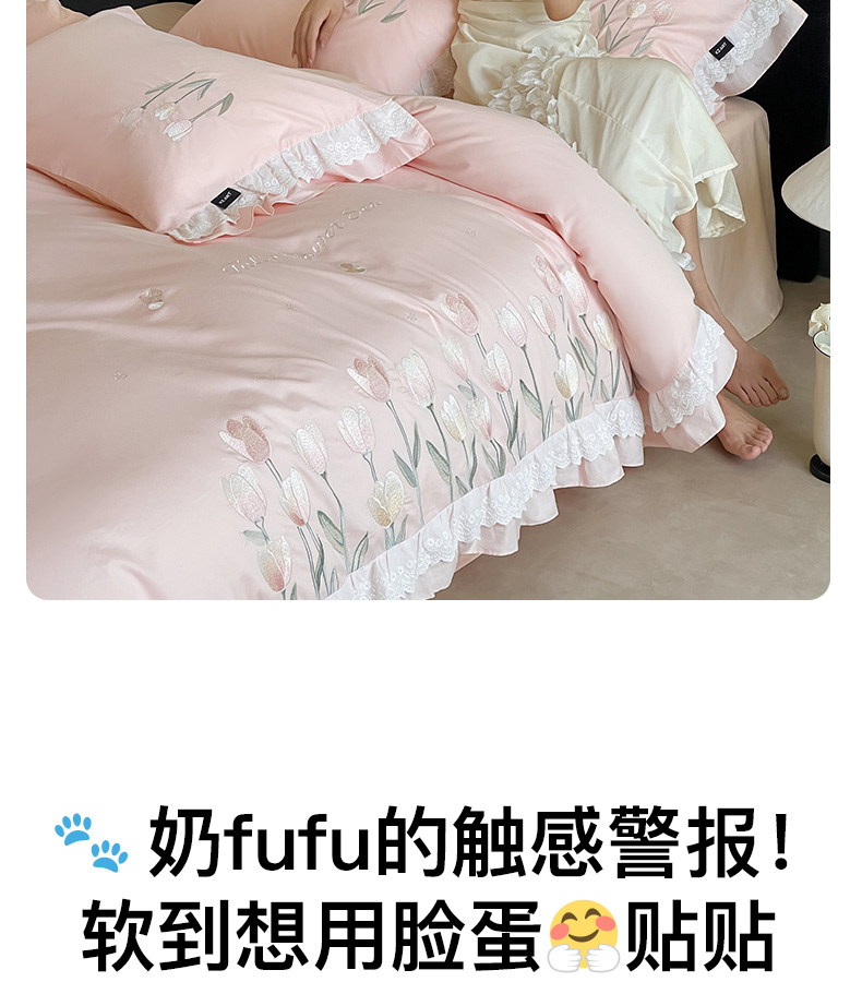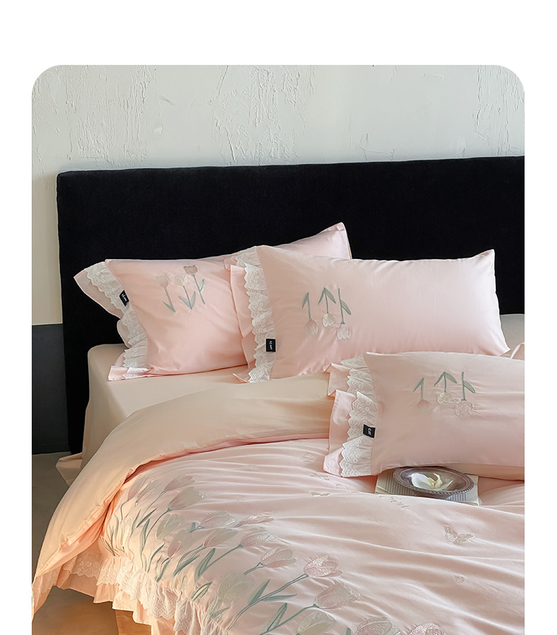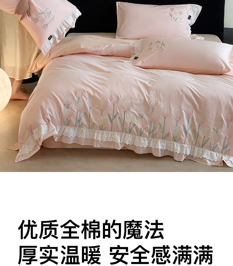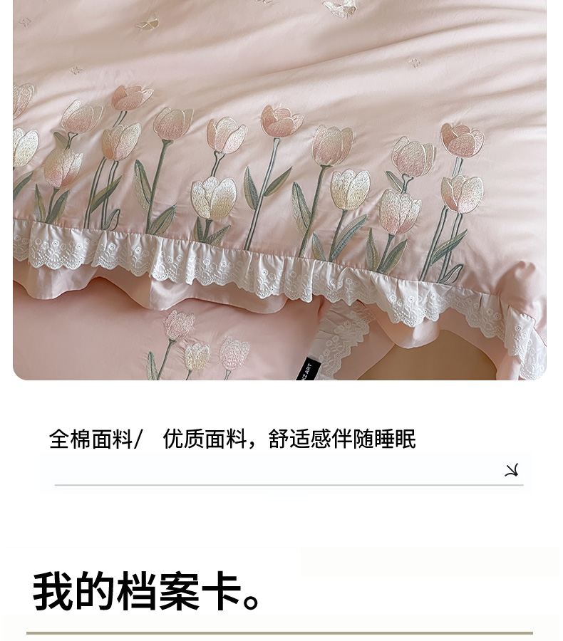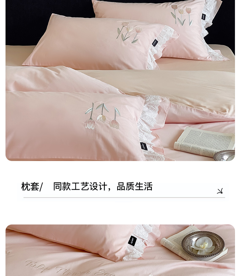 商品名称:卡姿家纺 2025秋冬森系小清新简约刺绣四件套-森系郁金香 森系郁金香-粉
