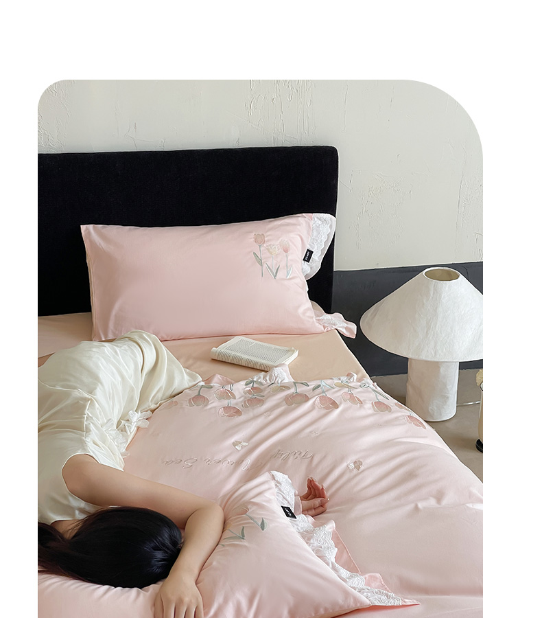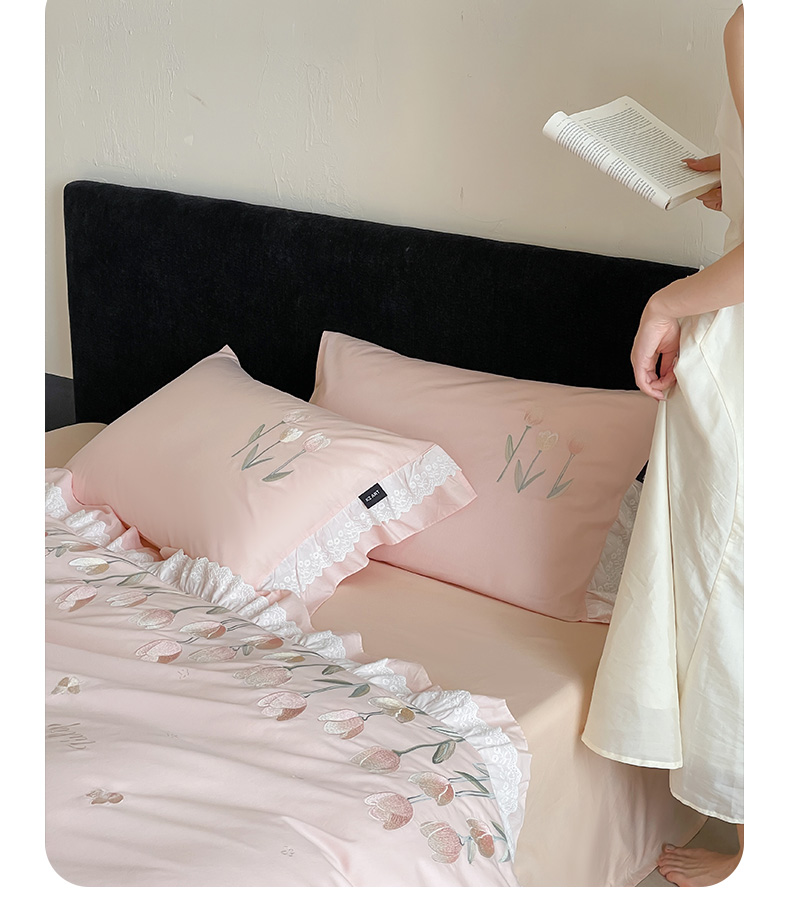 卡姿家纺 2025秋冬森系小清新简约刺绣四件套-森系郁金香 森系郁金香-粉