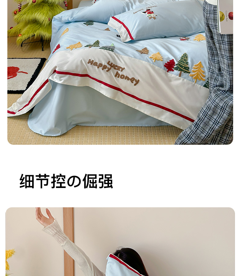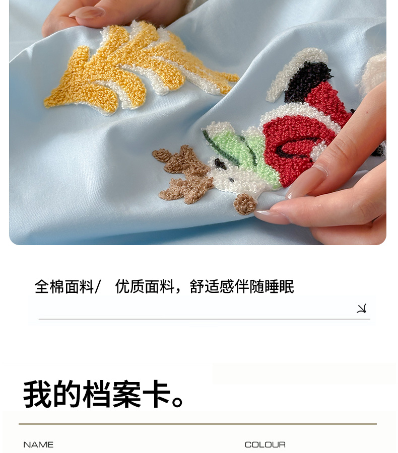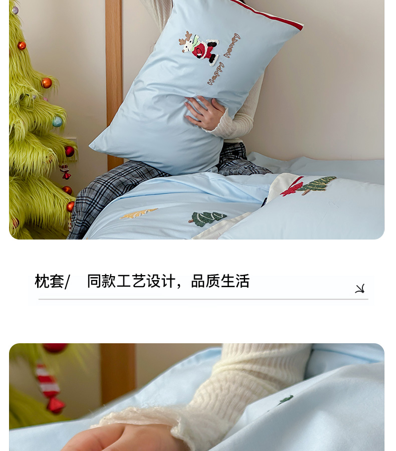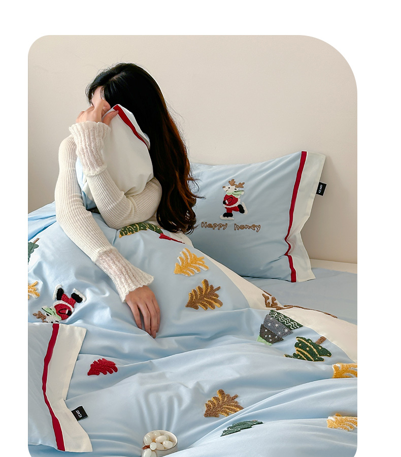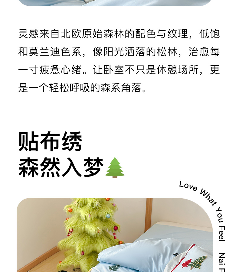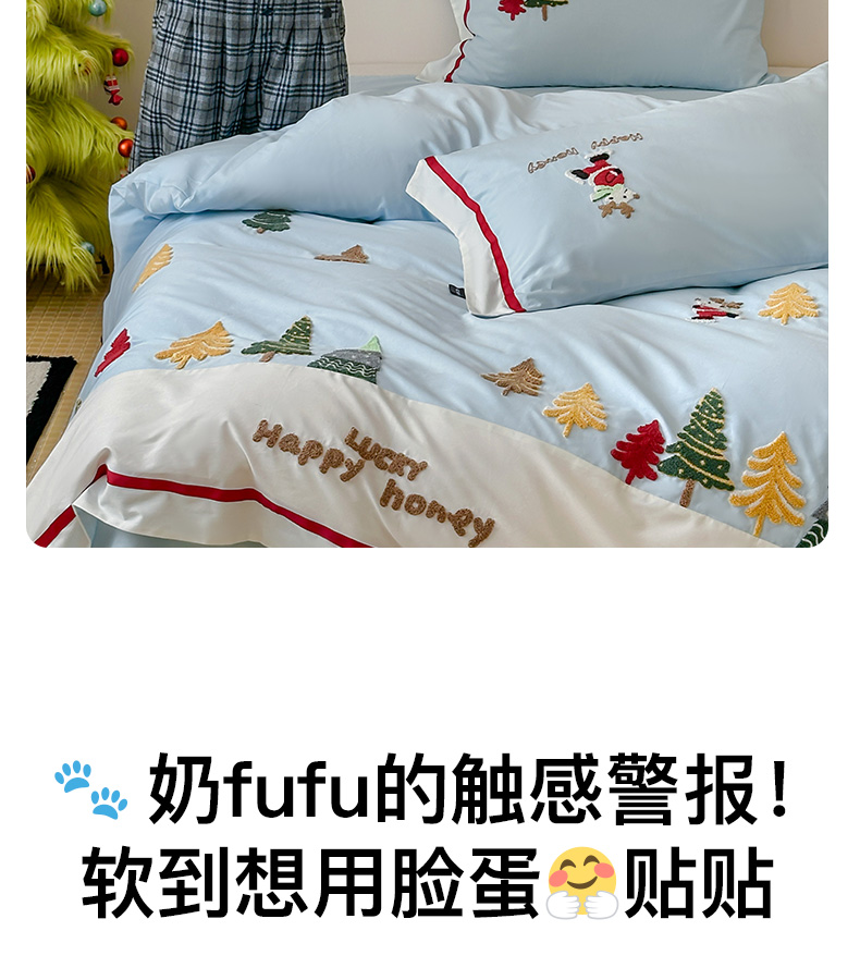商品名称:卡姿家纺 2025秋冬森系北欧风毛巾绣四件套-森林秘境 森林秘境-蓝