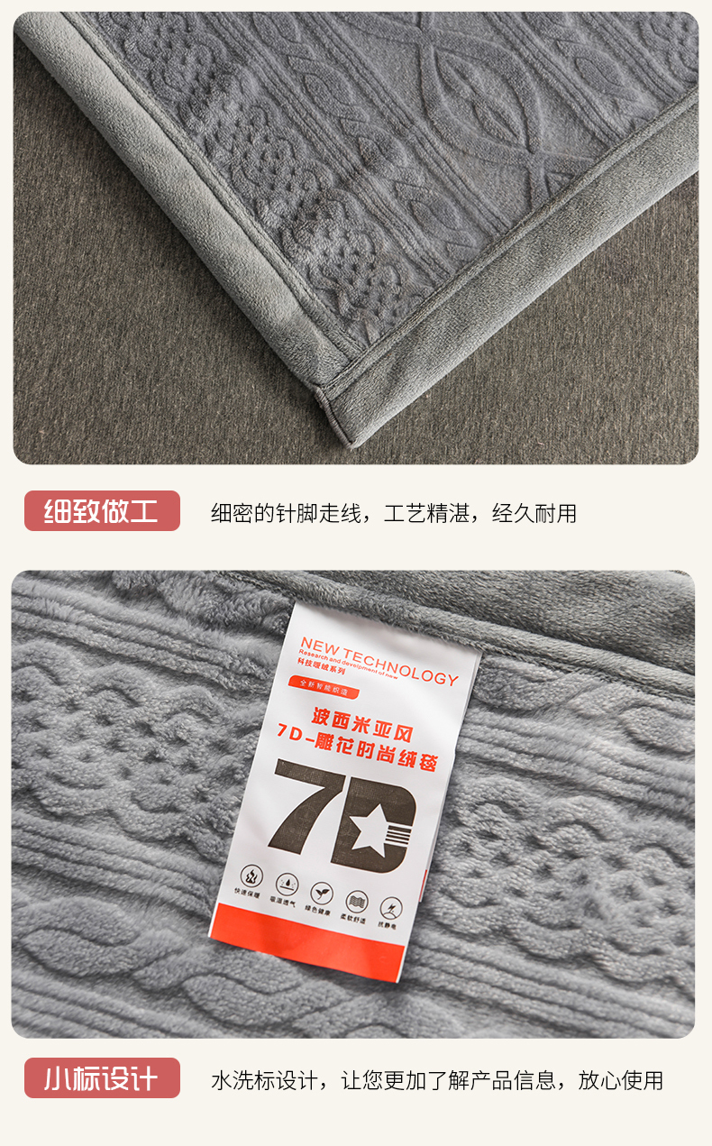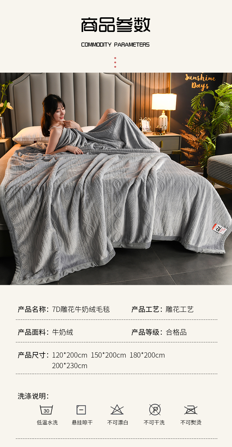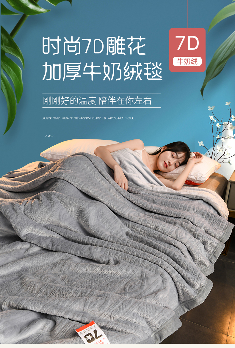 商品名称:小牛席业 2025新款7D雕花牛奶绒毛毯 灰色