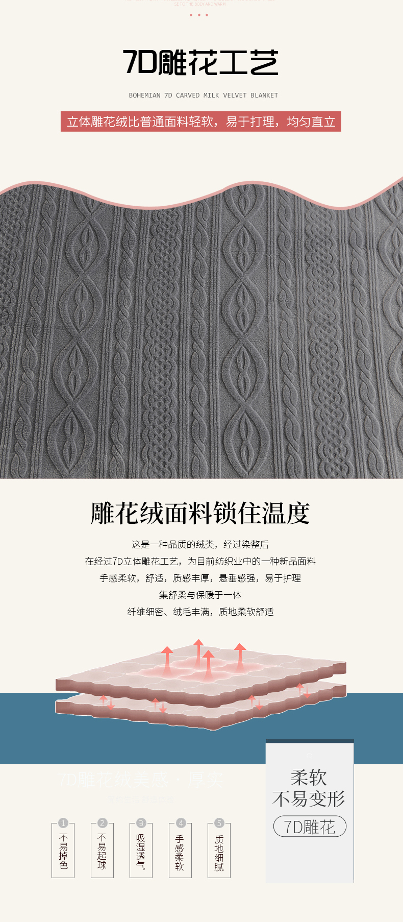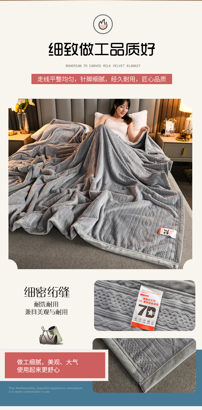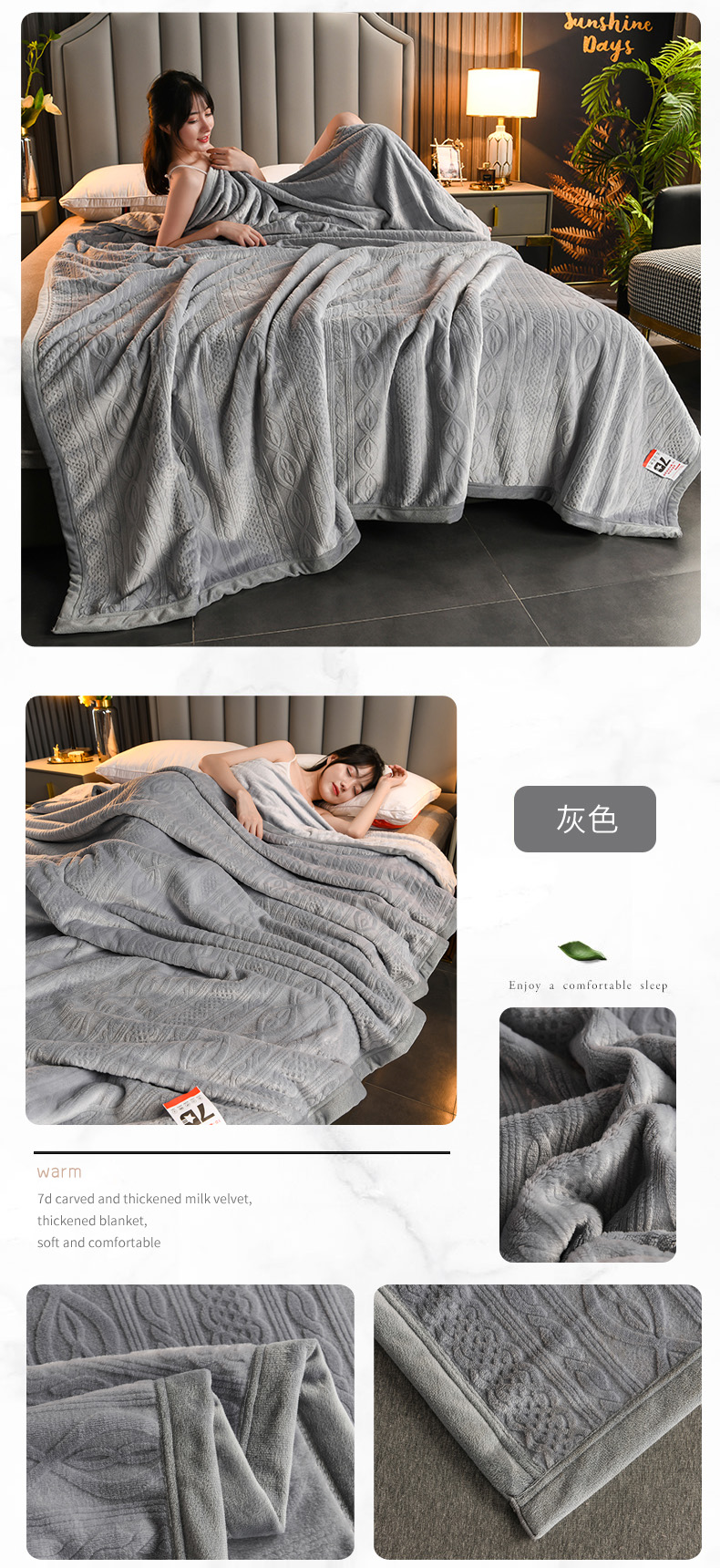 商品名称:小牛席业 2025新款7D雕花牛奶绒毛毯 灰色