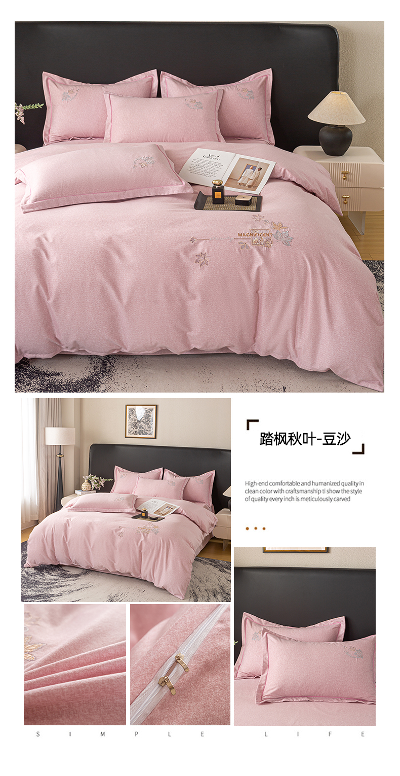 (总)昊翔家纺 2025新款全棉肌理纹磨毛绣花四件套套件,森沐-豆沙,森沐-粉玉,森沐-湖蓝,森沐-青茶绿,森沐-银灰,森沐-樱花紫,踏枫秋叶-豆沙,踏枫秋叶-粉玉,踏枫秋叶-湖蓝,踏枫秋叶-青茶绿,踏枫秋叶-银灰,踏枫秋叶-樱花紫,叶叶新泽-豆沙,叶叶新泽-粉玉,叶叶新泽-湖蓝,叶叶新泽-青茶绿,叶叶新泽-银灰,叶叶新泽-樱花紫