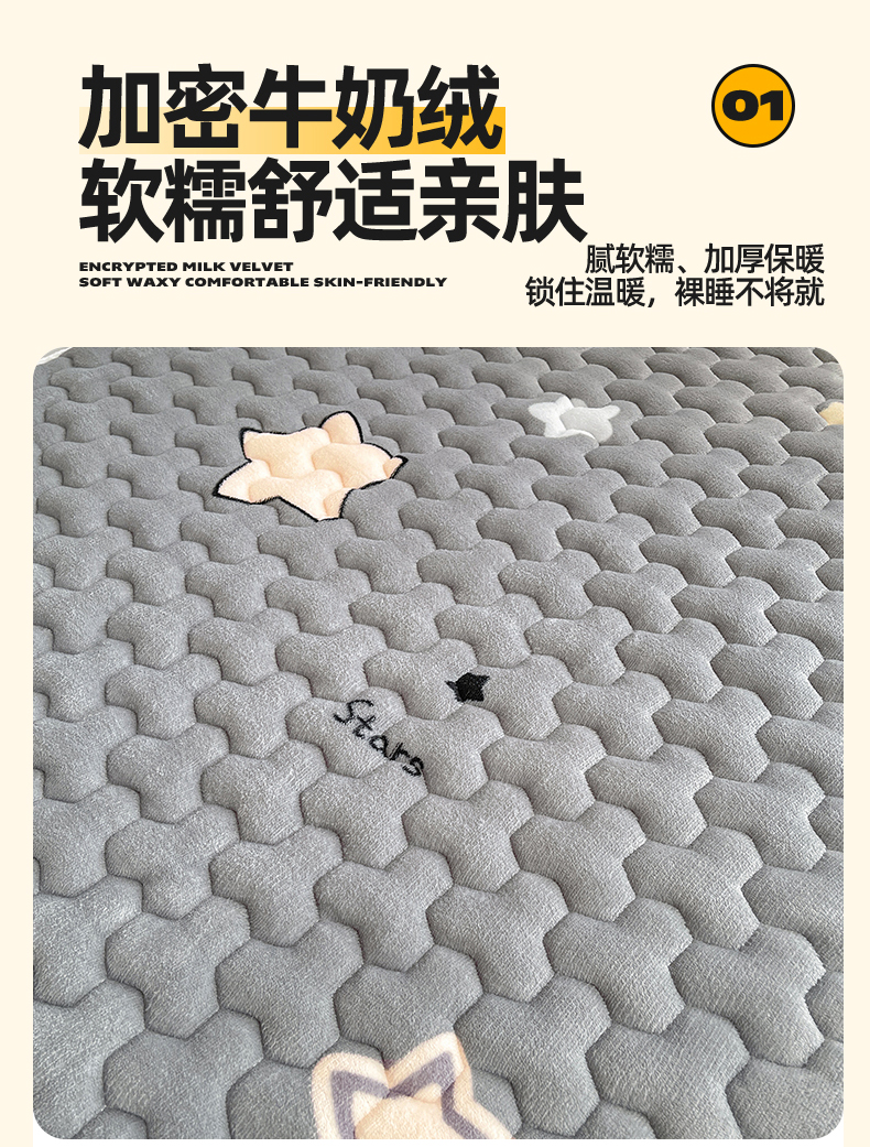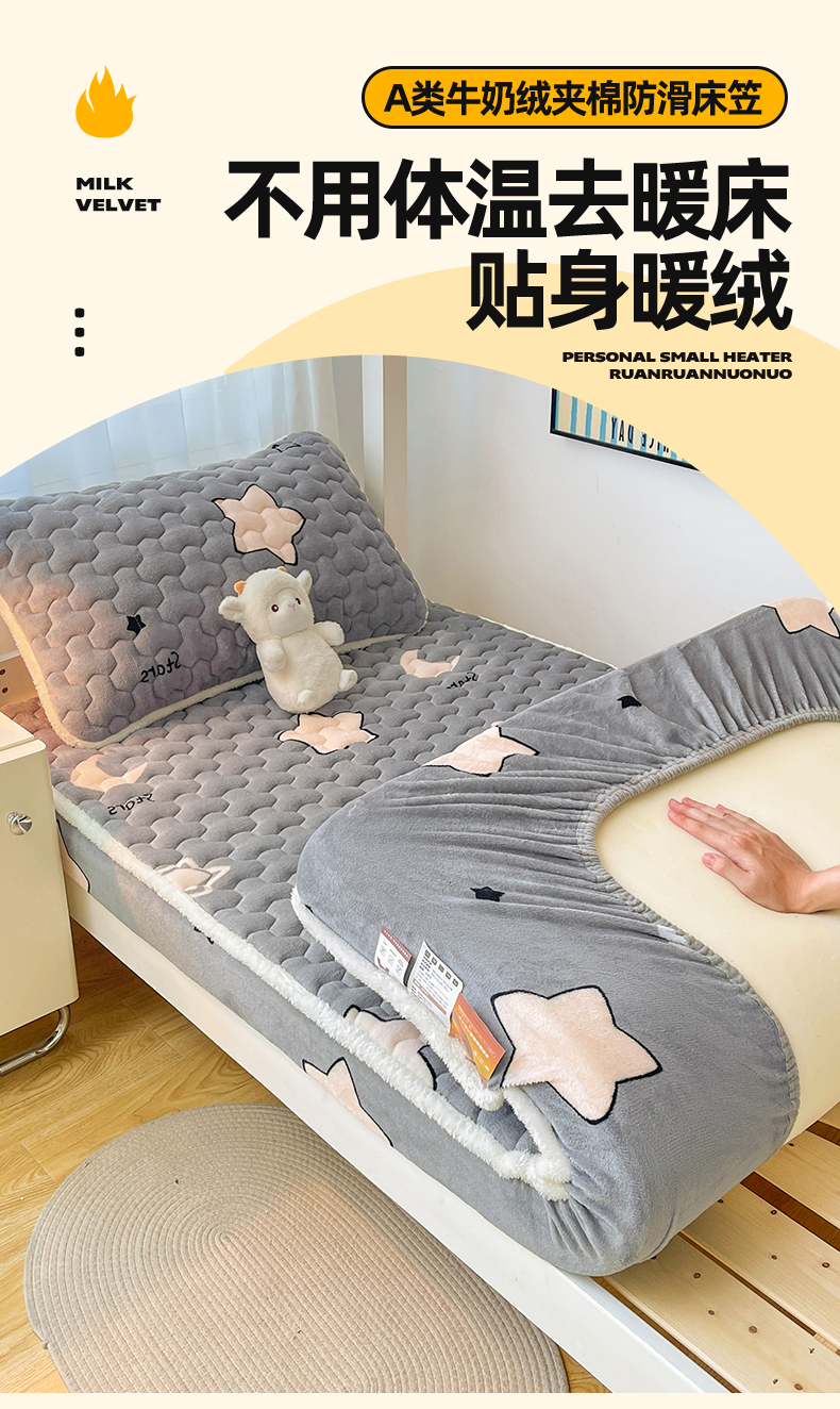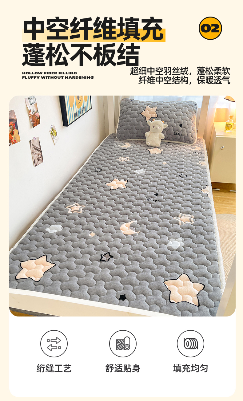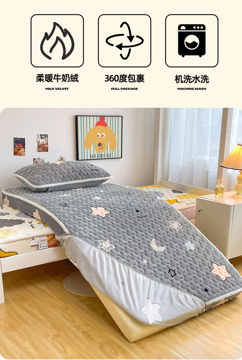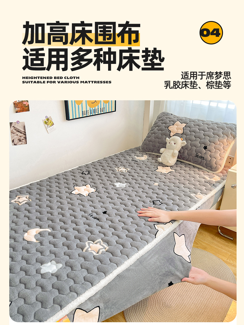 • 91家纺网 家纺一手货源 找家纺 雯豆家纺 2025新款学生上下铺加厚牛奶绒夹棉床笠宿舍大学生床垫保护套 牛奶绒夹棉床笠-满天星