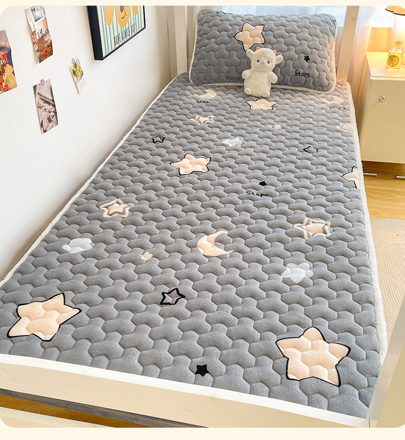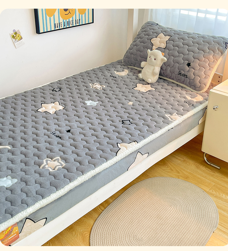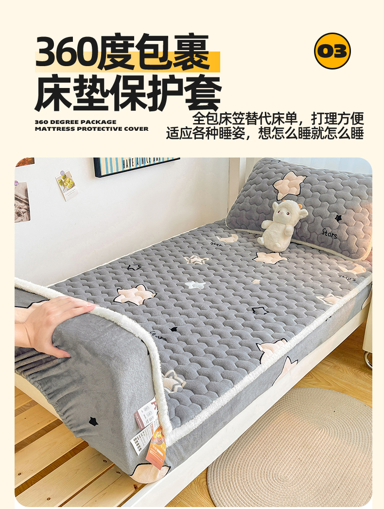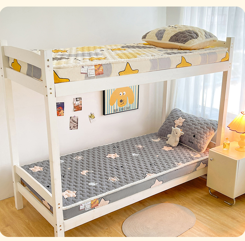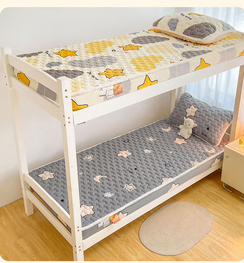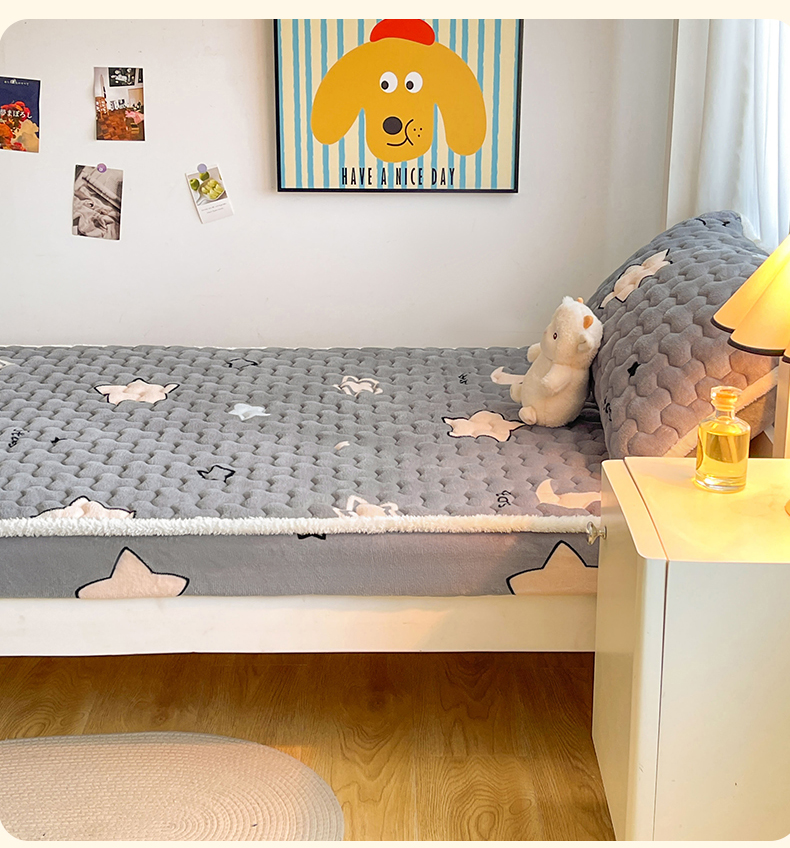 雯豆家纺 2025新款学生上下铺加厚牛奶绒夹棉床笠宿舍大学生床垫保护套 牛奶绒夹棉床笠-满天星