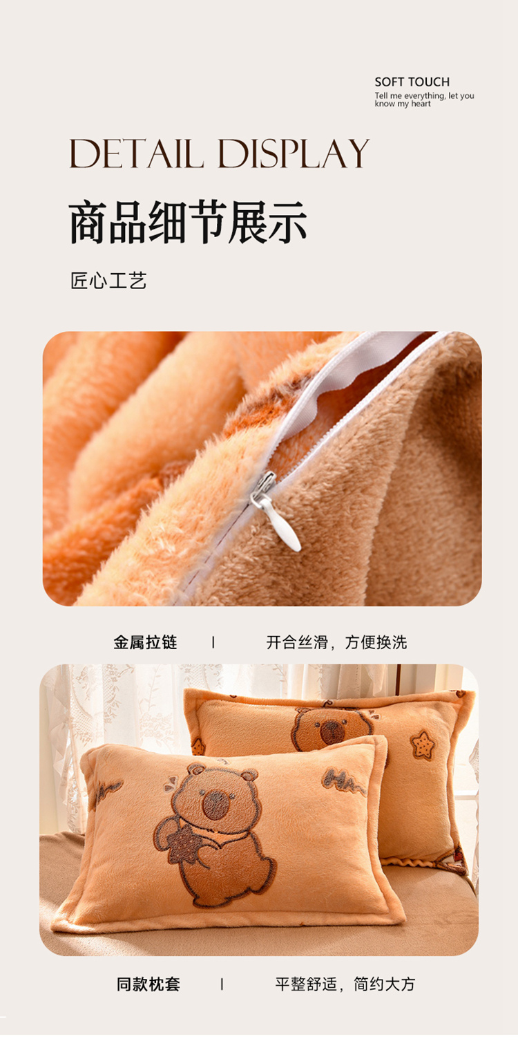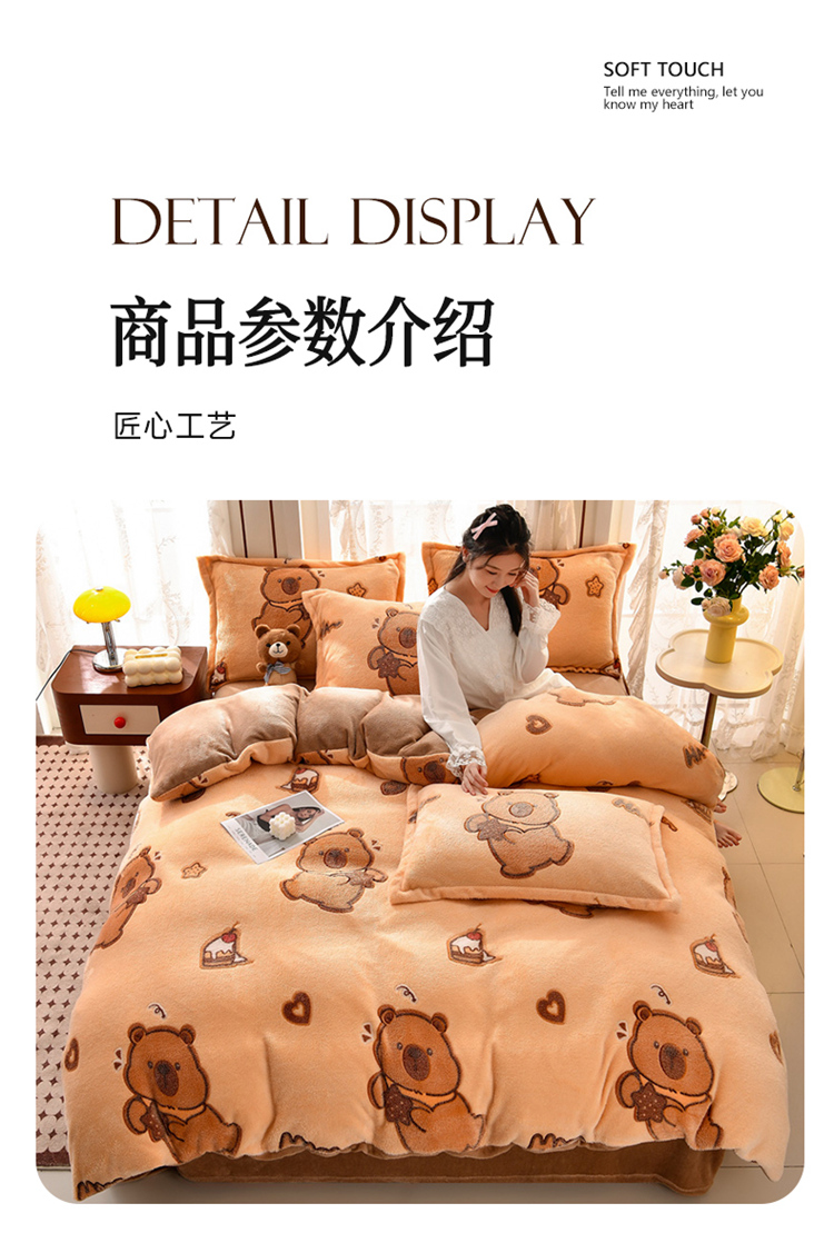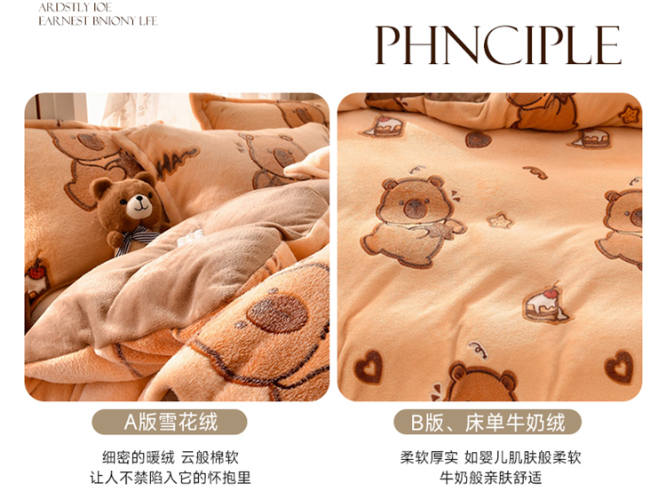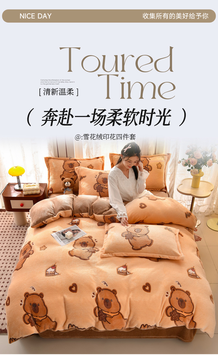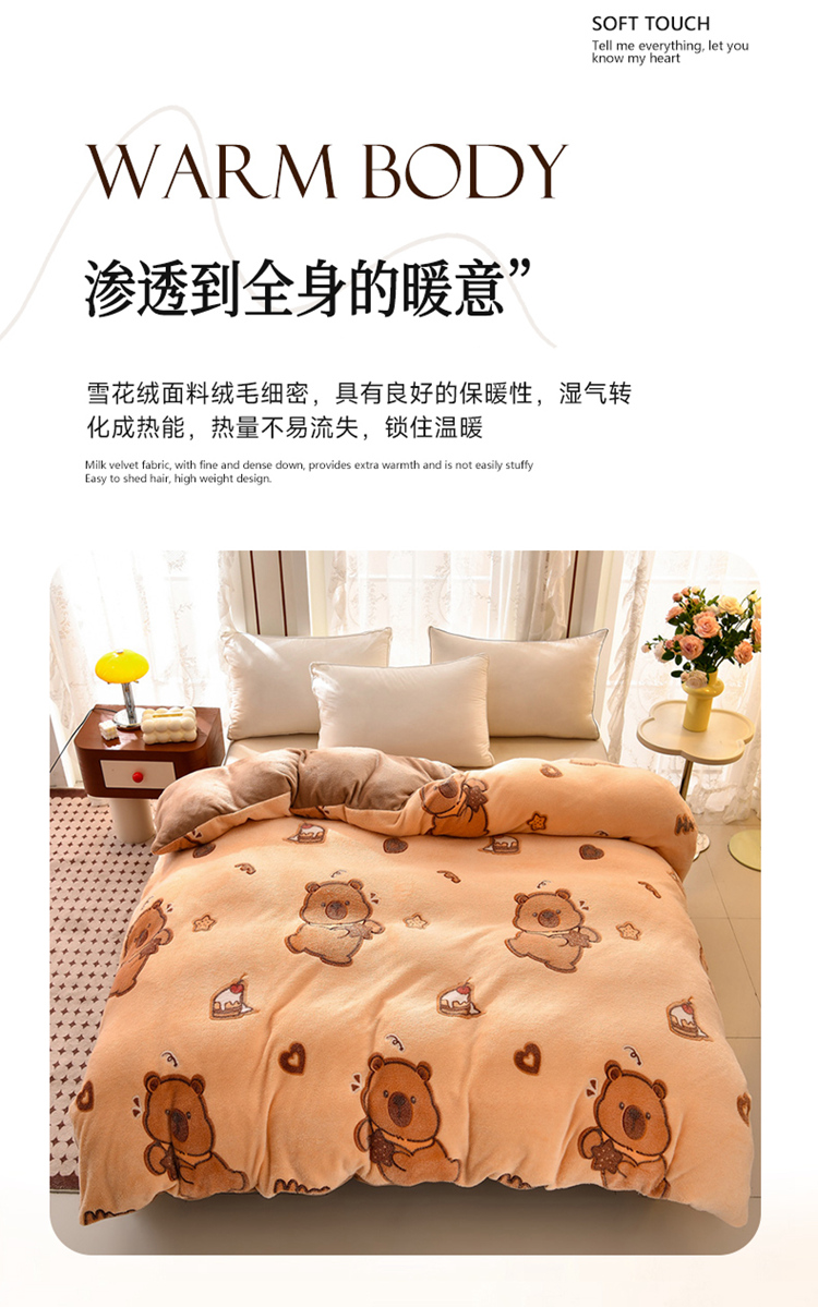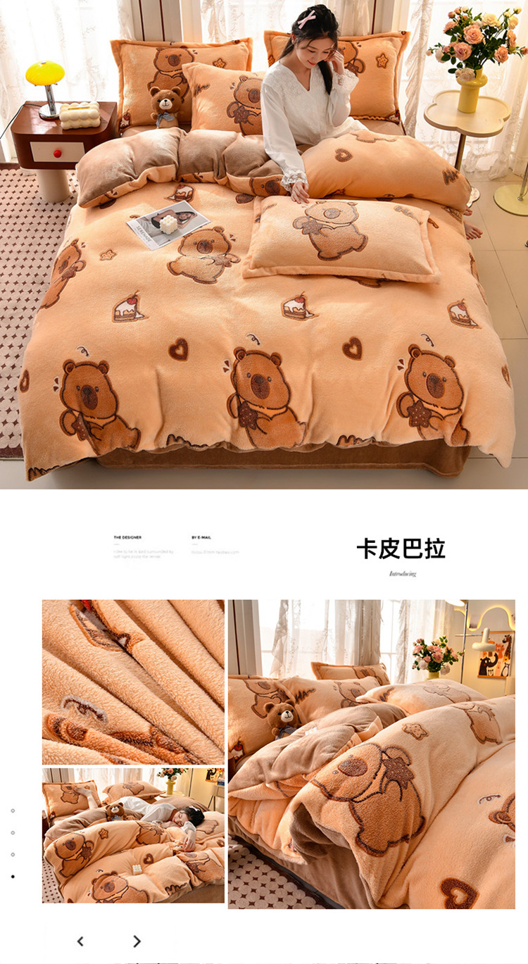 当前位置: 91家纺网 > 商品网购 > 床品套件 > 四件套 > 其它四件套 > 牵梦萦 2025新款雪花绒小清新印花四件套 卡皮巴拉