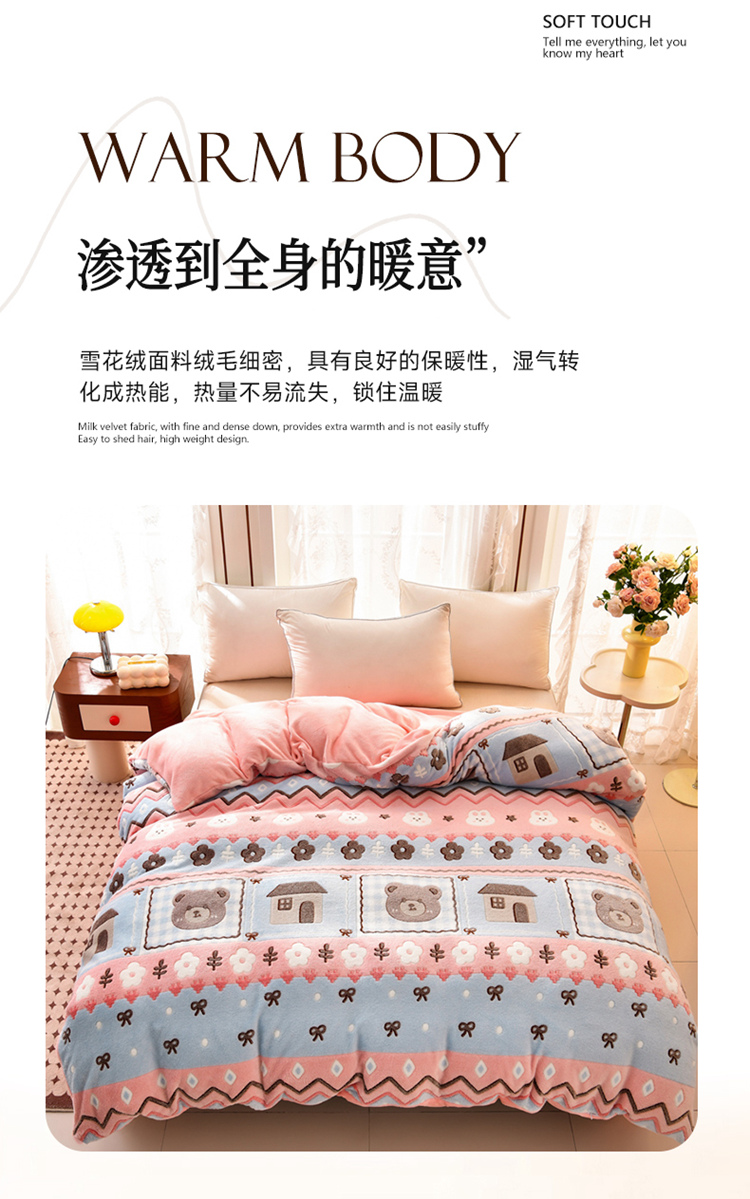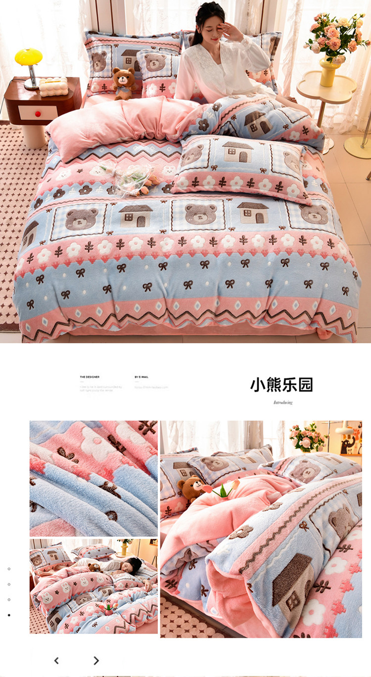 当前位置: 91家纺网 > 商品网购 > 床品套件 > 四件套 > 其它四件套 > 牵梦萦 2025新款雪花绒小清新印花四件套 小熊乐园