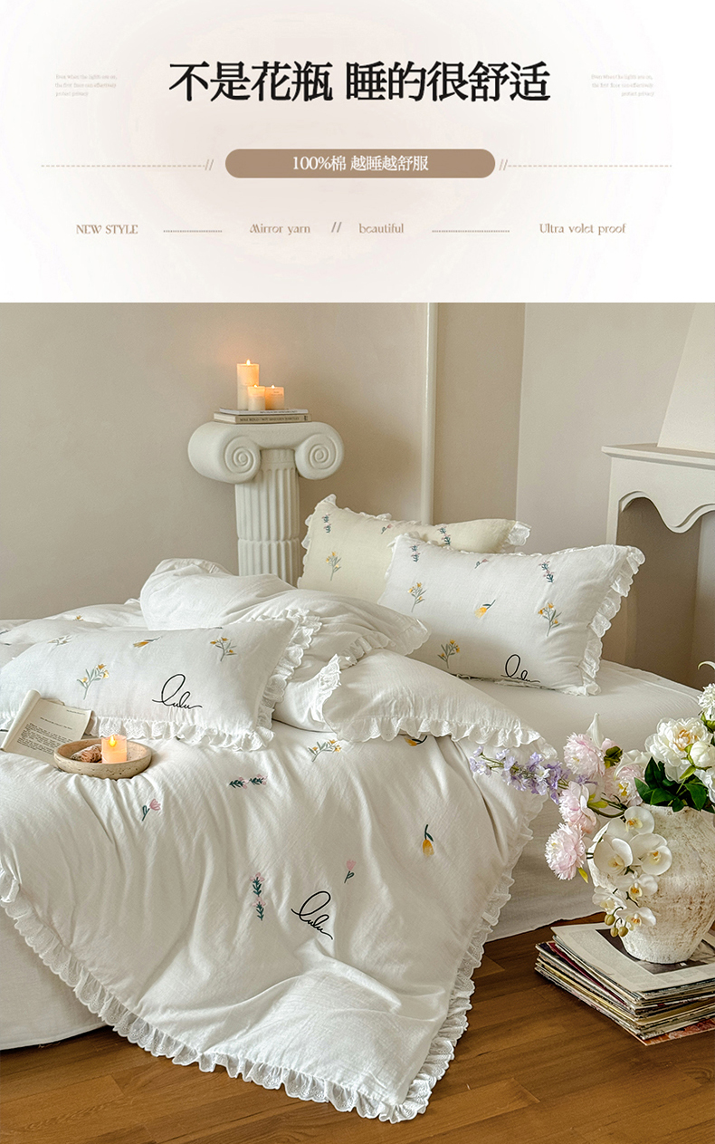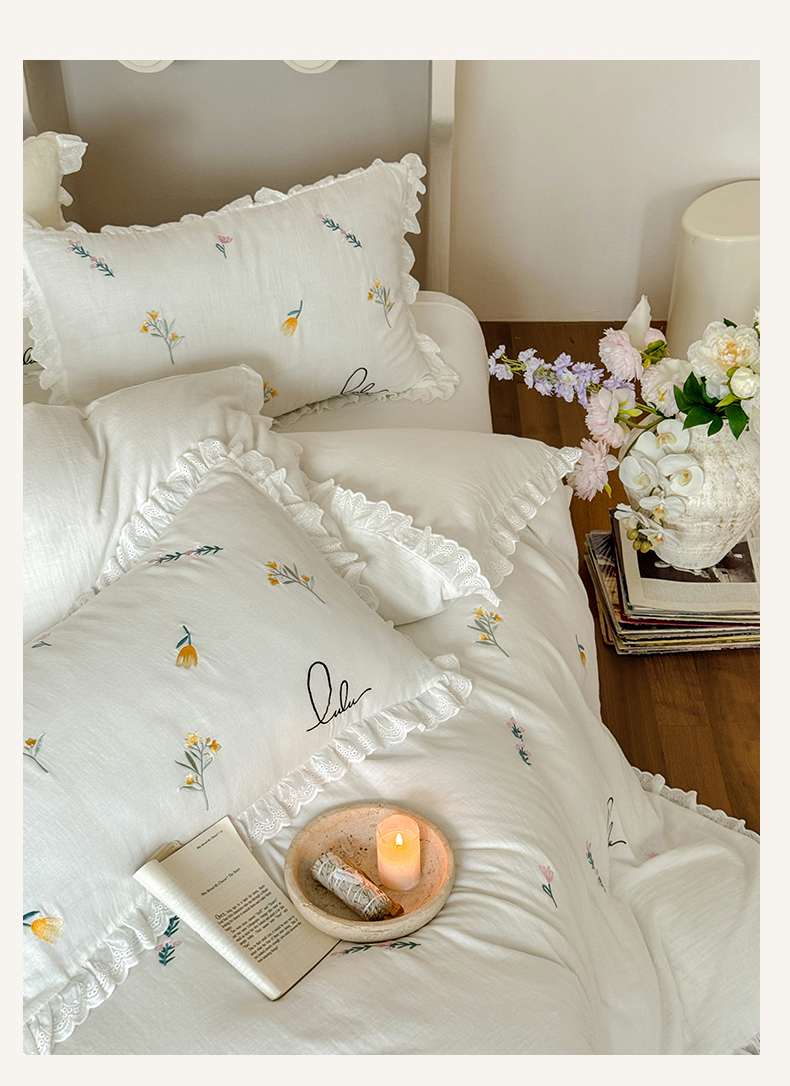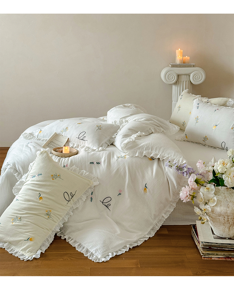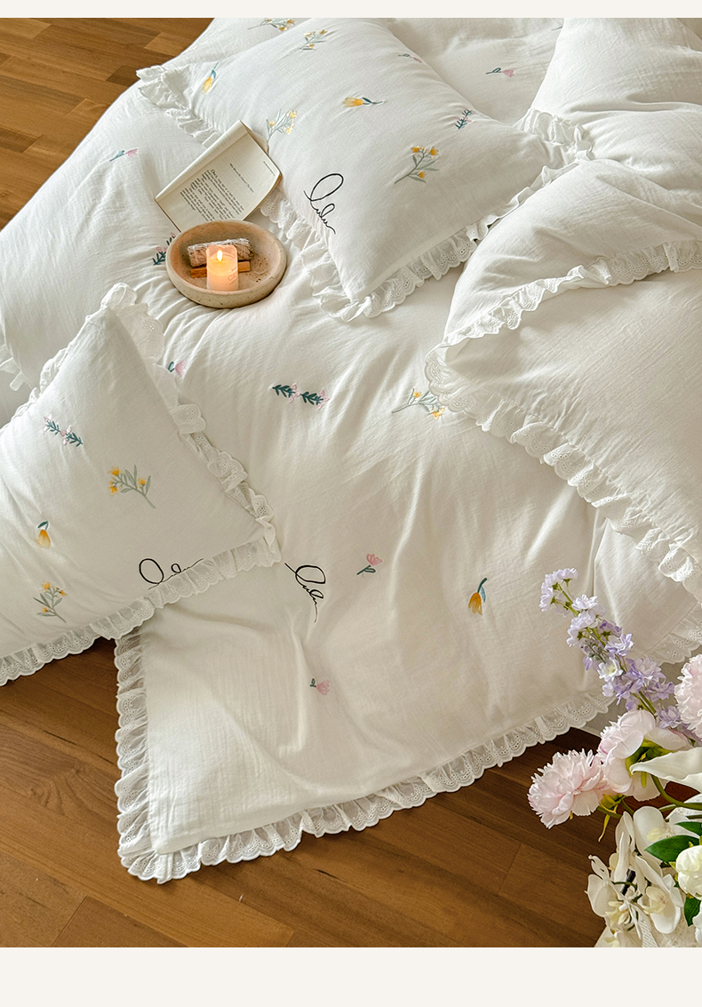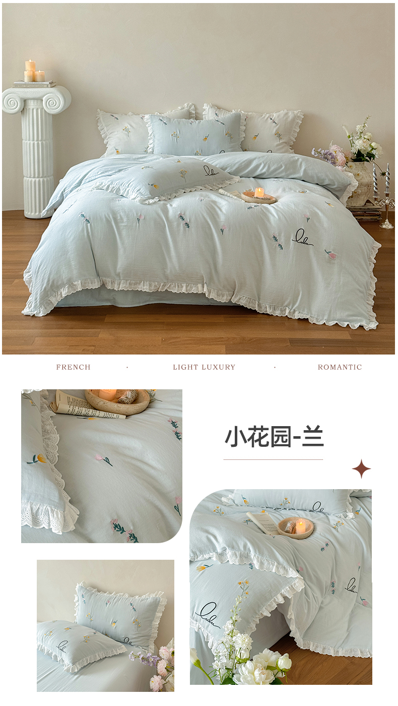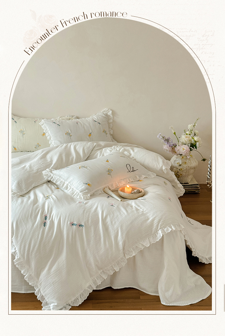 当前位置: 91家纺网 > 商品网购 > 床品套件 > 四件套 > 双层纱四件套 > FORTWO家纺原创设计(FOR TWO家纺) 2025新款40支全棉纯棉双层纱刺绣花边款四件套-小花园 小花园-白