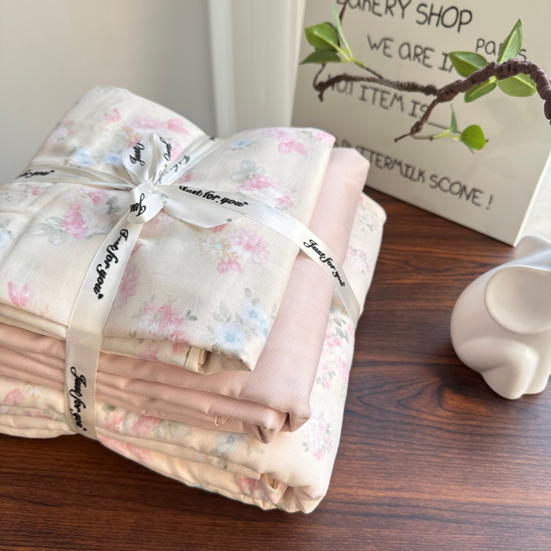 当前位置: 91家纺网 > 商品网购 > 床品套件 > 四件套 > 双层纱四件套 > 爱思佳 2024新款A类母婴全棉双层纱印花四件套直播热卖系列三 叠拍图 杏花村