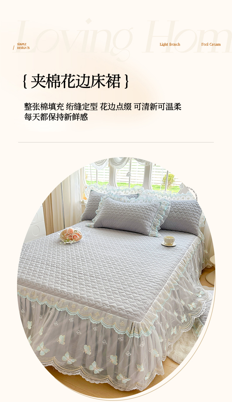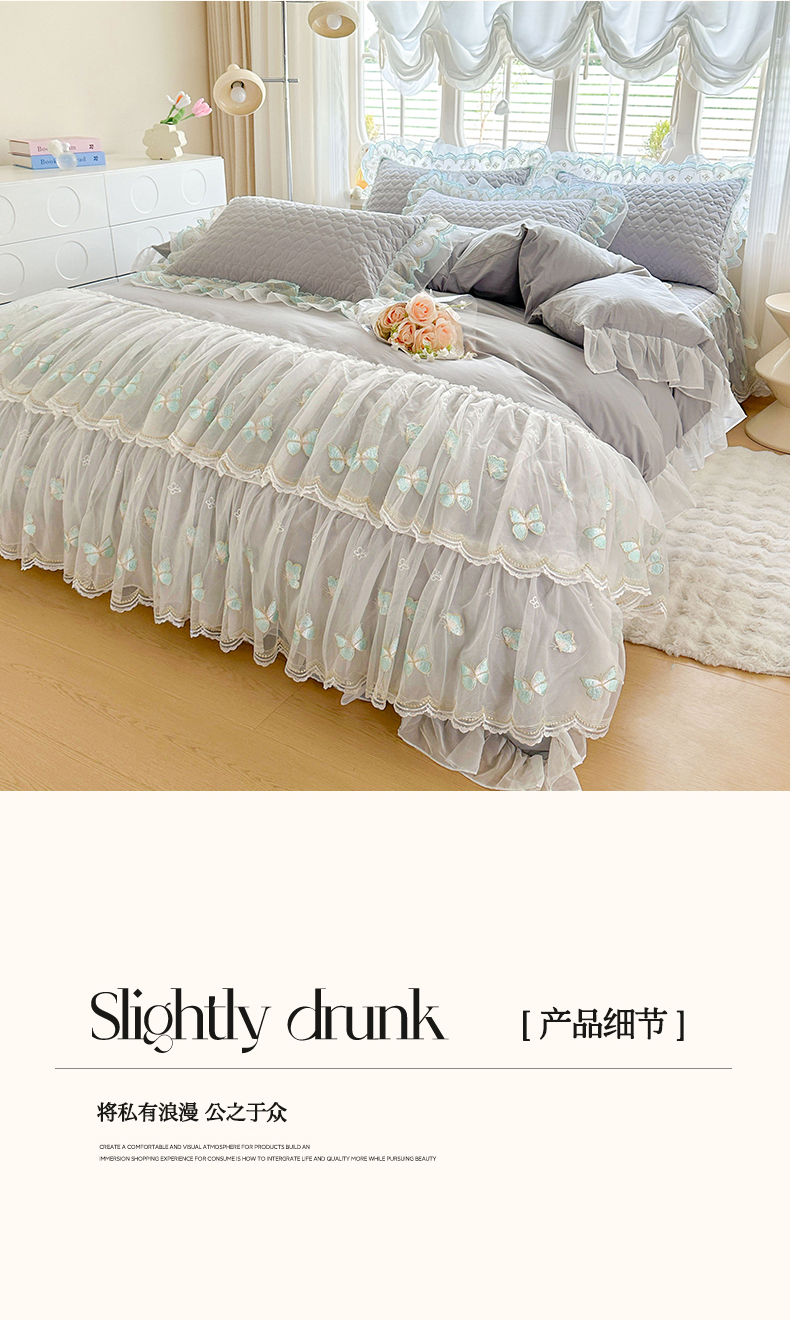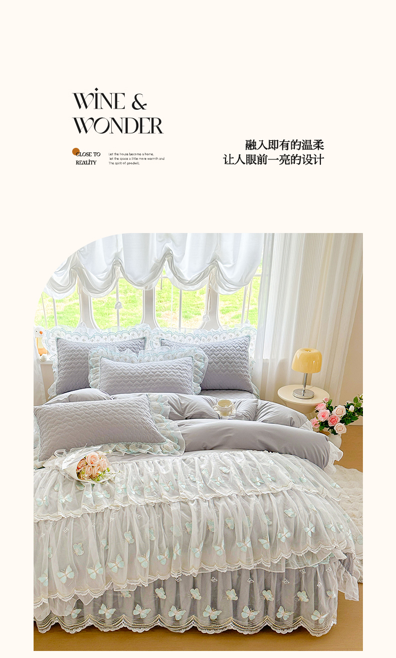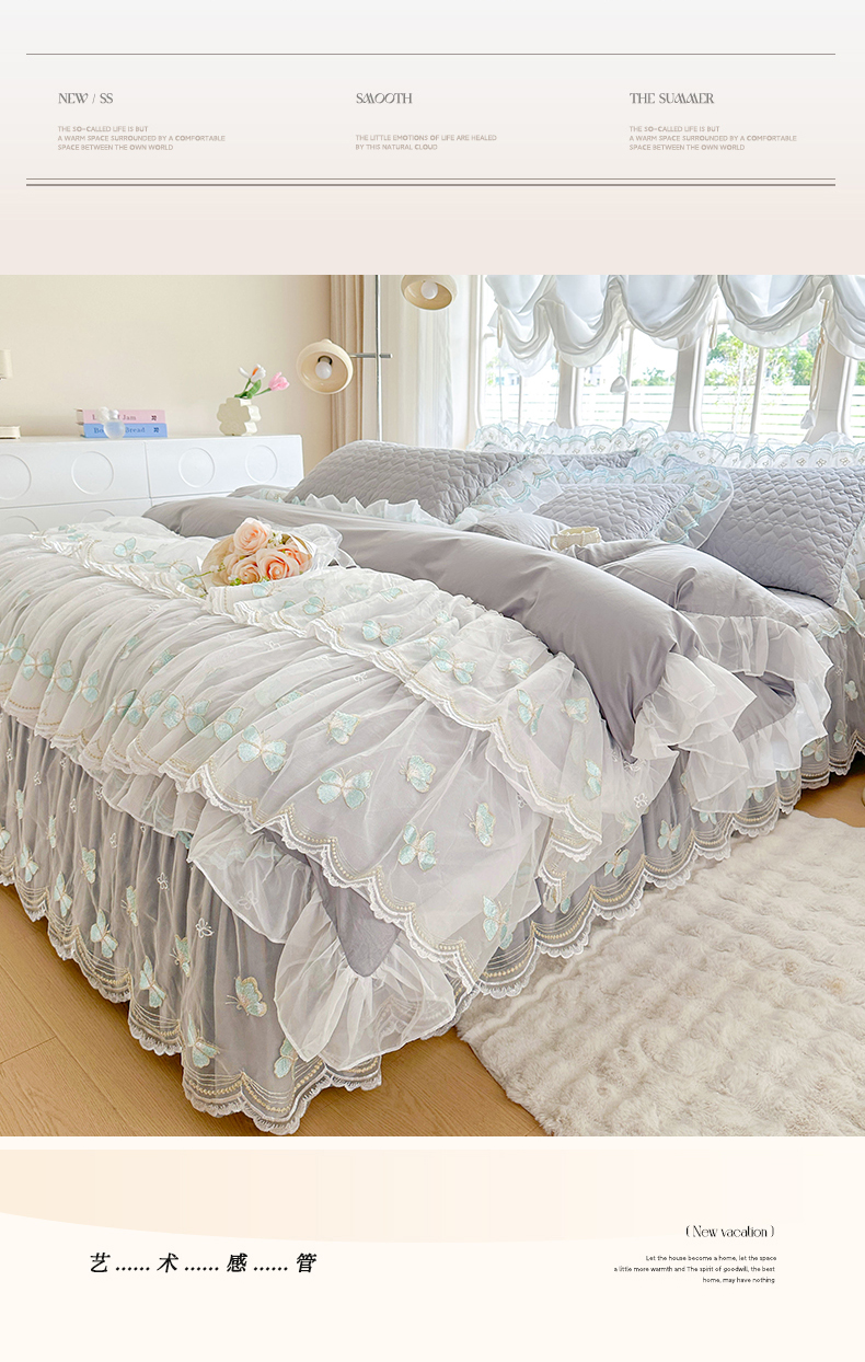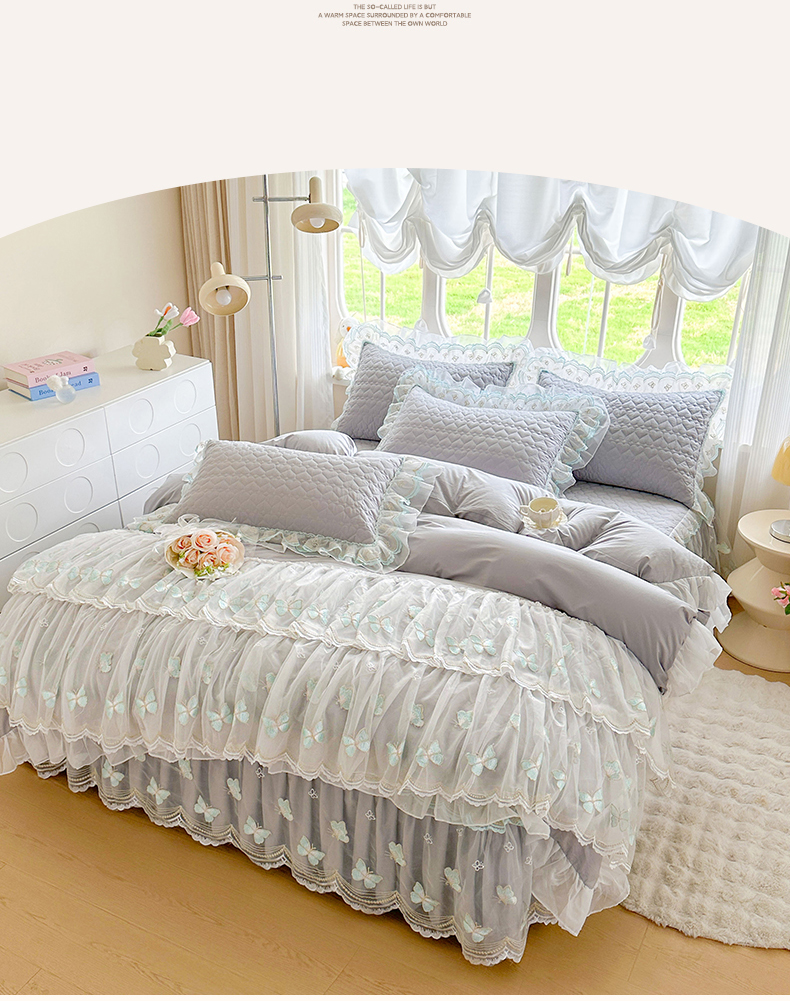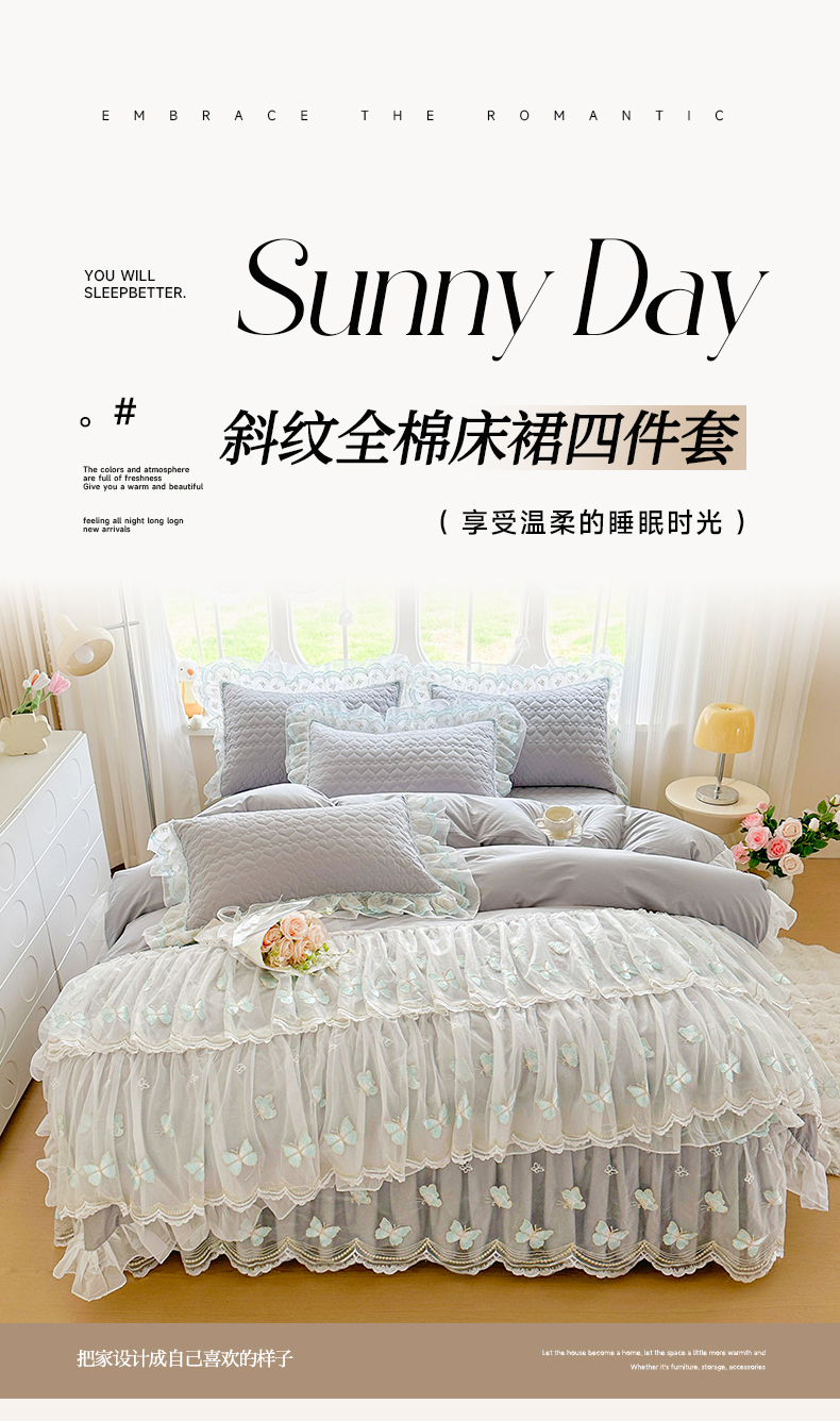当前位置: 91家纺网 > 商品网购 > 床品套件 > 四件套 > 其它四件套 > 罗艺轩 2025新款全棉纯棉斜纹工艺床裙四件套 蓝蝴蝶-灰色