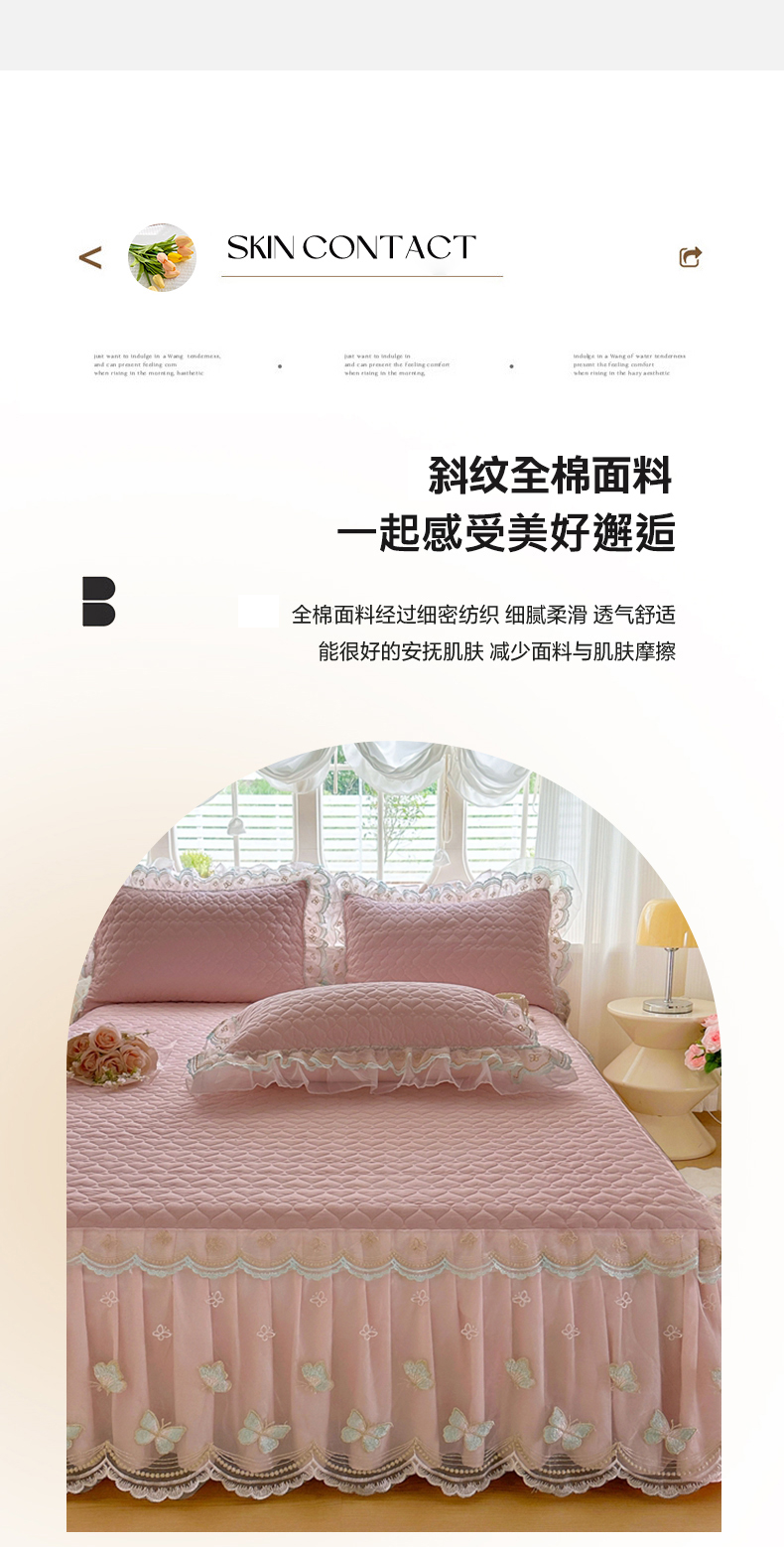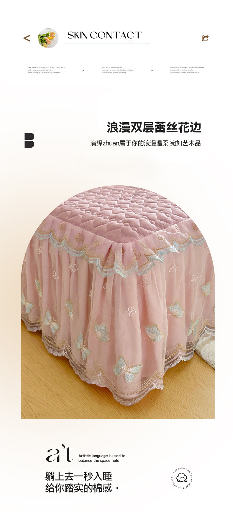 商品名称:罗艺轩 2025新款全棉纯棉斜纹花边单床裙床裙单件单品床裙 蓝蝴蝶-豆沙