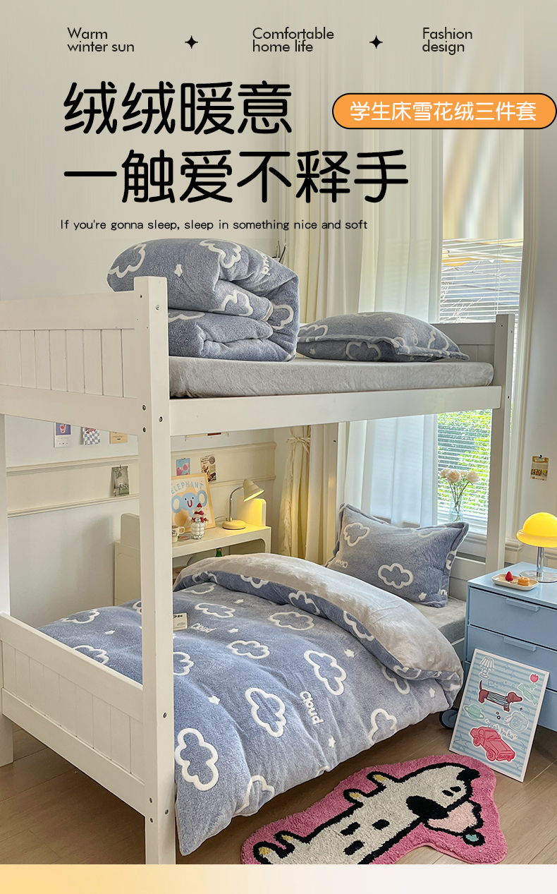当前位置: 91家纺网 > 商品网购 > 床品套件 > 三件套 > 川悦生活 2025新款雪花绒宿舍床笠款三件套 奶味云朵