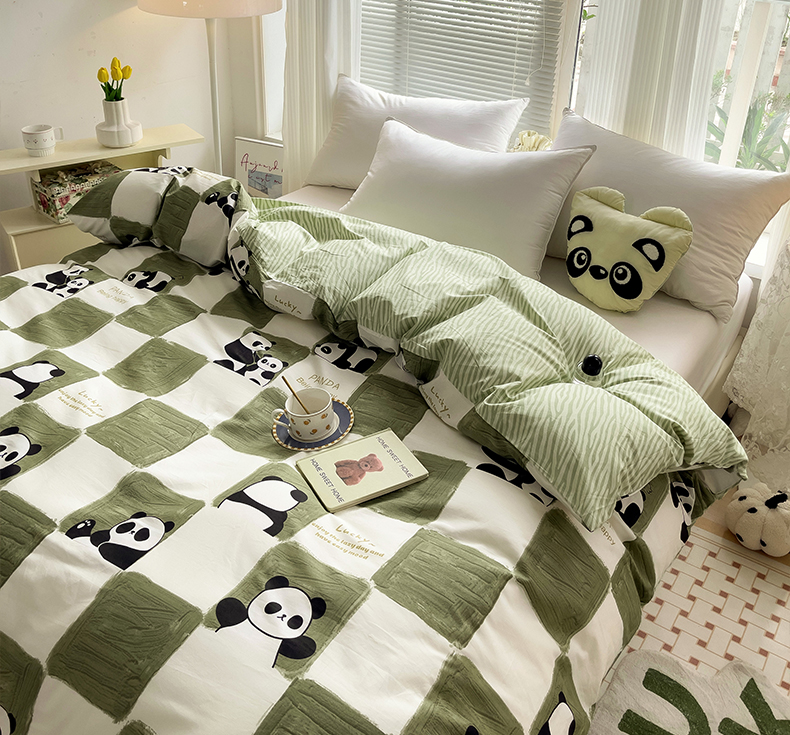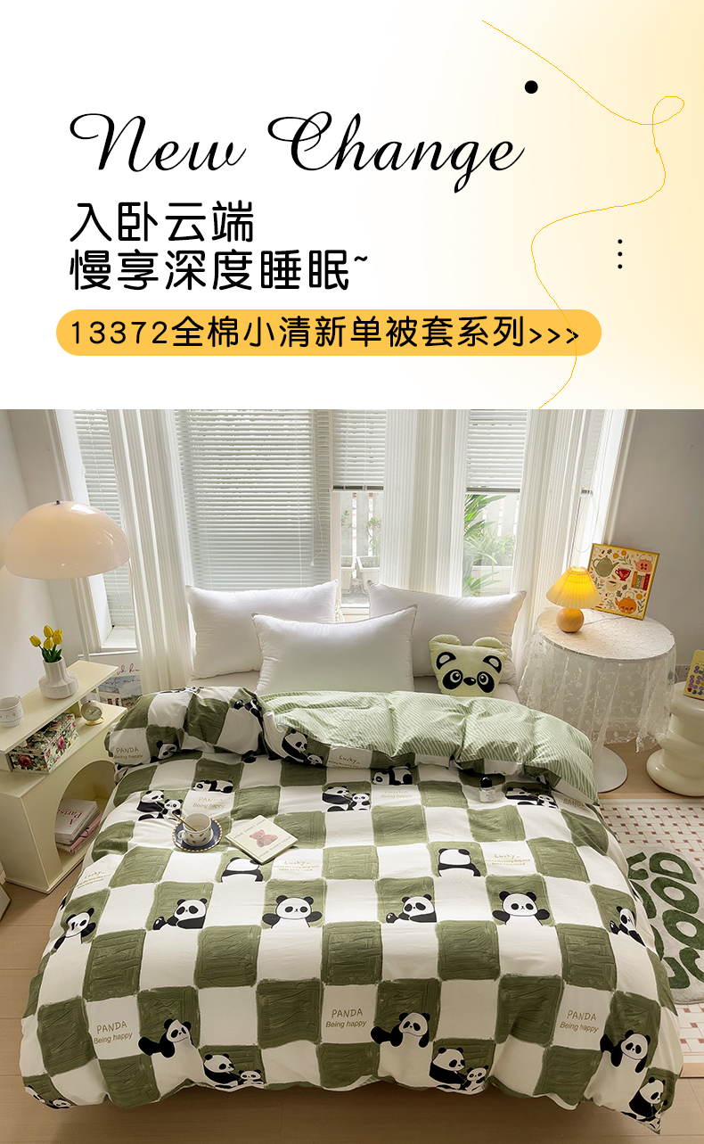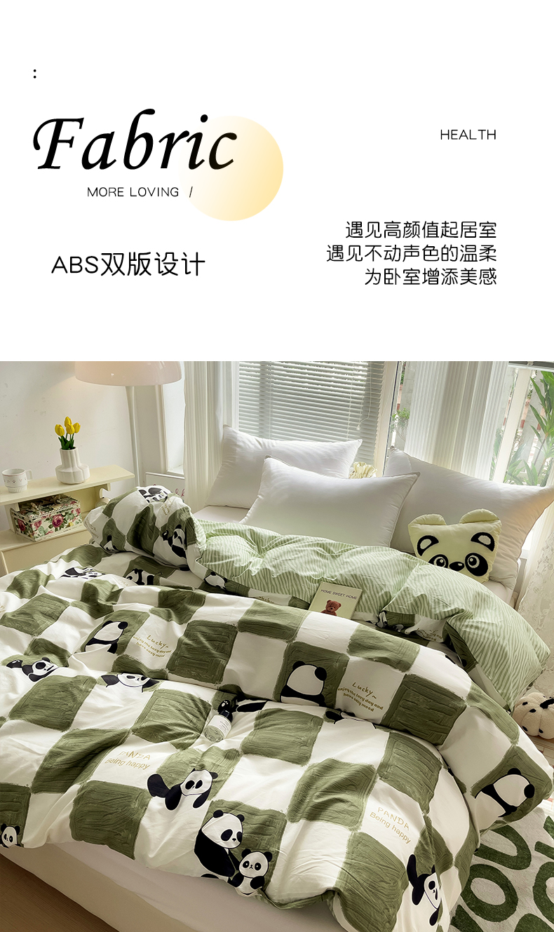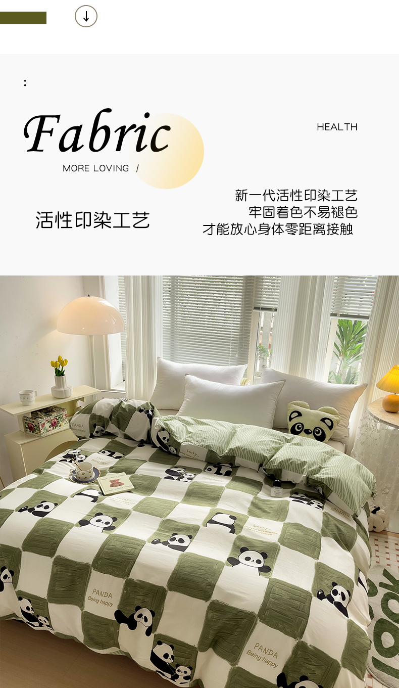 • 91家纺网 家纺一手货源 找家纺 金盛纺 2025新款AB版13372全棉印花单品被套 熊猫胖达