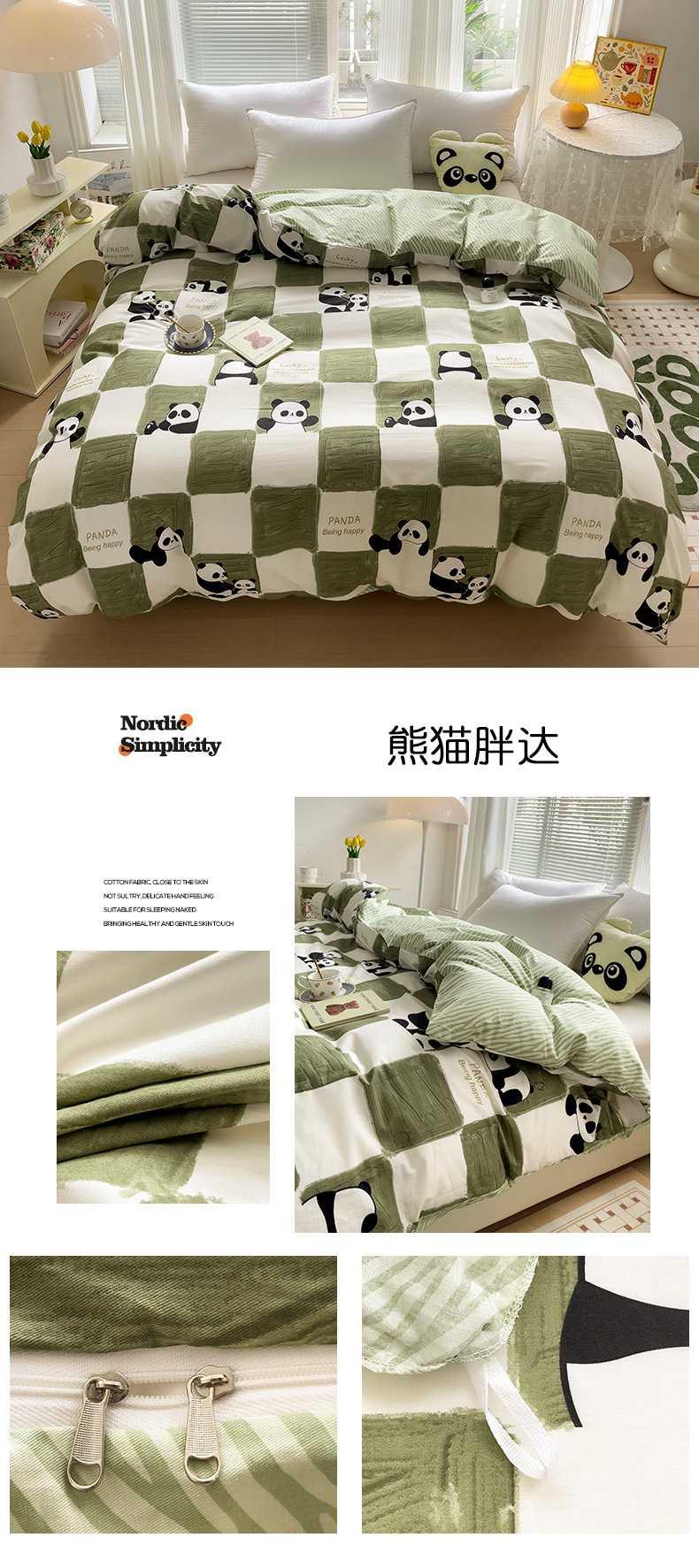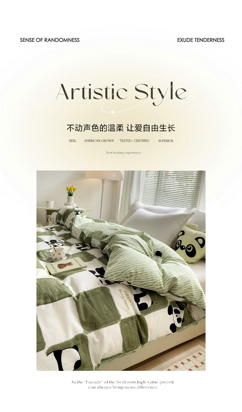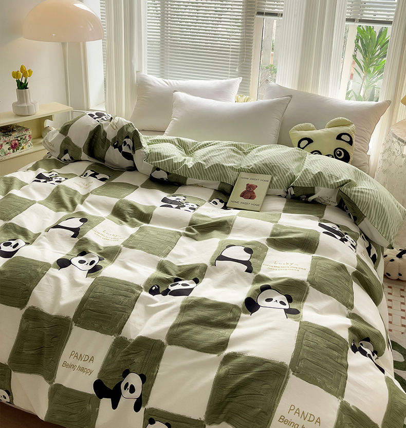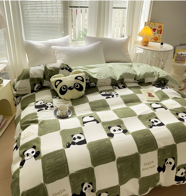 • 91家纺网 家纺一手货源 找家纺 金盛纺 2025新款AB版13372全棉印花单品被套 熊猫胖达