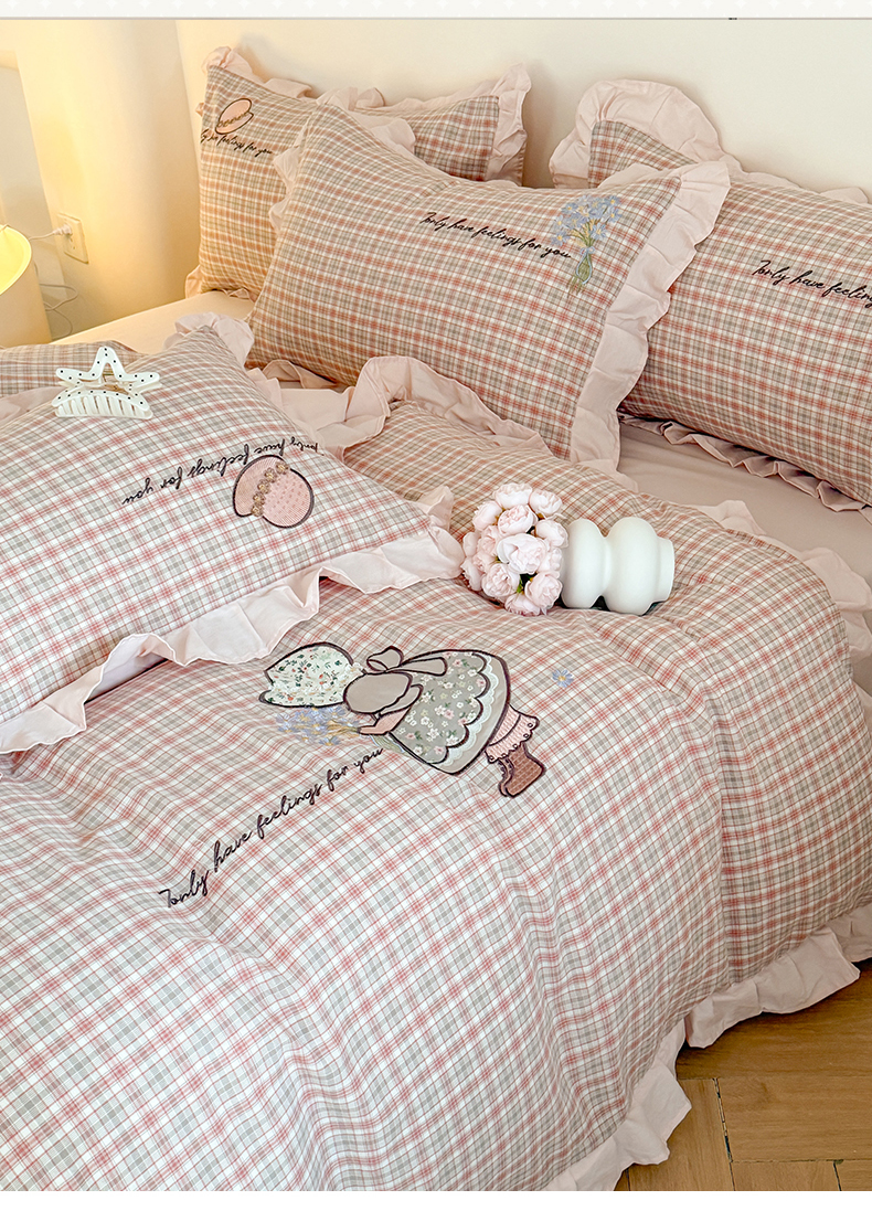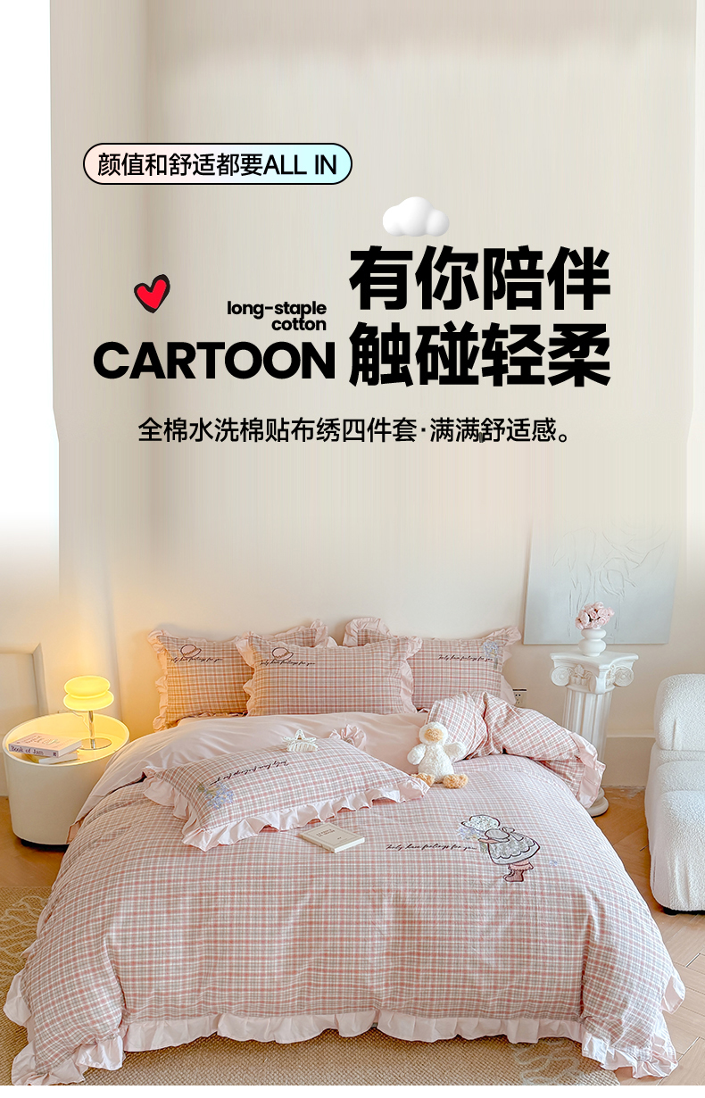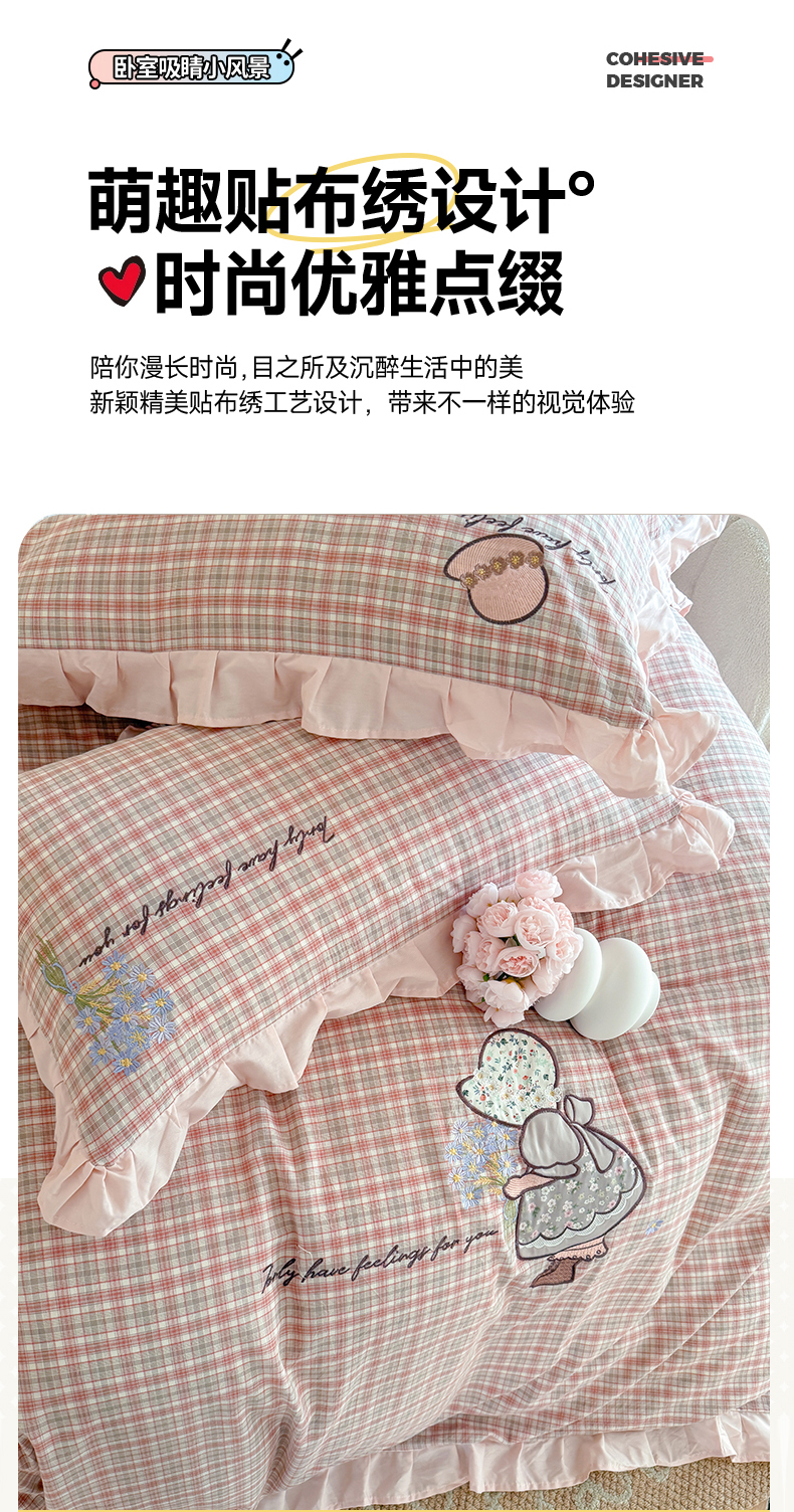 当前位置: 91家纺网 > 商品网购 > 床品套件 > 四件套 > 水洗棉四件套 > 蜜柚 2025秋冬新款色织水洗棉贴布花边款四件套 童趣-洋气红