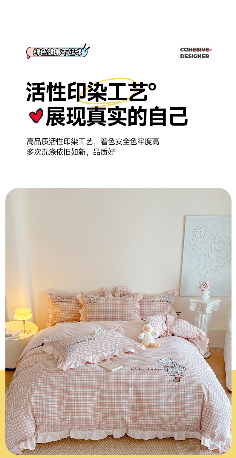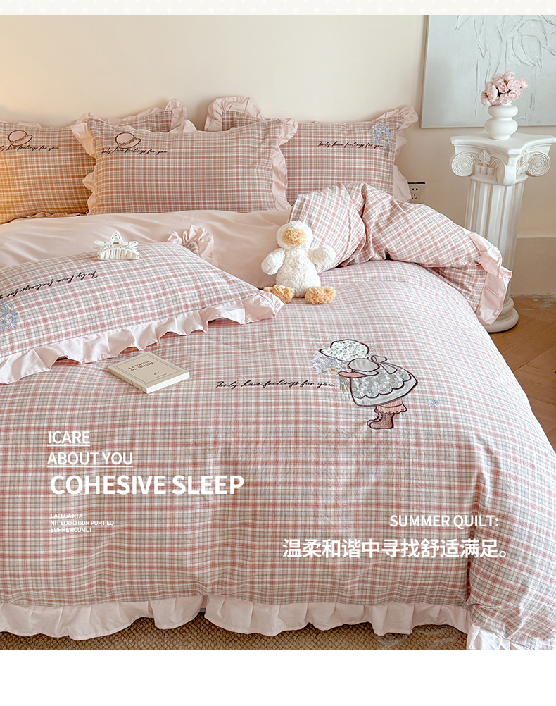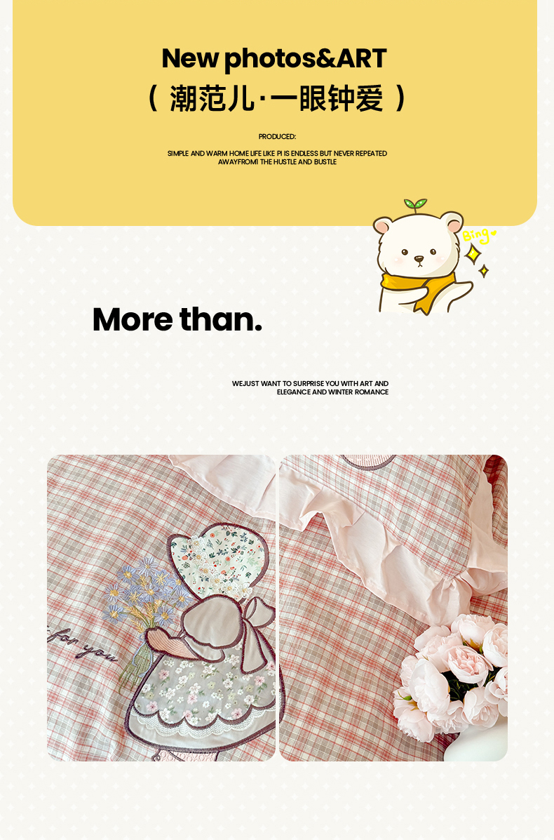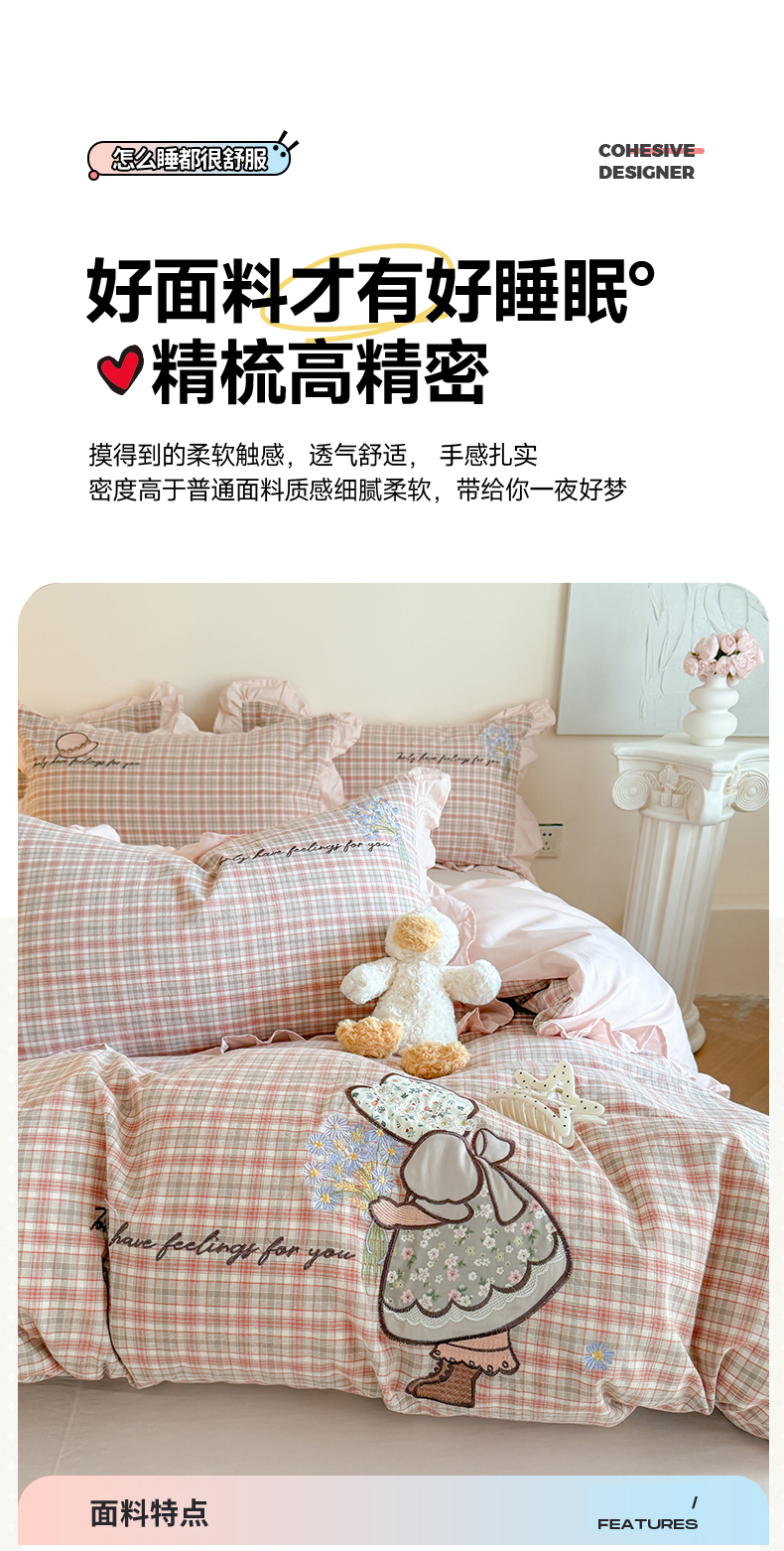 当前位置: 91家纺网 > 商品网购 > 床品套件 > 四件套 > 水洗棉四件套 > 蜜柚 2025秋冬新款色织水洗棉贴布花边款四件套 童趣-洋气红