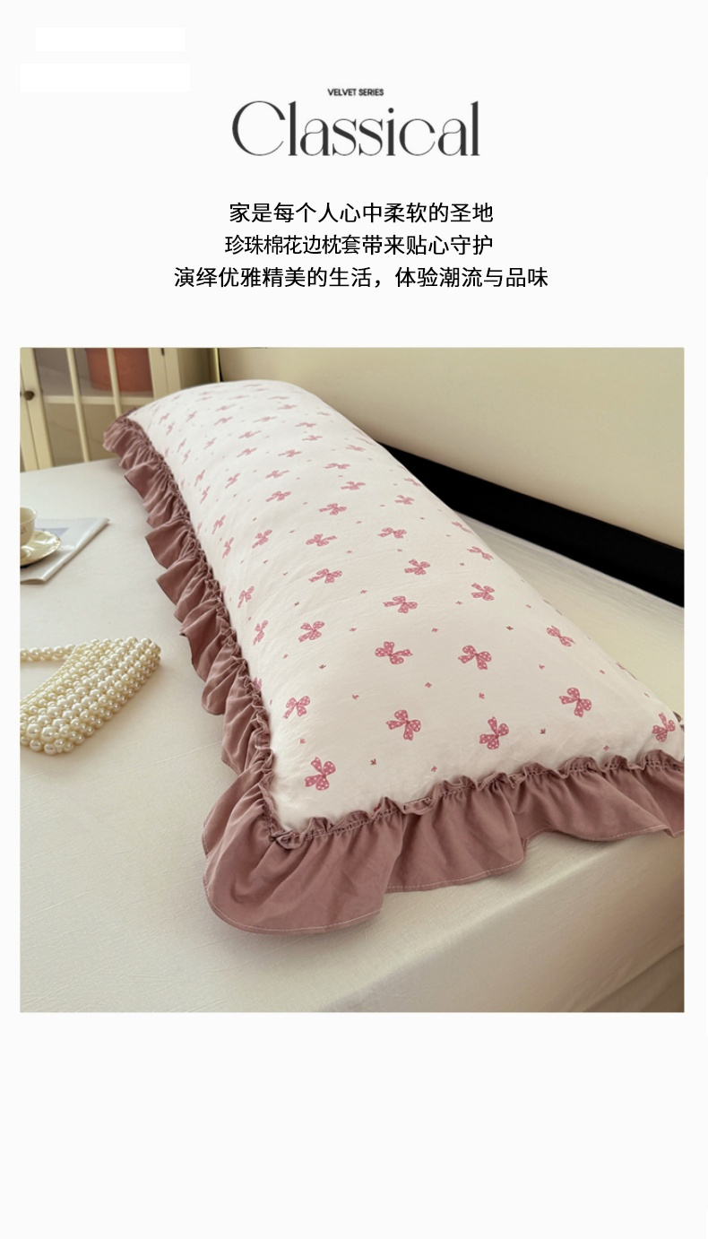 商品名称:梦舒羽 2025新款水洗珍珠棉花边枕套加长双人情侣1.8米枕芯内胆套1.5m枕头套 怦然心动
