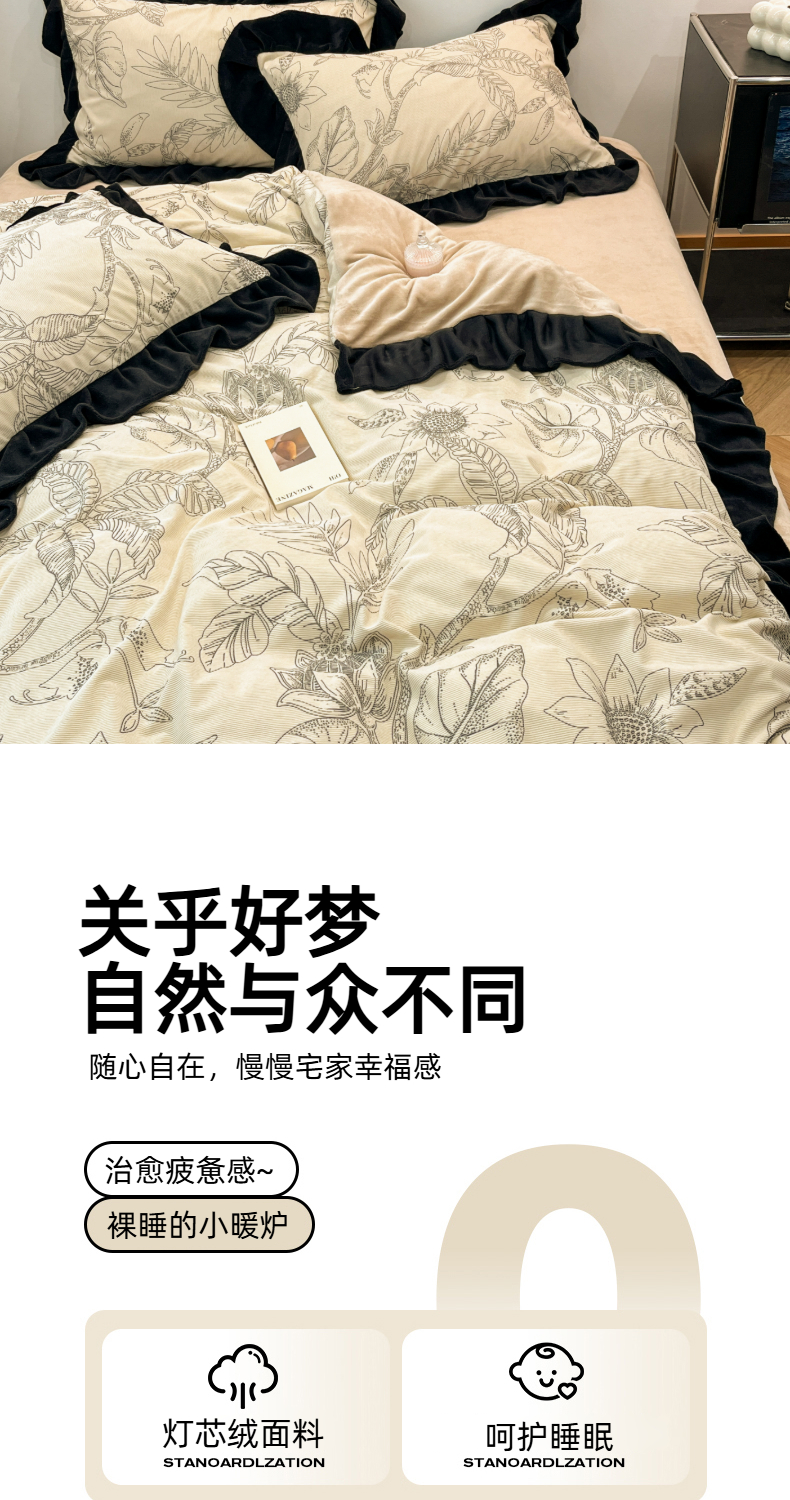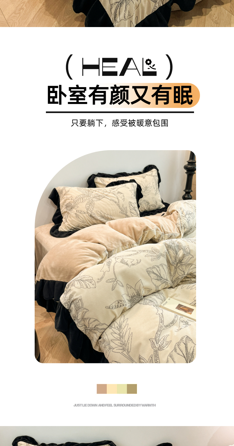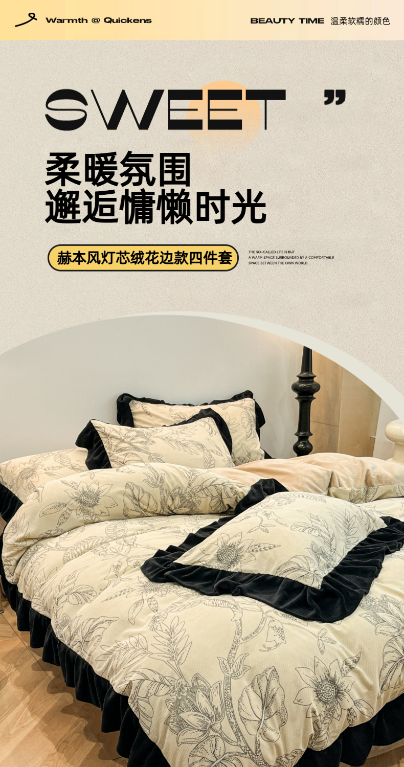 当前位置: 91家纺网 > 商品网购 > 床品套件 > 四件套 > 其它四件套 > 金爱家 2025新款赫本风灯芯绒-花边款四件套 灯芯绒-枝叶