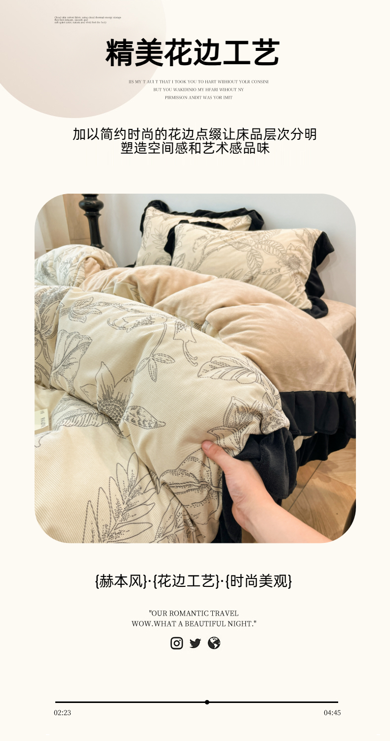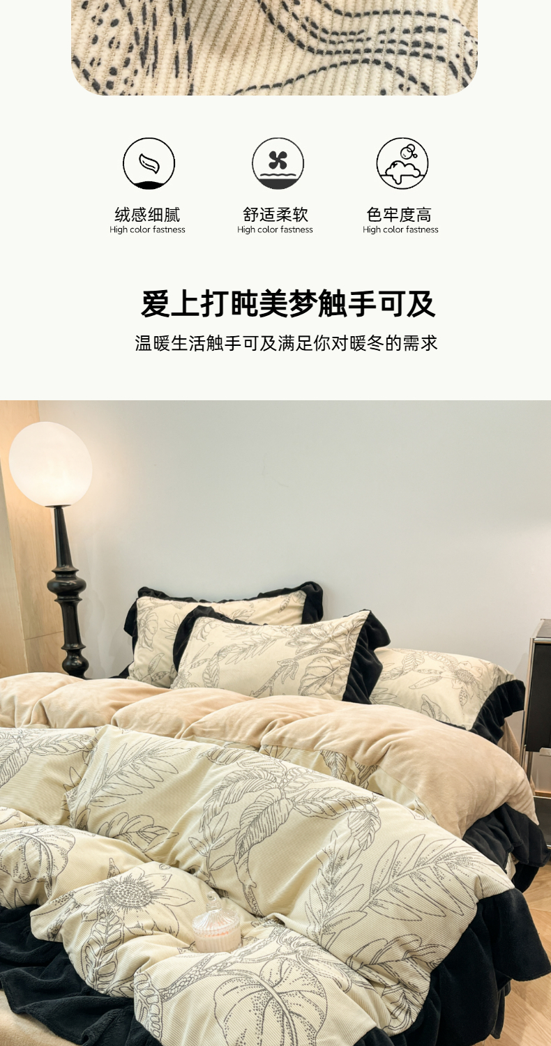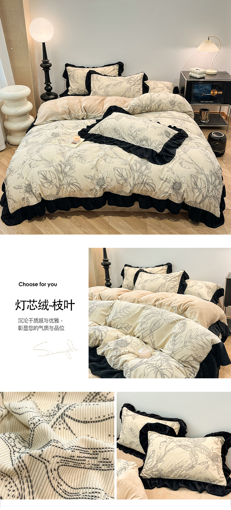 当前位置: 91家纺网 > 商品网购 > 床品套件 > 四件套 > 其它四件套 > 金爱家 2025新款赫本风灯芯绒-花边款四件套 灯芯绒-枝叶