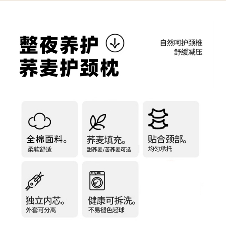 商品名称:(总)仁宇枕业 2025新款全棉全荞麦壳枕头成人学生儿童通用款枕芯加枕套可拆洗