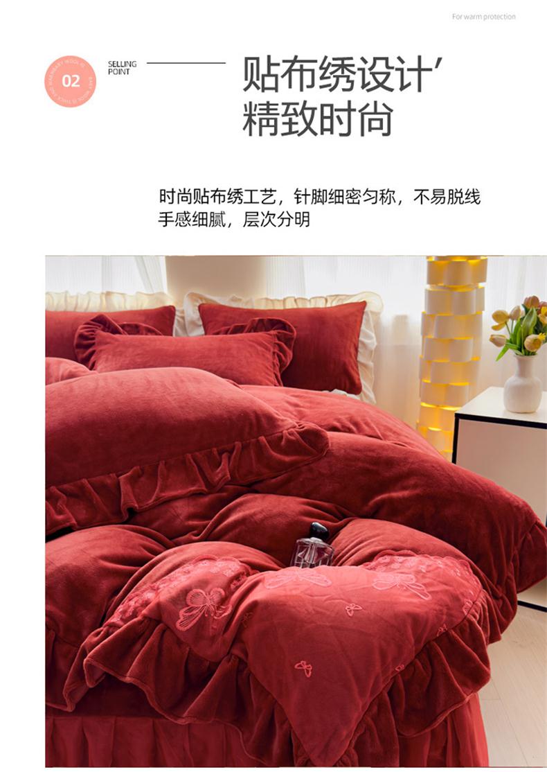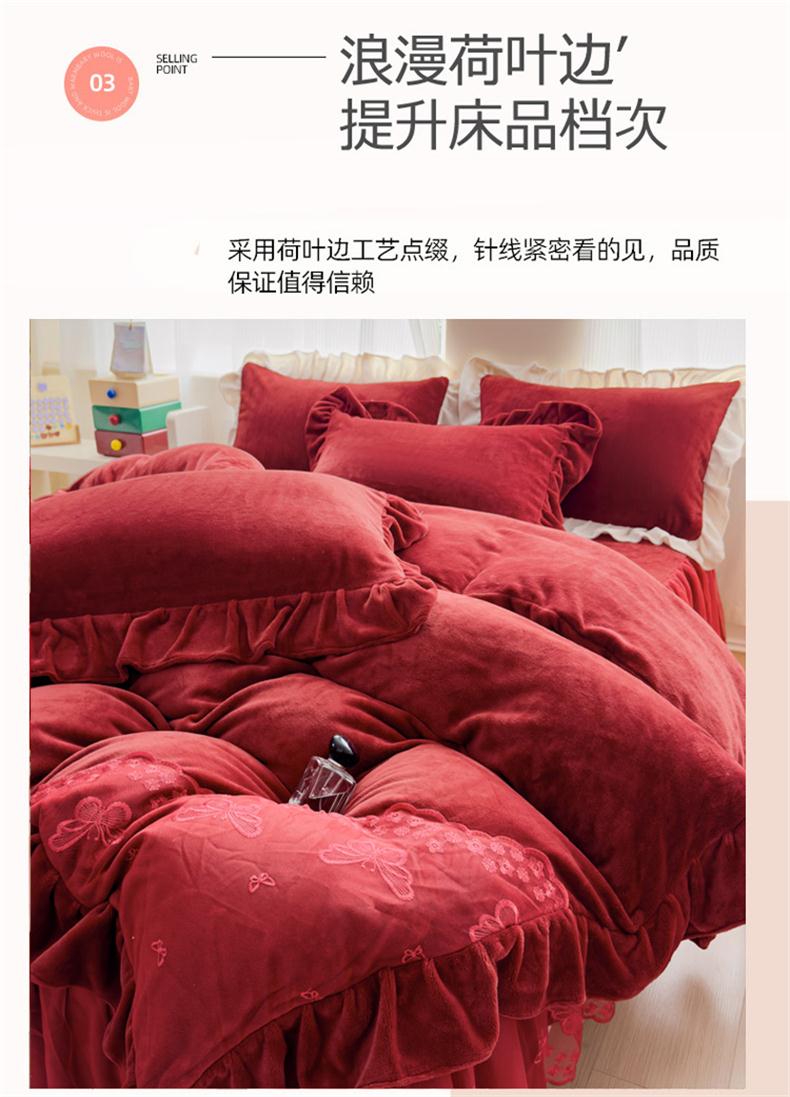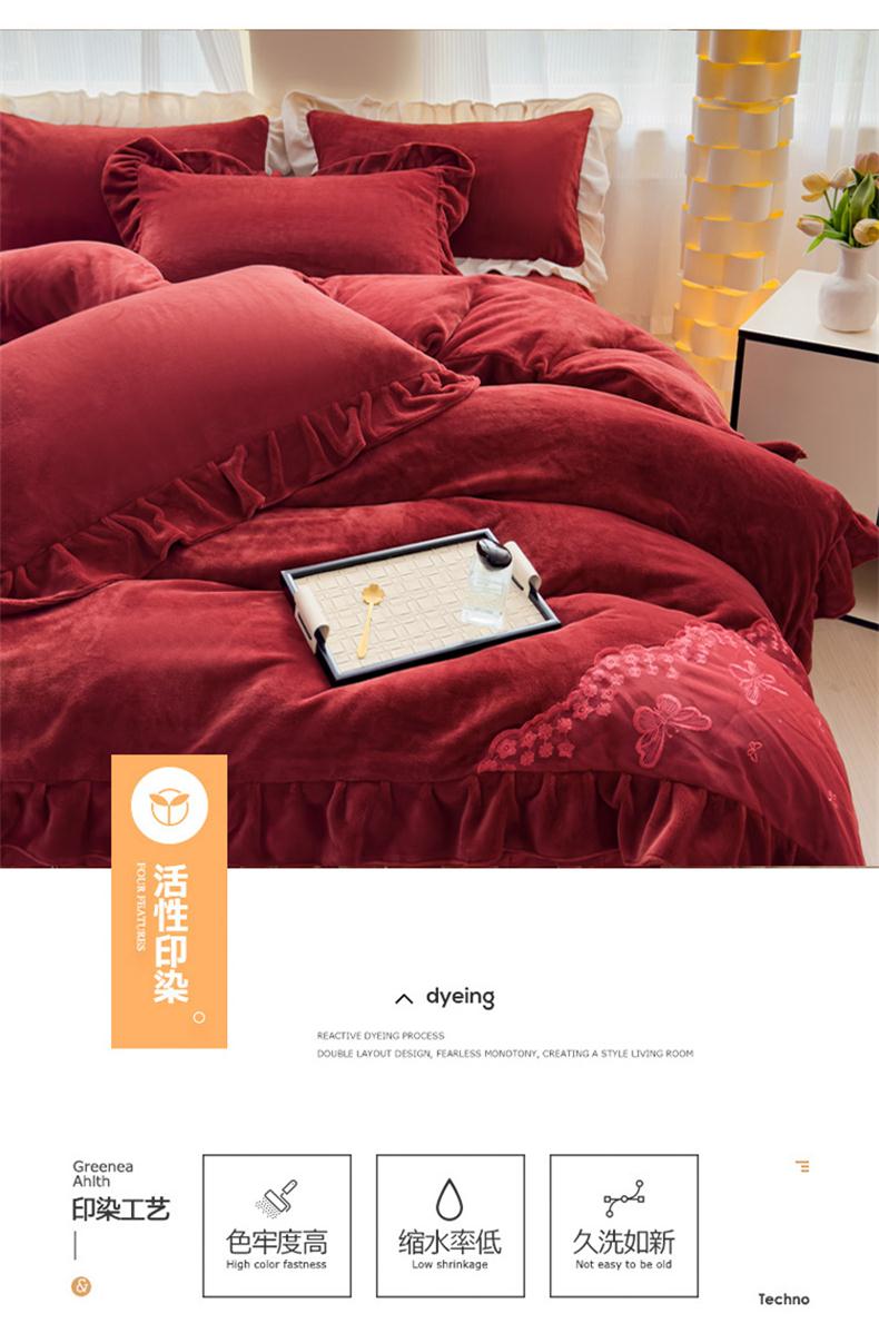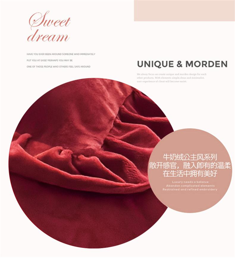 当前位置: 91家纺网 > 商品网购 > 床品套件 > 四件套 > 牛奶绒四件套 > 睡美人 2025韩版蕾丝牛奶绒套件公主风床裙床单款四件套 花蝴蝶-车厘子红拼红蕾丝