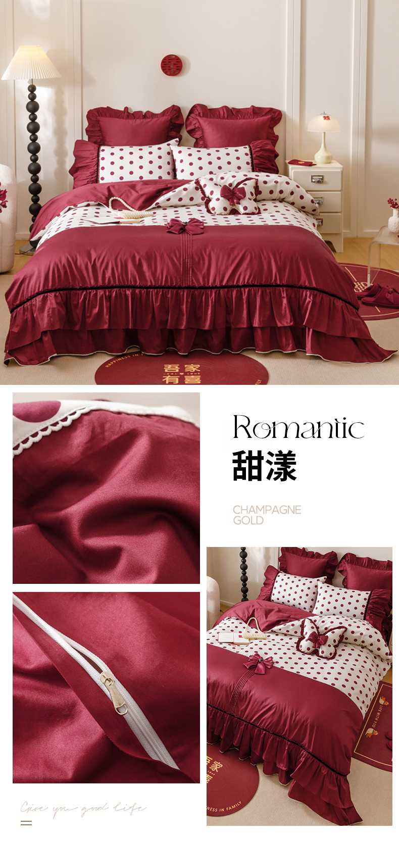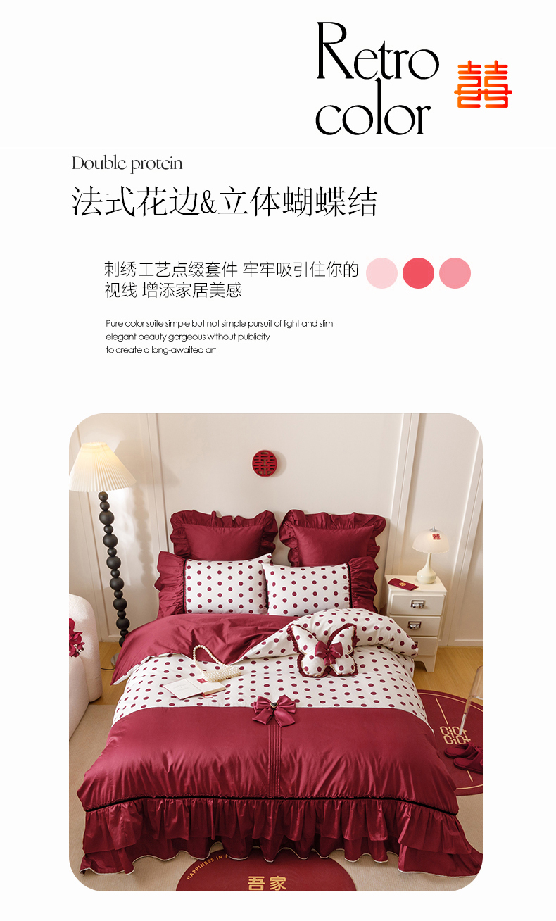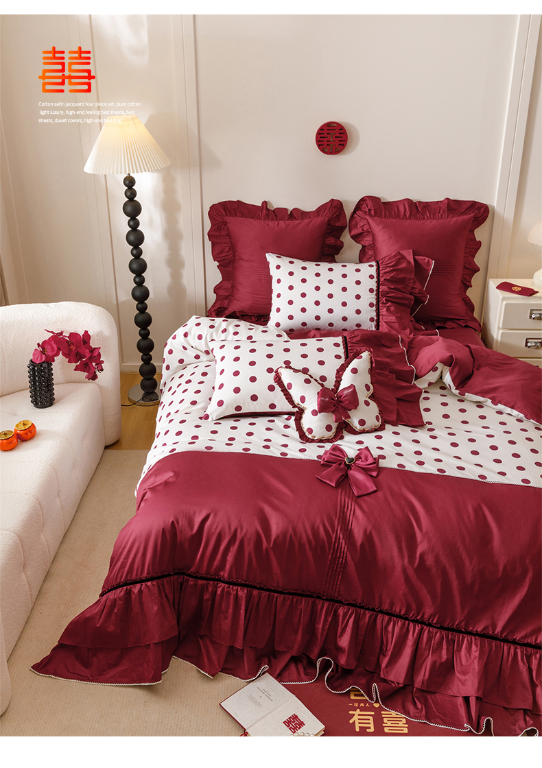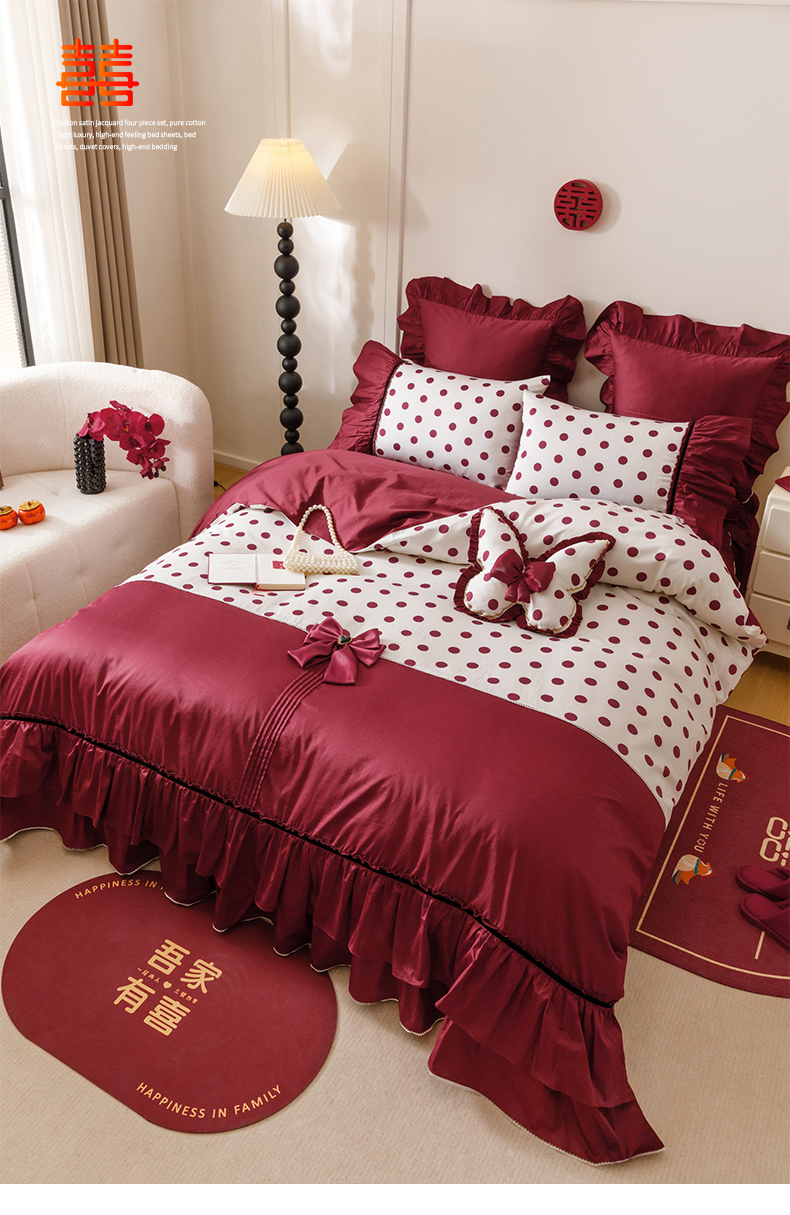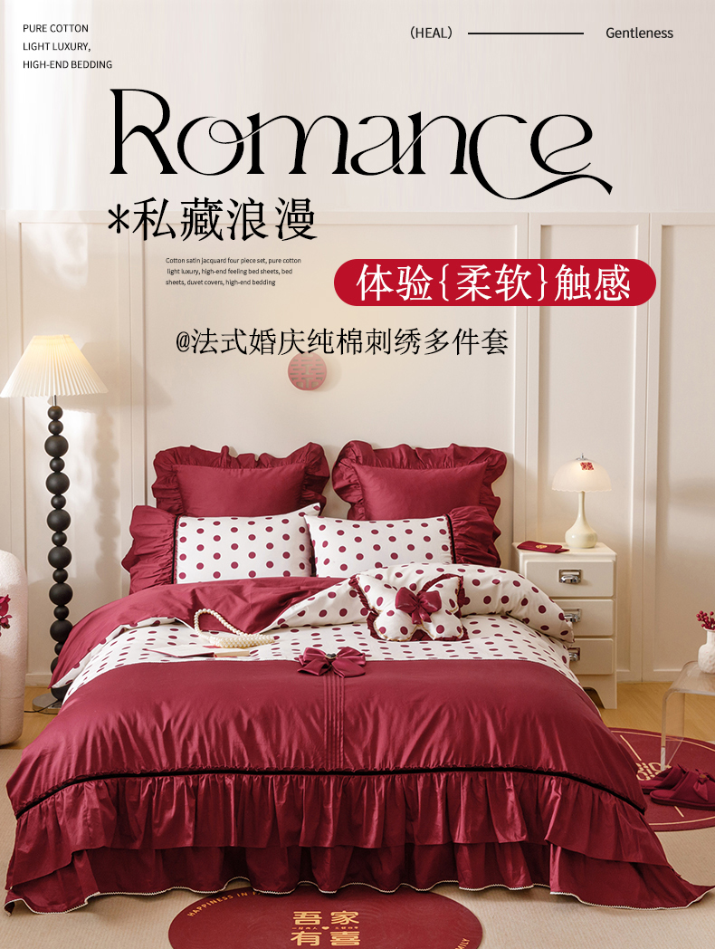 当前位置: 91家纺网 > 商品网购 > 床品套件 > 四件套 > 全棉普通四件套 > 宏羽纺家纺 2025新款100s全棉纯棉贡缎法式刺绣花边四件套 纯棉时尚-甜漾