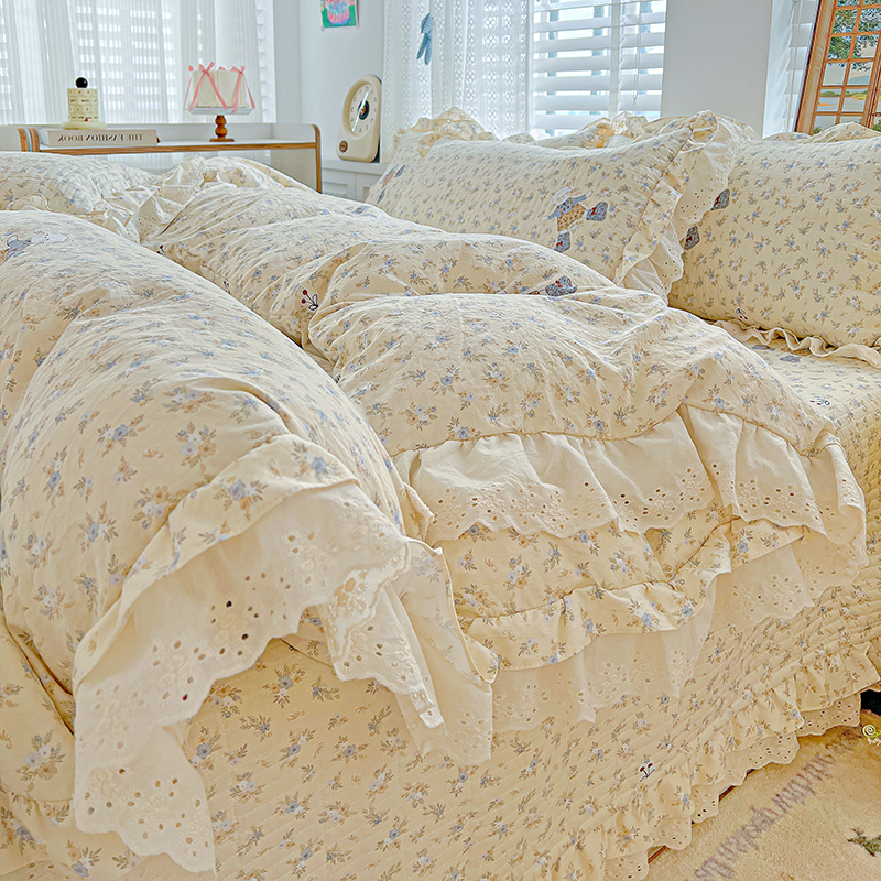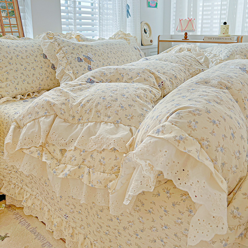 (总)梦莱斯 2025新款田园碎花纯棉花边四件套-床盖款,采薇,花精灵,花开半夏,莱茵,恋爱季,绿叶仙踪,糜花似锦,糜花熙悦,秘境花园