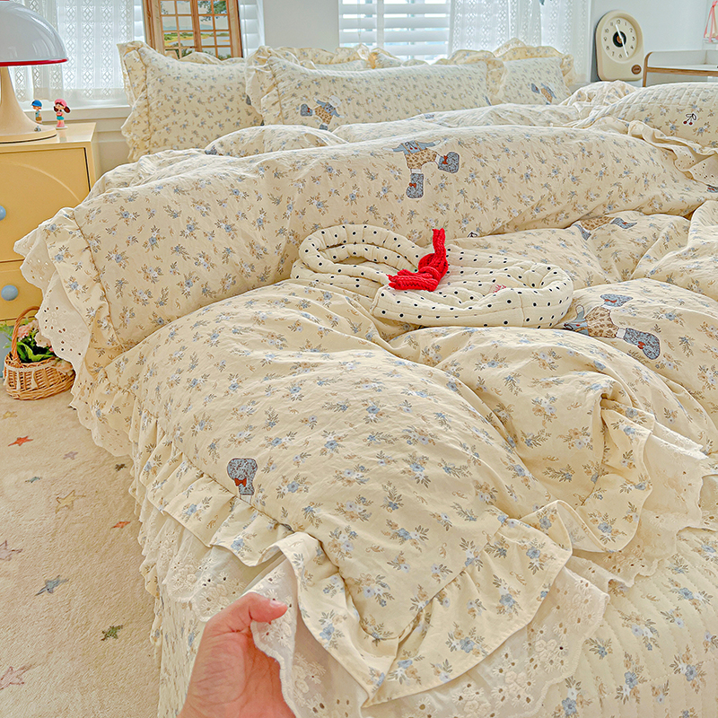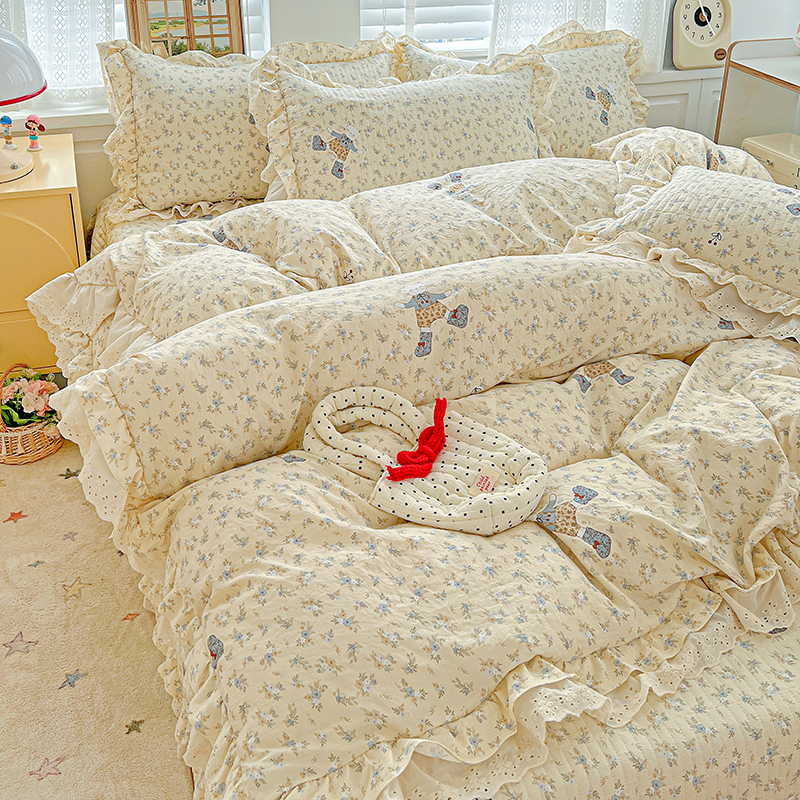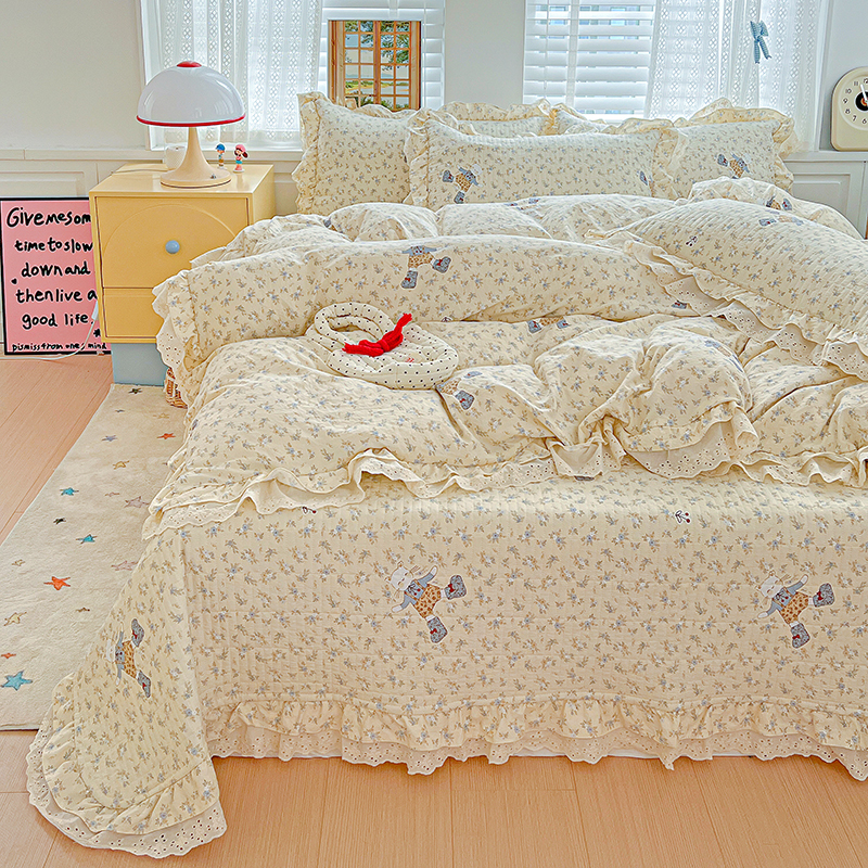 (总) 梦莱斯 2026新款小清新可爱风纯棉花边床盖四件套,灰格心,漫野,午后时光,小玫瑰,紫菱花笺,小象,屿花,浅棠絮语,彩色波点,彩色小草莓,粉蔷薇,杏野繁花,狗狗家族,蝴蝶结,可爱狗狗,可爱胡萝卜,蓝色狗狗,雾紫汀兰,蓝色梦铃,漫花蝶舞,米色南瓜,熊熊乐园,紫色小兔