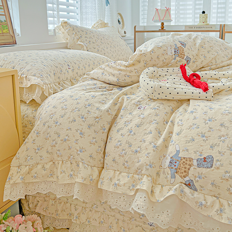 (总)梦莱斯 2025新款云感木棉皱皱双层纱全棉花边四件套,百福蓝,春风里,薄荷微凉,春晓,豆蔻,蝴蝶梦,可颂,兰黛,山野栀子,素颜,太妃糖,心动,遇见,芝士奶酪,紫爱心,紫苏,花园兔,蜡笔画,小黑兔,白茶-绿,初恋,莱茵河畔,桃花诺