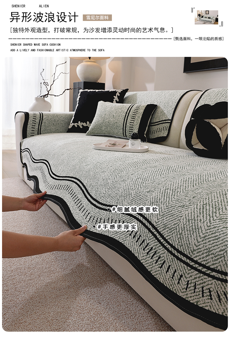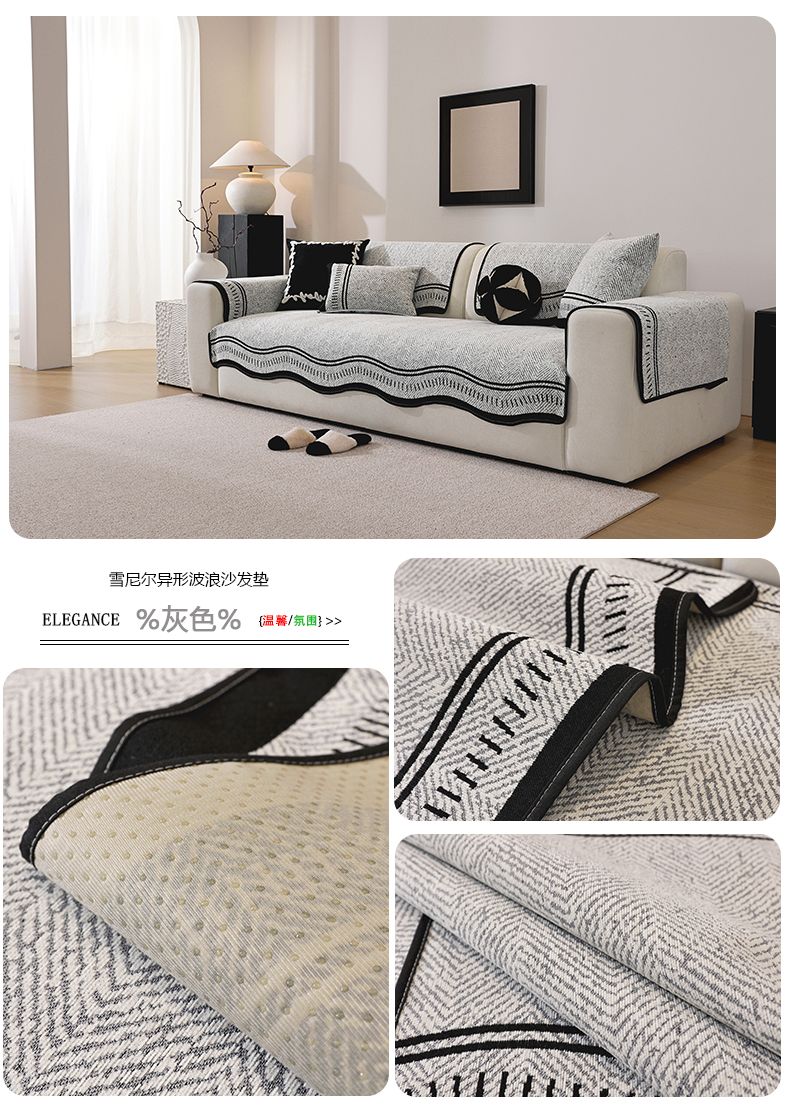 共鸣沙发垫 2025新款雪尼尔异形波浪沙发垫 雪尼尔异形波浪灰色
