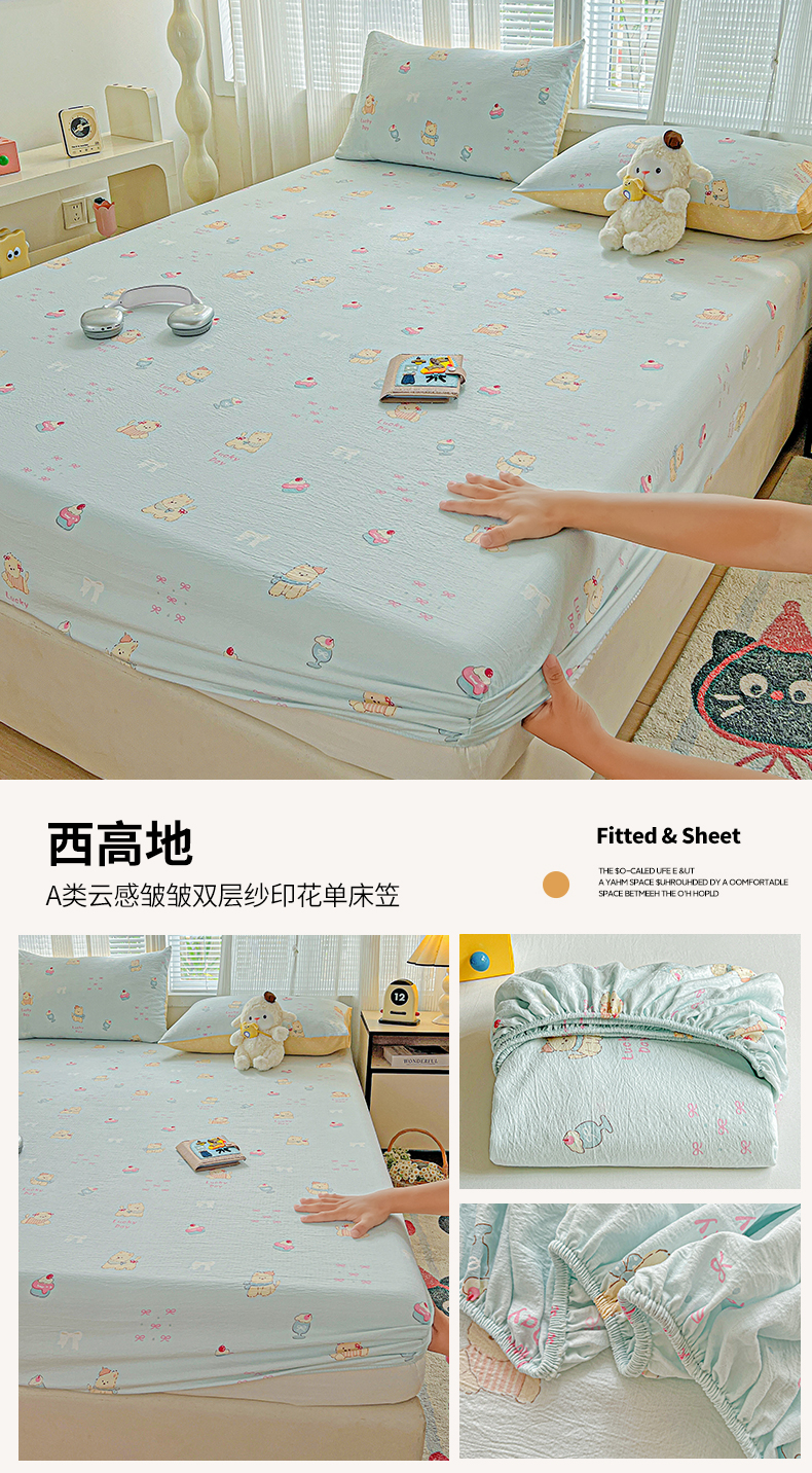 当前位置: 91家纺网 > 商品网购 > 床上用品 > 床笠 > 格真 2025秋冬新款110克高克重提花加厚皱皱纱双层纱印花单床笠 波点-抹茶绿