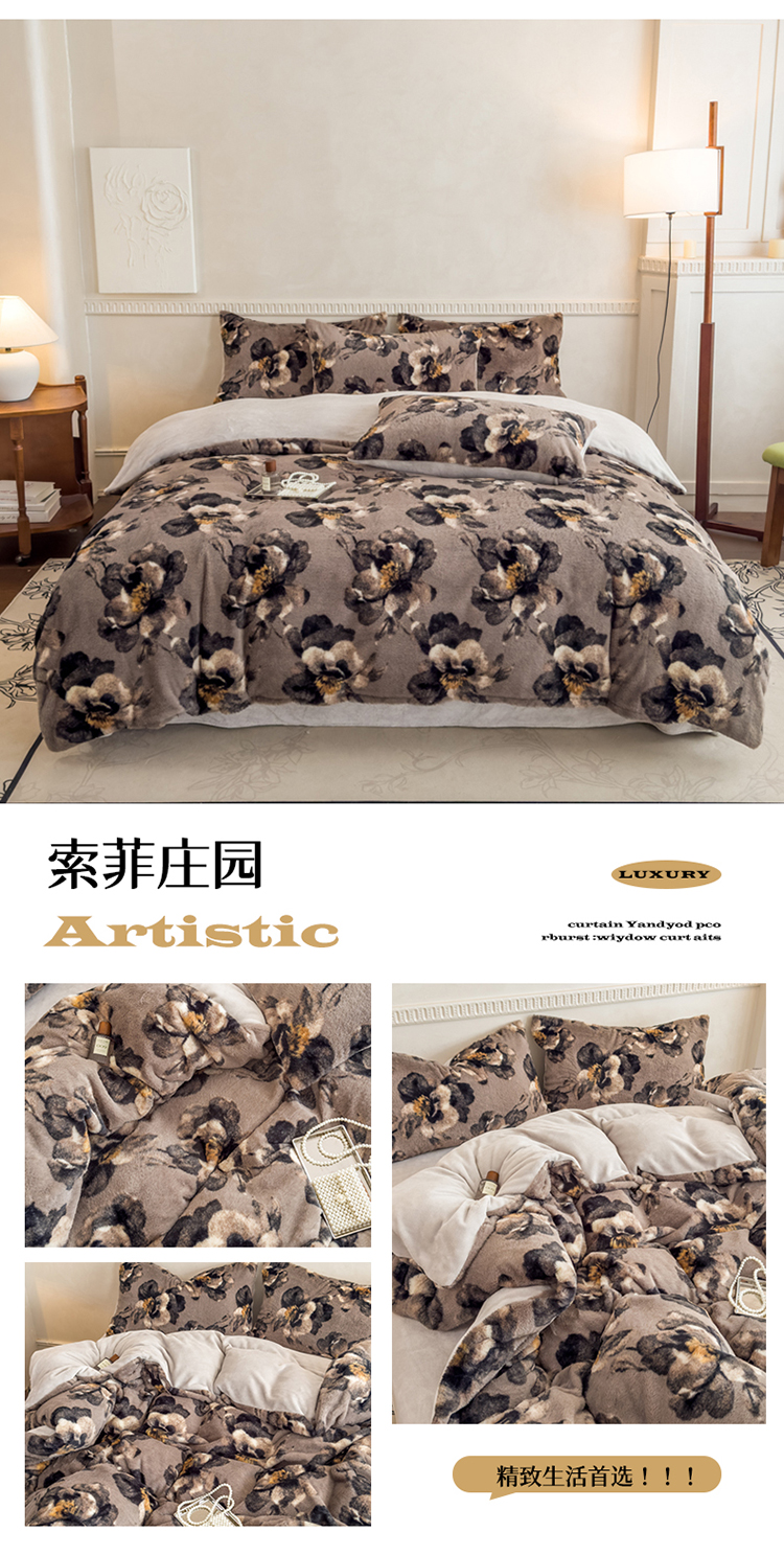 商品名称:橘子家 2025新款轻奢兔绒高克重四件套 索菲庄园