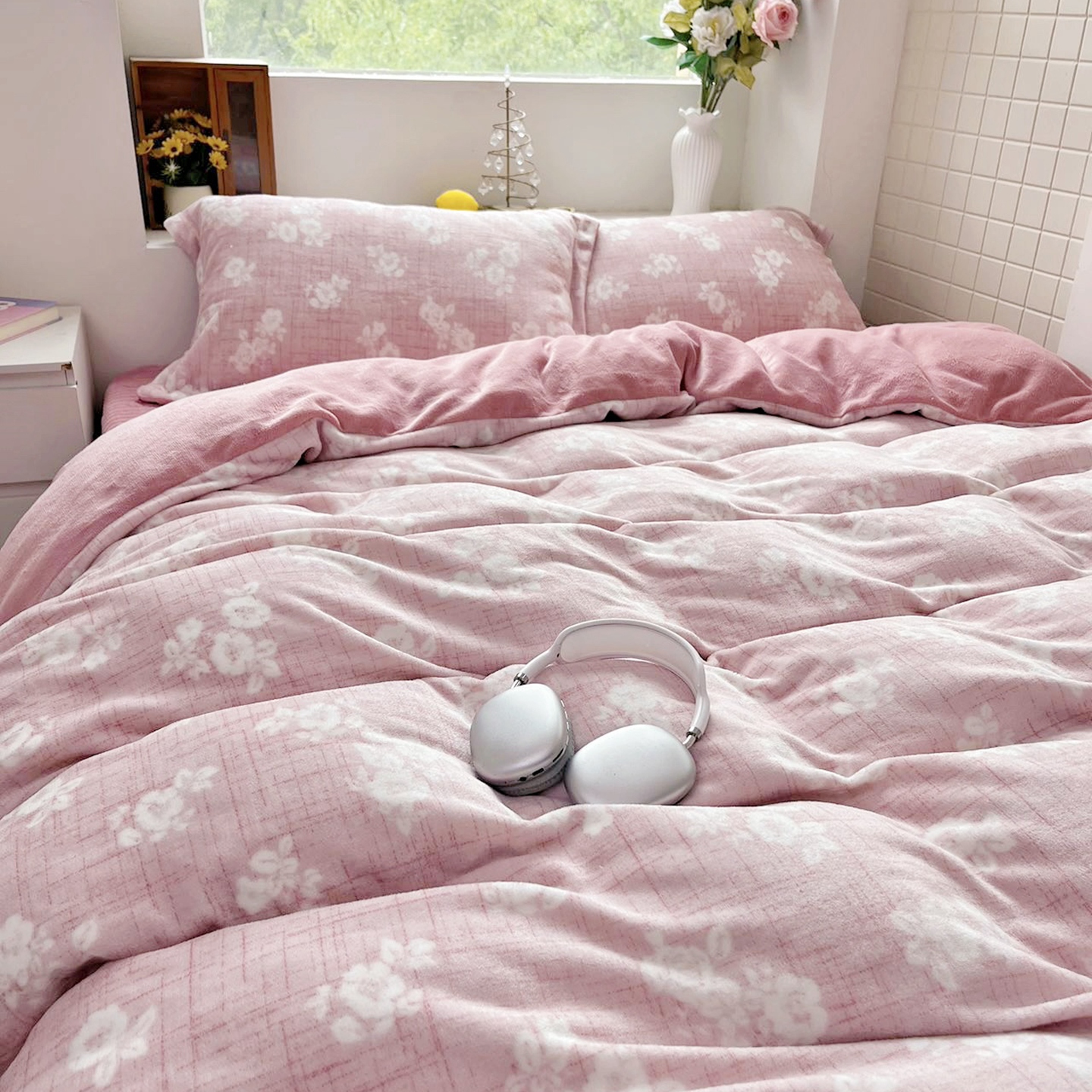 (总)恋尚羽家纺 2025新款韩版全消光烂花牛奶绒床盖四件套,蝴蝶-粉玉,蝴蝶-灰色,蝴蝶-卡其,樱花-豆沙,樱花-绿色,樱花-紫色