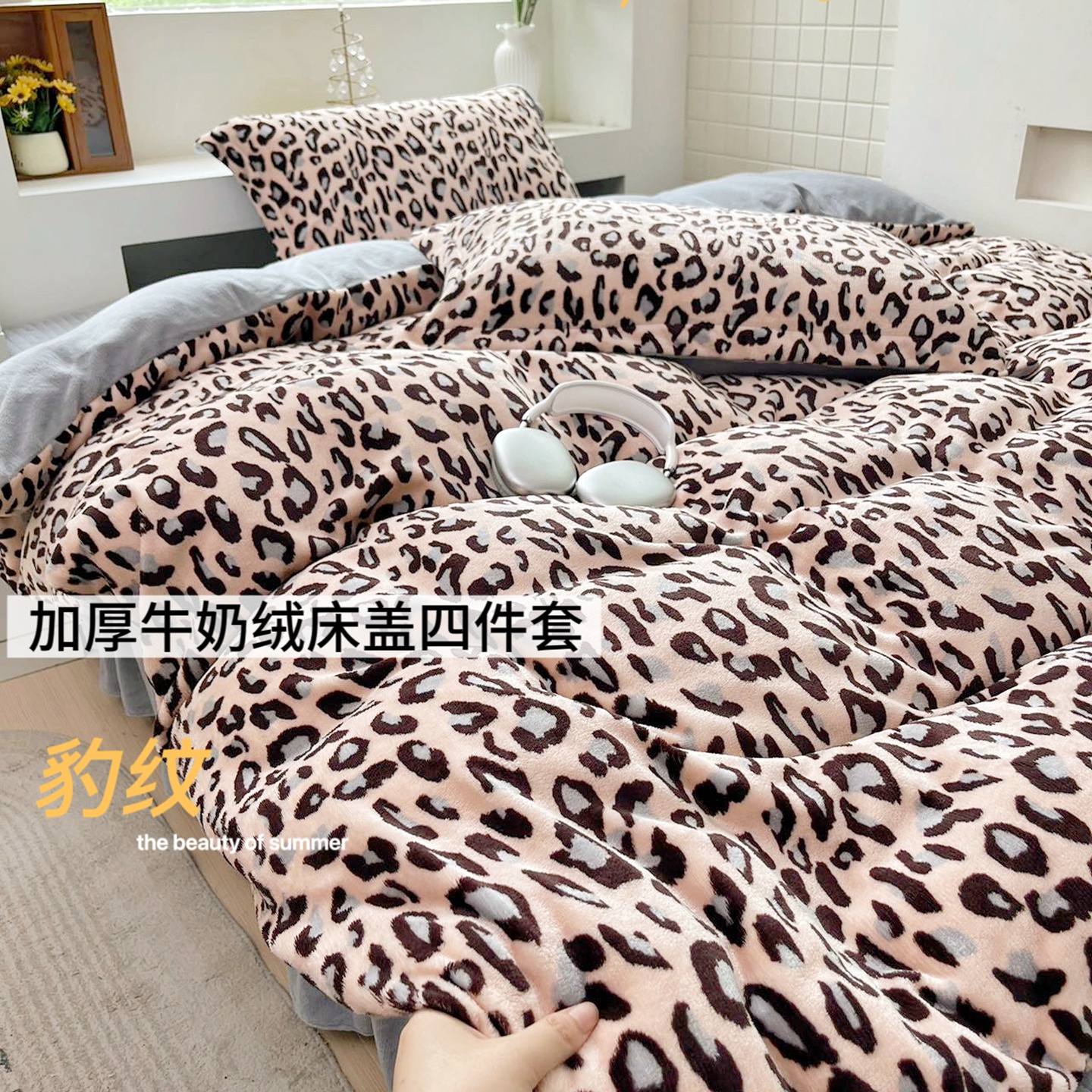 恋尚羽家纺 2025新款印花牛奶绒大床裙床盖四件套 简枝