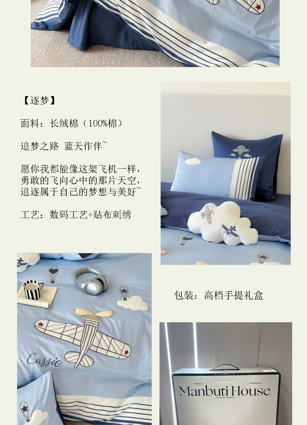 当前位置: 91家纺网 > 商品网购 > 床品套件 > 四件套 > 长绒棉四件套 > 曼布缇 2025新款长绒棉纯棉贴布绣四件套-逐梦(送抱枕)(会员减20,券后338/368/388起) 逐梦-场景二