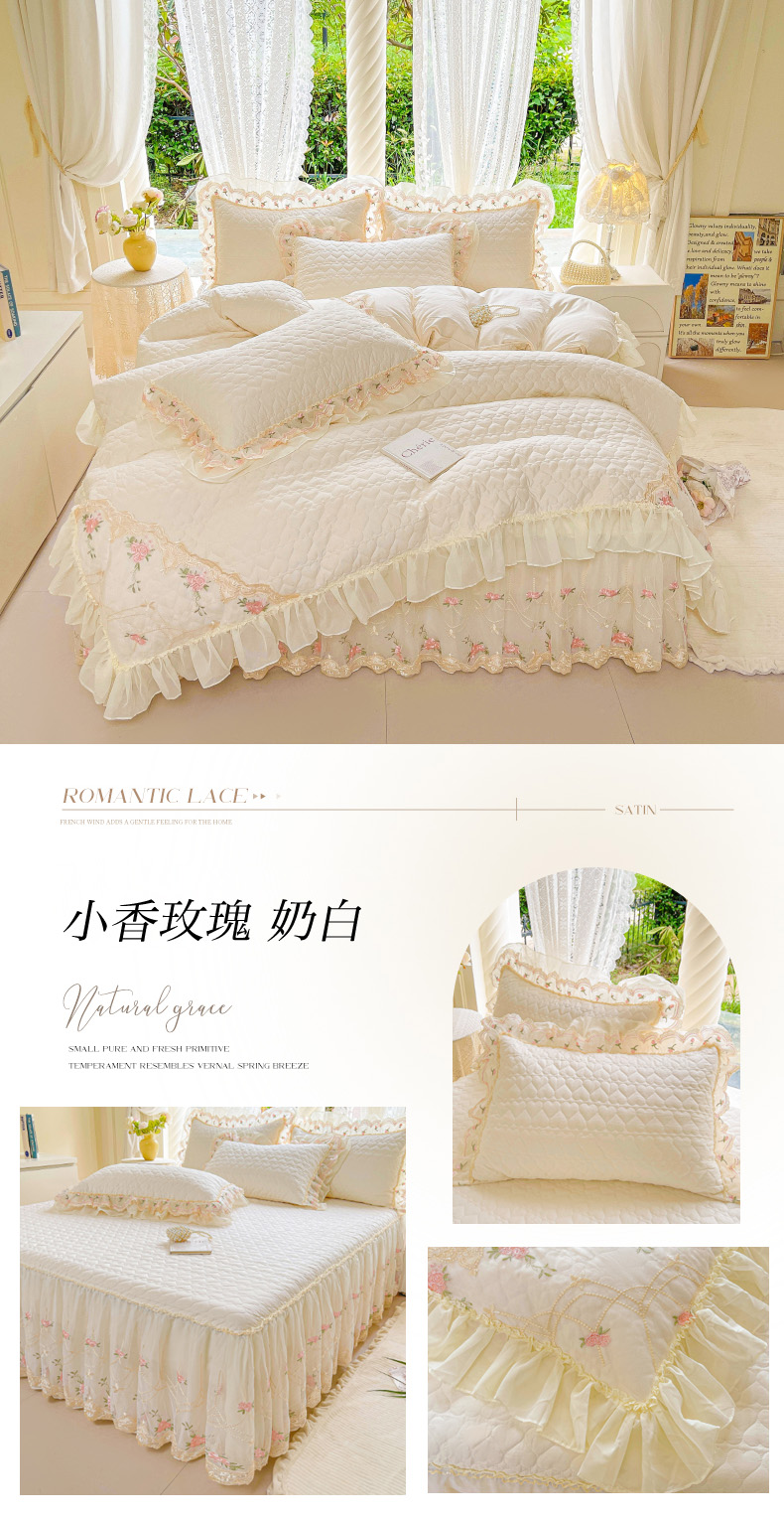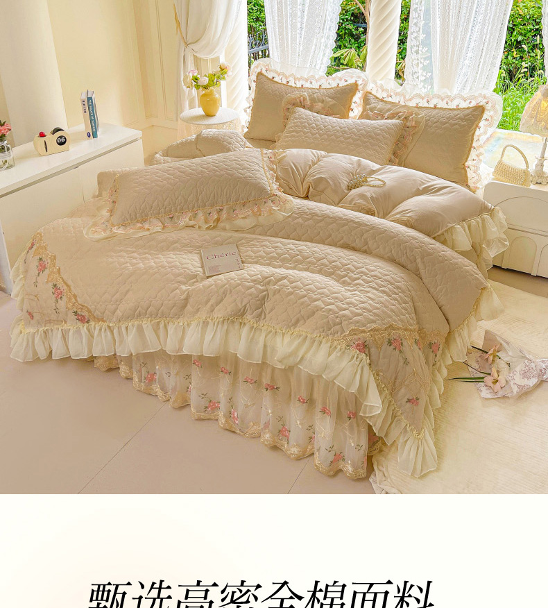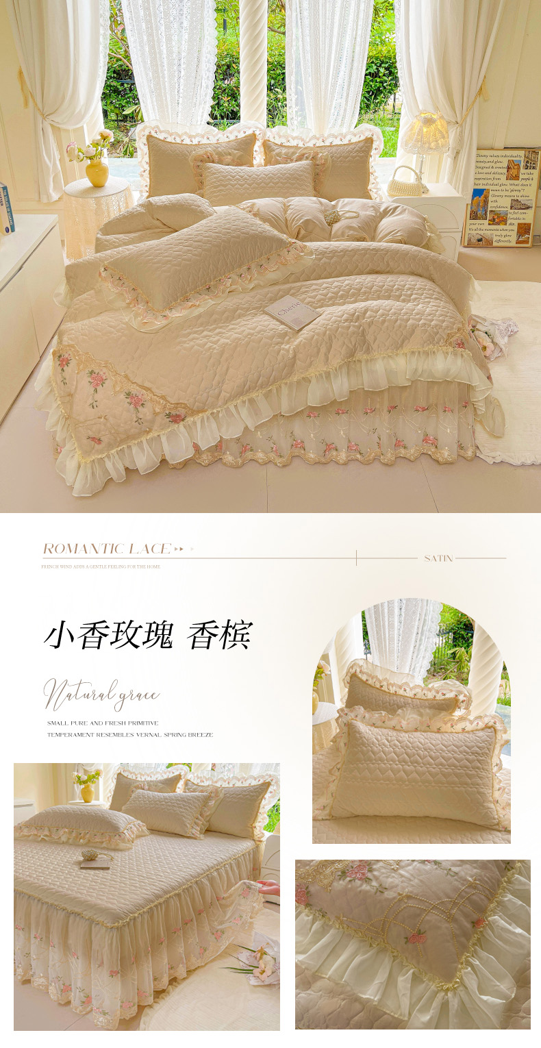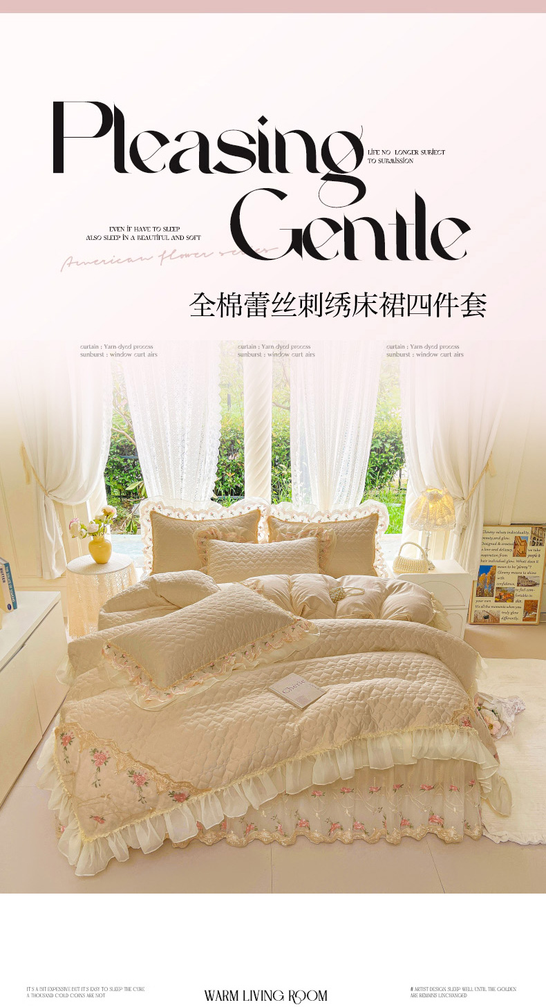当前位置: 91家纺网 > 商品网购 > 床品套件 > 四件套 > 全棉普通四件套 > 罗艺轩 2025新款全棉蕾丝刺绣床裙四件套-小香玫瑰 小香玫瑰-香槟