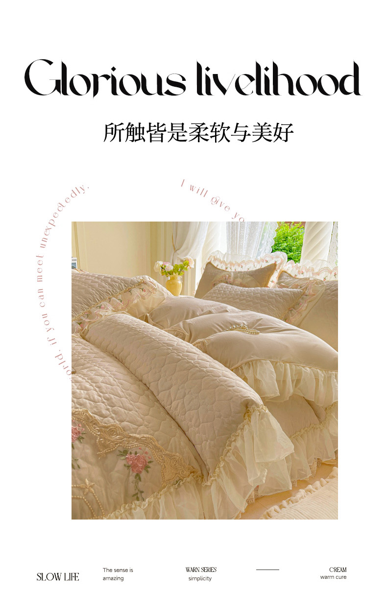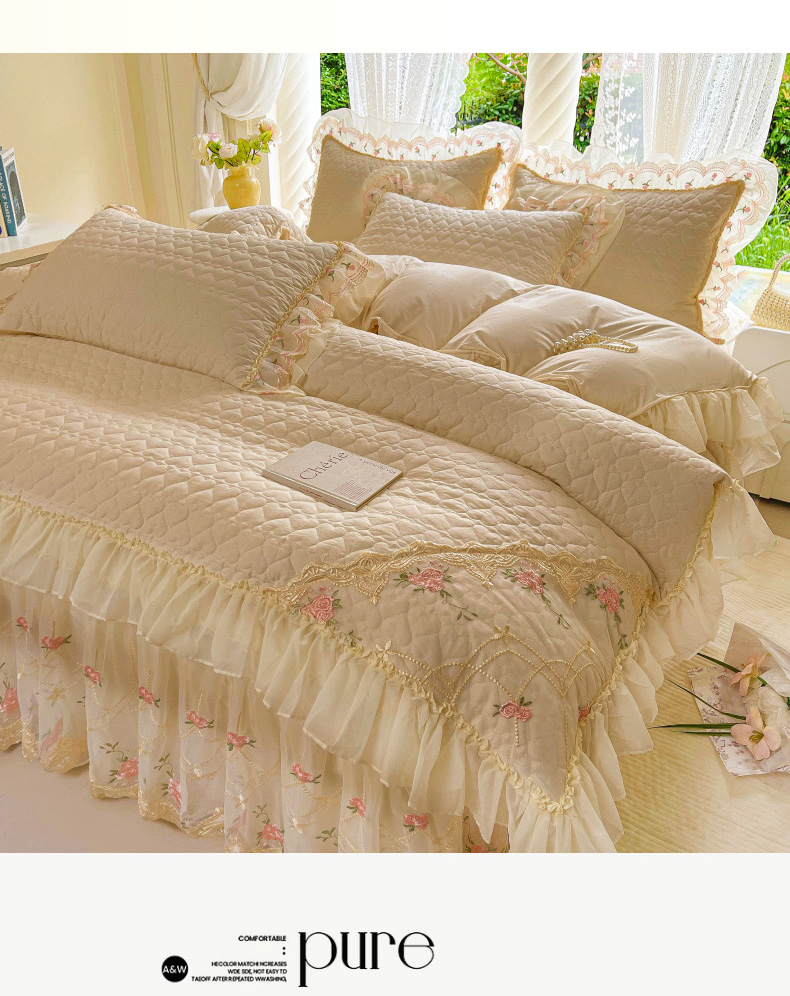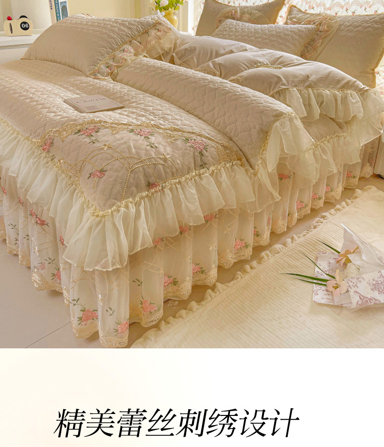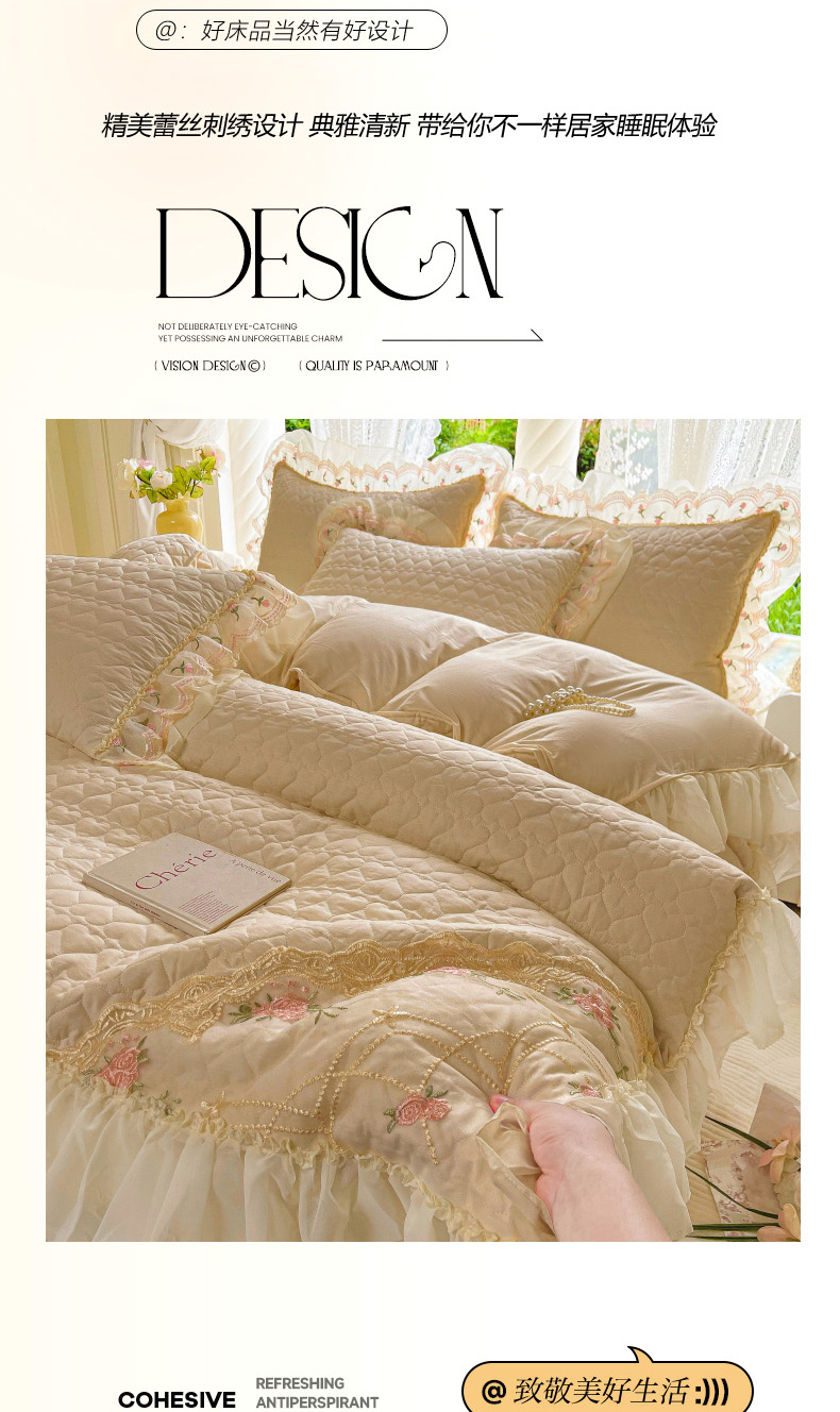 当前位置: 91家纺网 > 商品网购 > 床品套件 > 四件套 > 全棉普通四件套 > 罗艺轩 2025新款全棉蕾丝刺绣床裙四件套-小香玫瑰 小香玫瑰-香槟