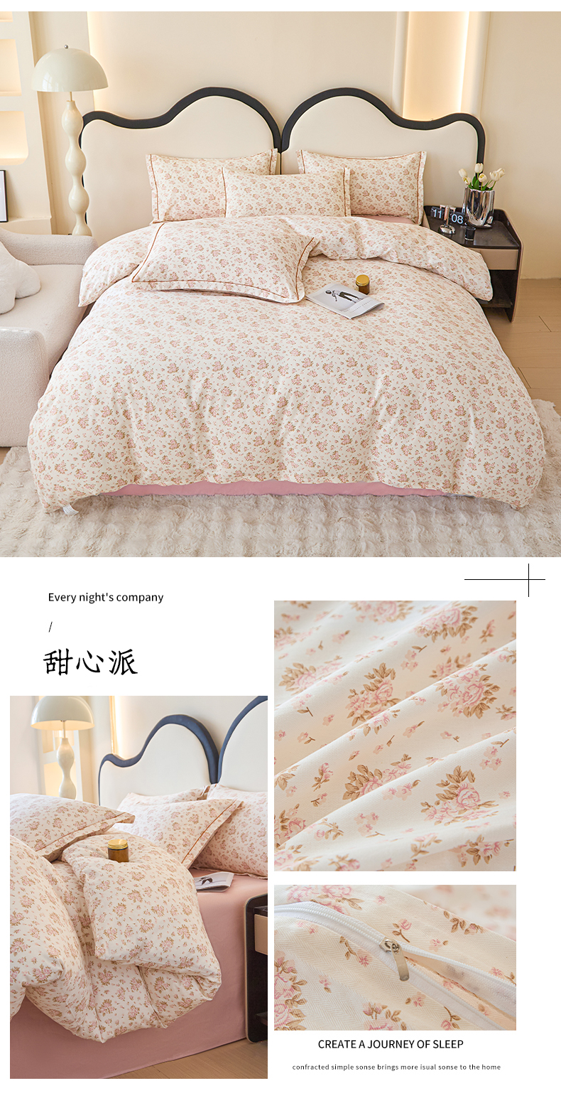 当前位置: 91家纺网 > 商品网购 > 床品套件 > 四件套 > 全棉普通四件套 > 金泰莱 2025新款全棉纯棉小清新工艺款四件套 万朵花