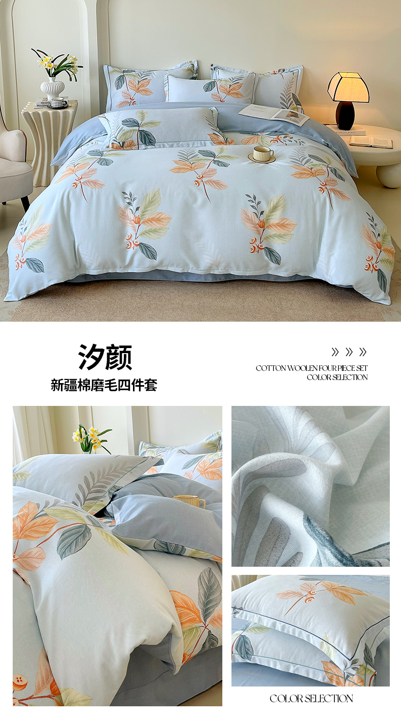 商品名称:梧桐树 2025新款轻奢新疆棉加厚磨毛四件套 瑞丽