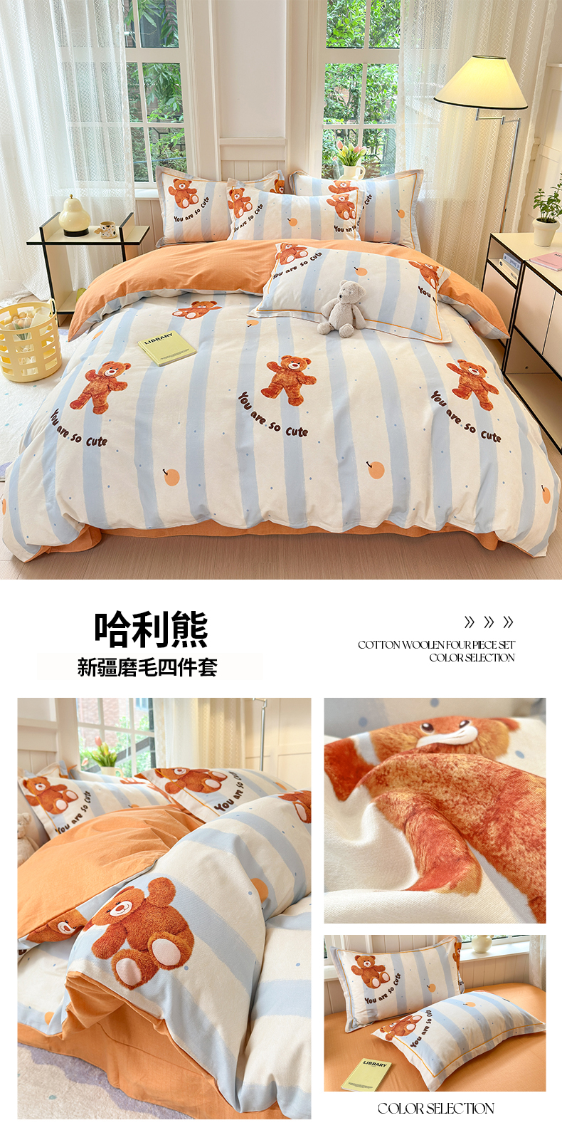 (总)梧桐树 2025新款全棉萌趣定版100%棉磨毛系列四件套,01条纹兔,02吉吉梦-桔,03吉吉梦-蓝,04珍妮熊-蓝,05珍妮熊-粉,06奶油派对,07安可-米,08安可-粉,09月野猫,10摩伊-黄,11摩伊-粉