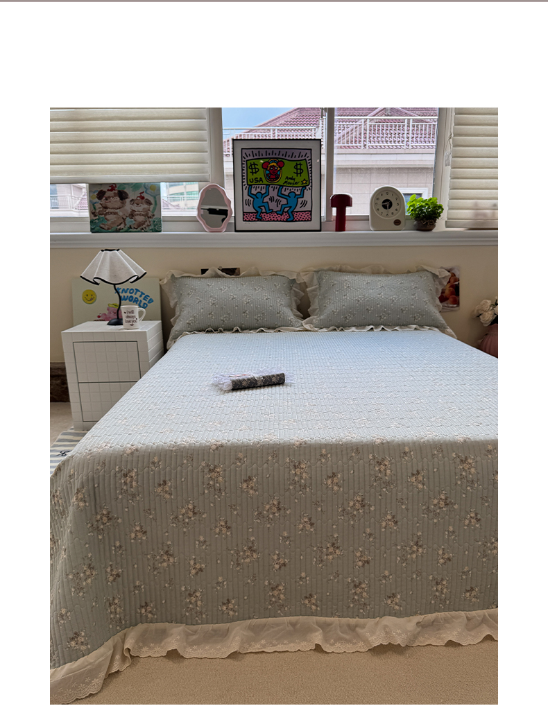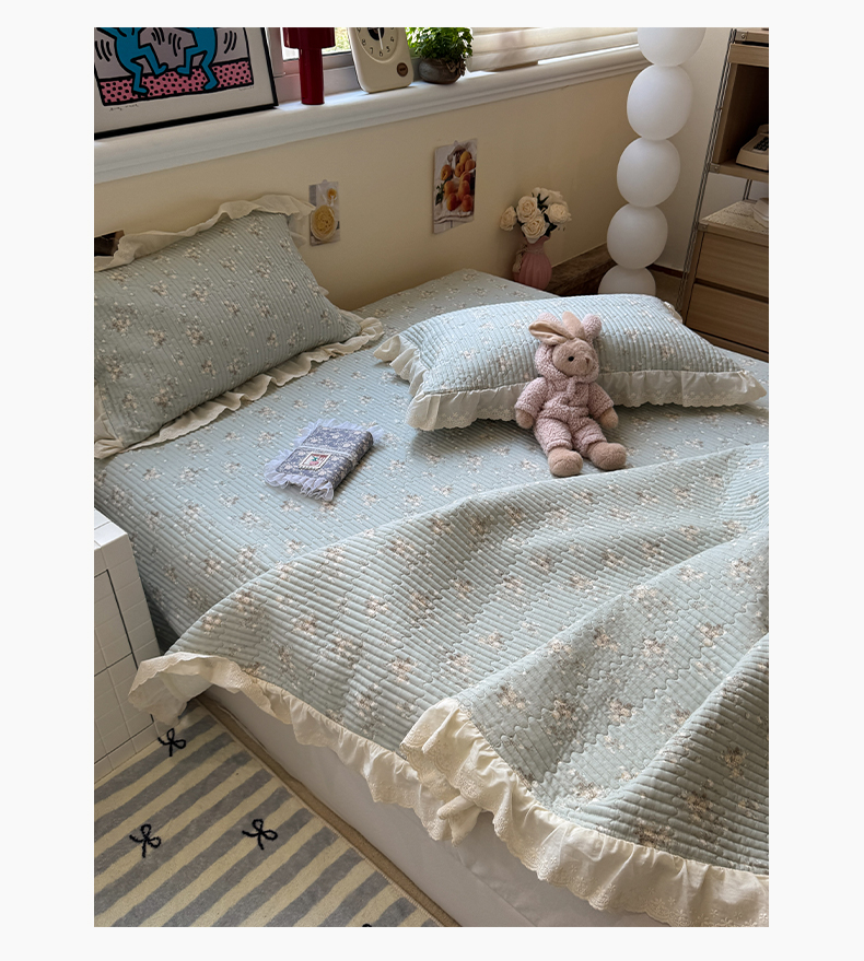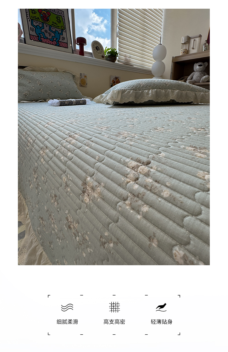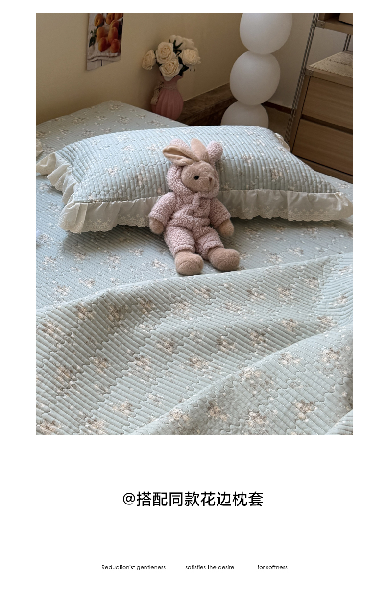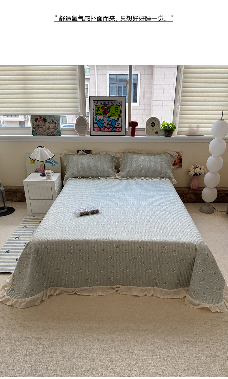 商品名称:一加一 2025新款全棉纯棉双层纱田园风单床盖床盖单件单品床盖 浮沉未央-绿