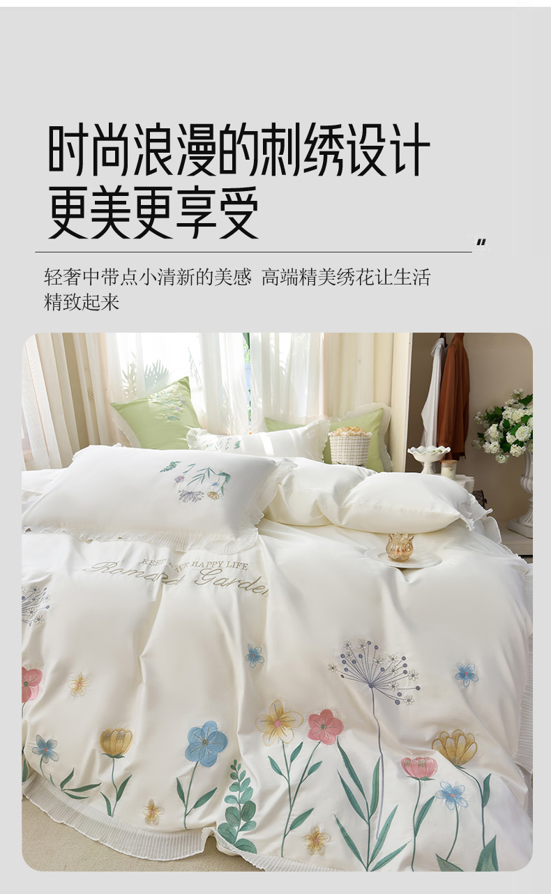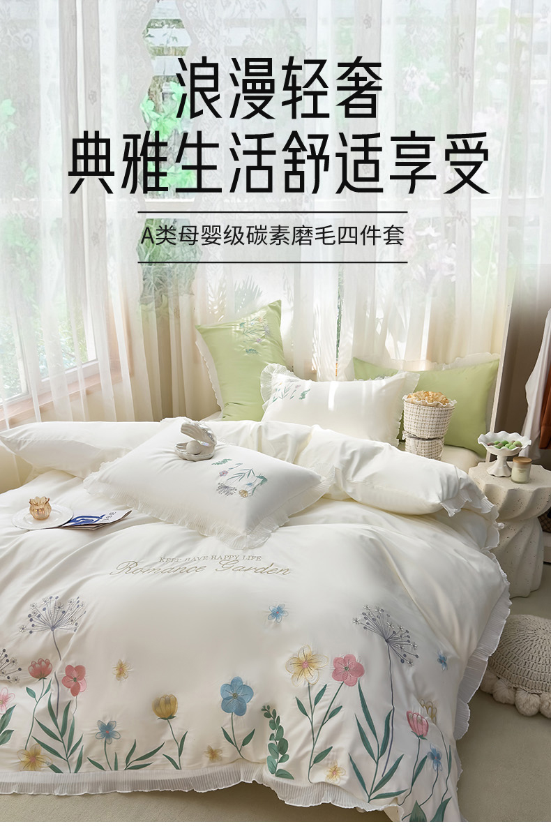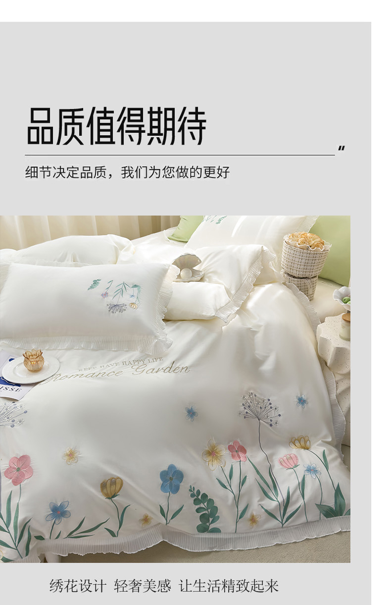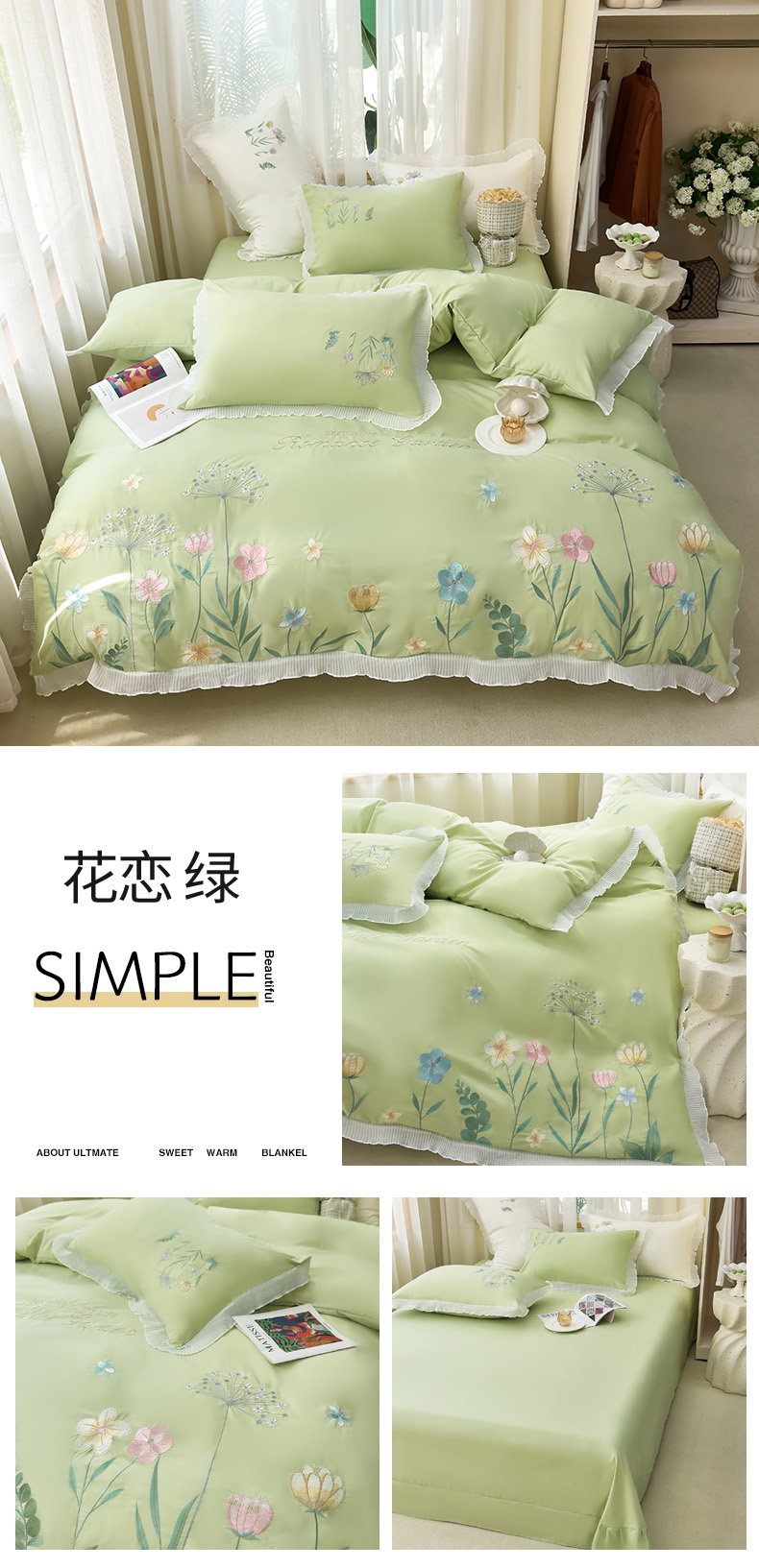 (总)青泽家纺 2025新款母婴级ins风韩版绣花荷叶边水洗棉磨毛四件套,缤纷花园绿,安娜公主蓝,安娜公主绿,安娜公主玉,缤纷花园白,手捧花白色,手捧花蓝,手捧花绿,手捧花玉色,缤纷花园玉色,飞羽-高级灰,蝶舞-白,蝶舞-蓝,蝶舞-玉,花恋 白,花恋-蓝,花恋-绿,花恋-玉