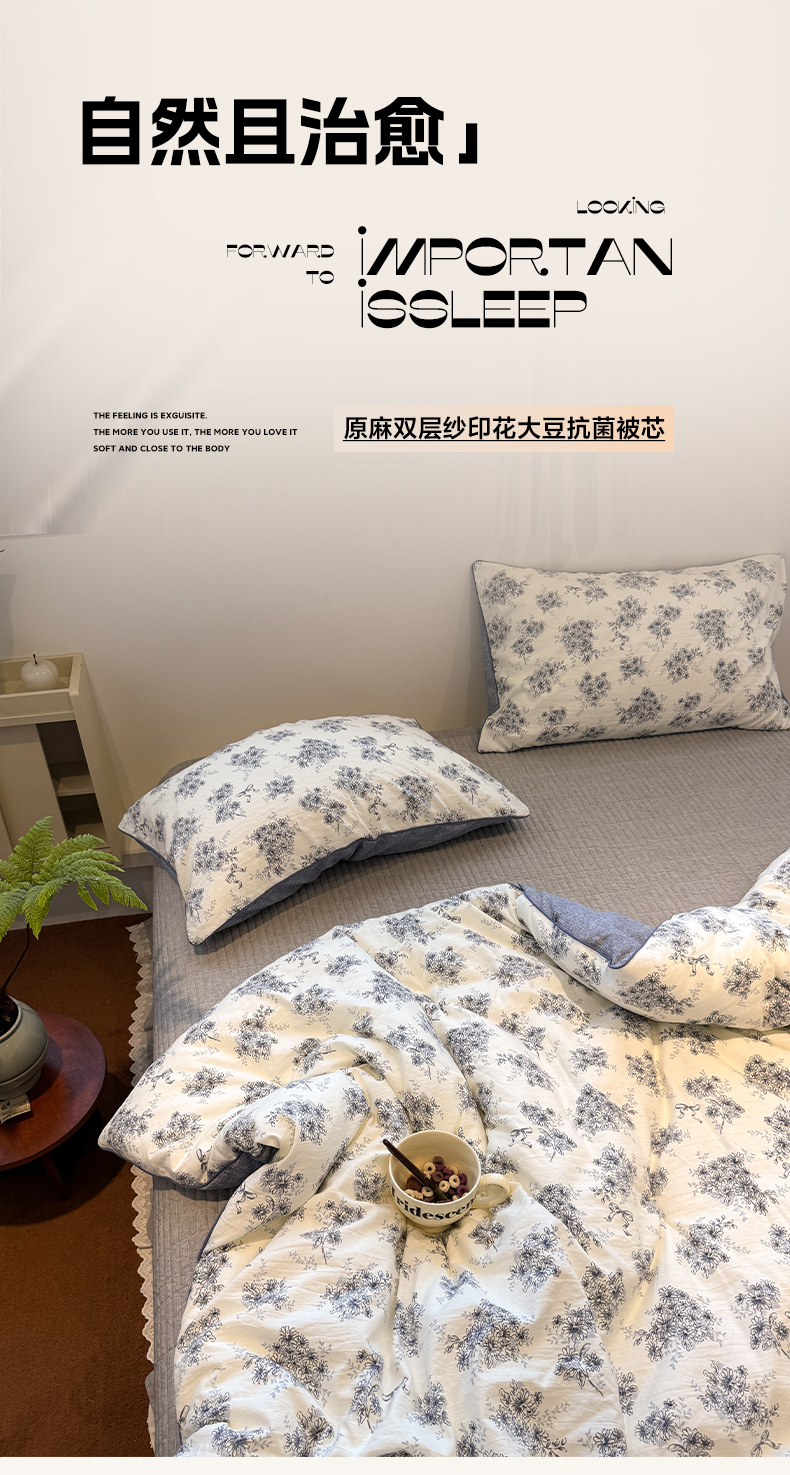(总)一加一 2026新款复古碎花双层纱大豆夏被夏凉被空调被-纱边花眠,暗香,芬芳,花团锦簇,盛夏,叶影,绽放