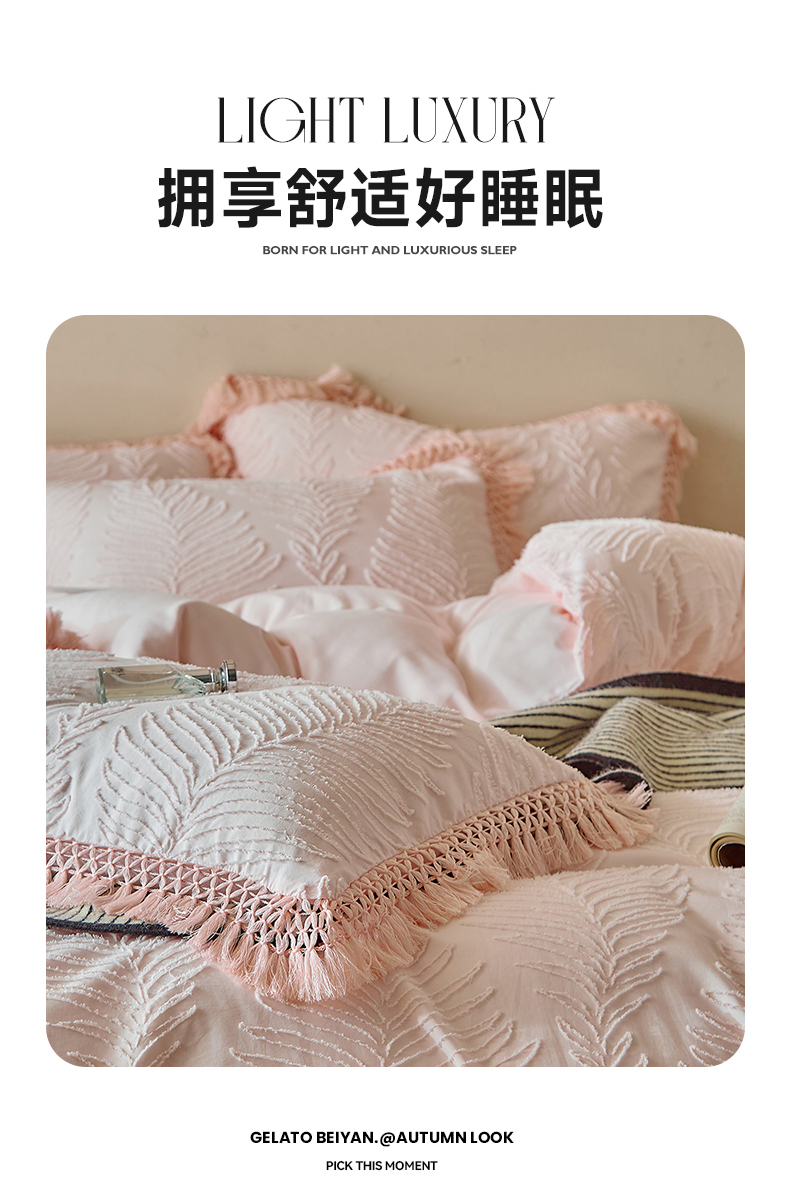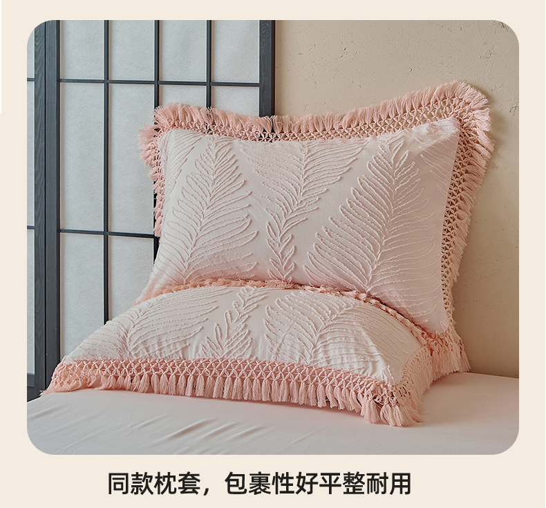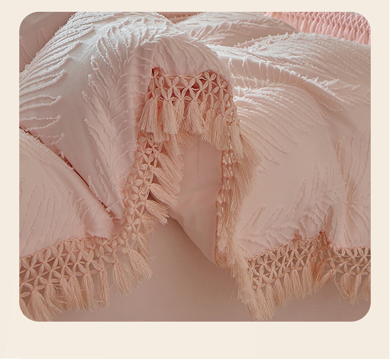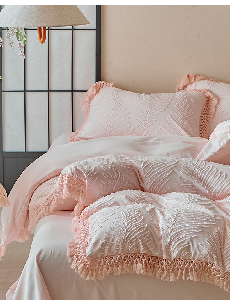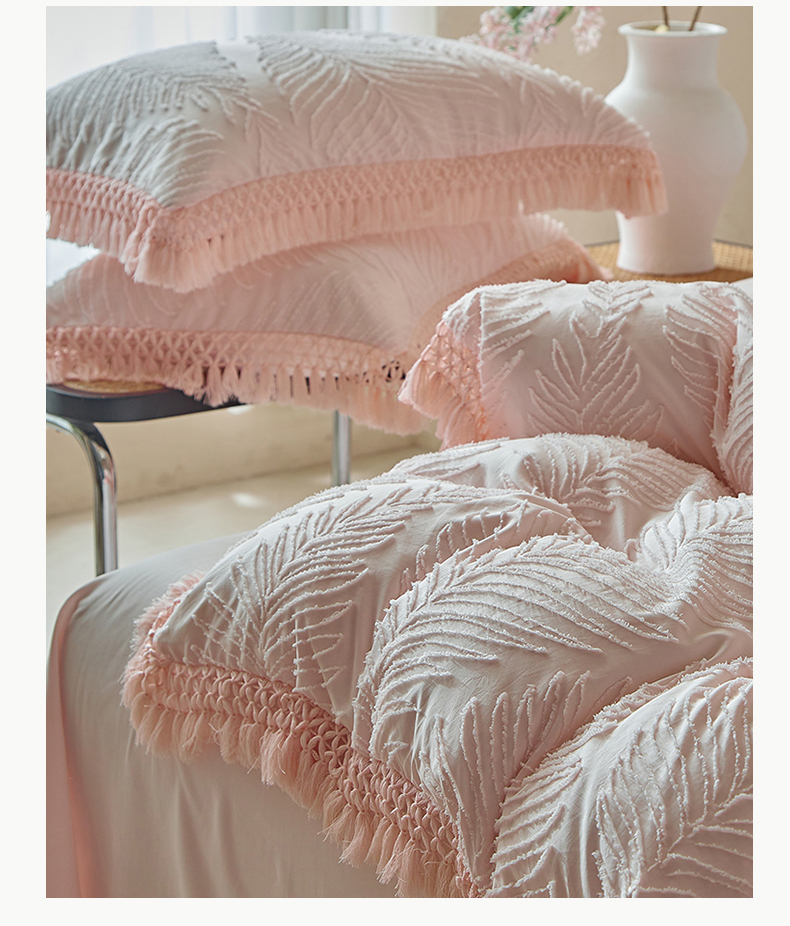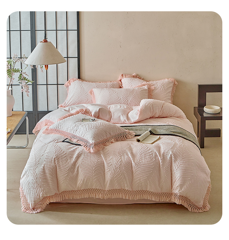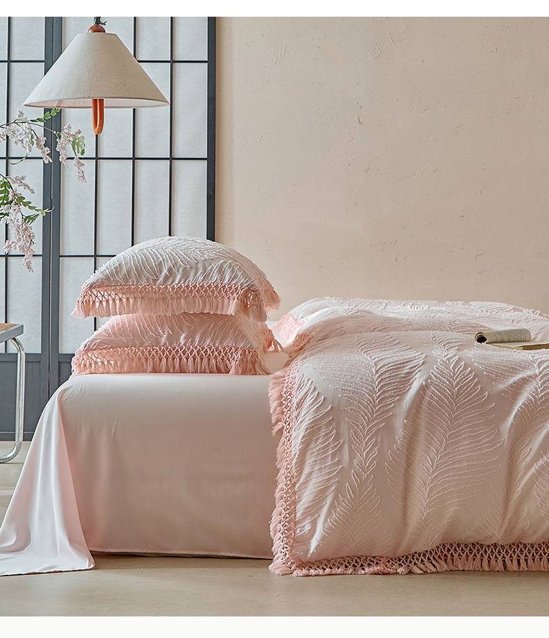 当前位置: 91家纺网 > 商品网购 > 床品套件 > 四件套 > 磨毛活性四件套 > 缘生活 2025新款剪花针叶流苏四件套四季款 民宿首选 剪花针叶浅粉+流苏