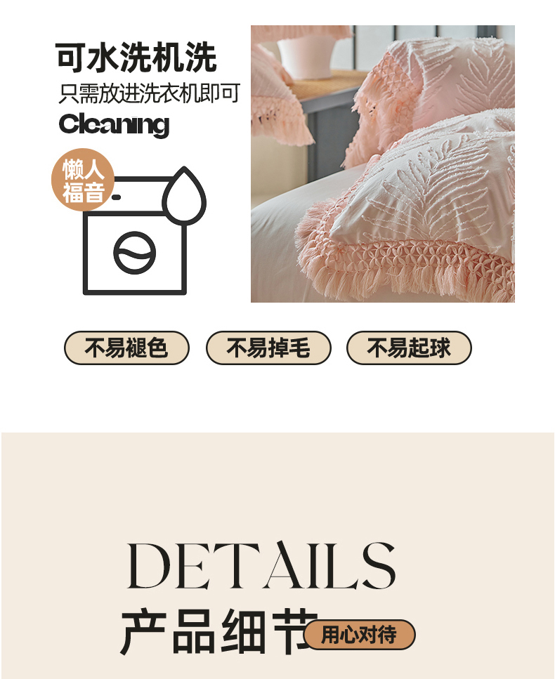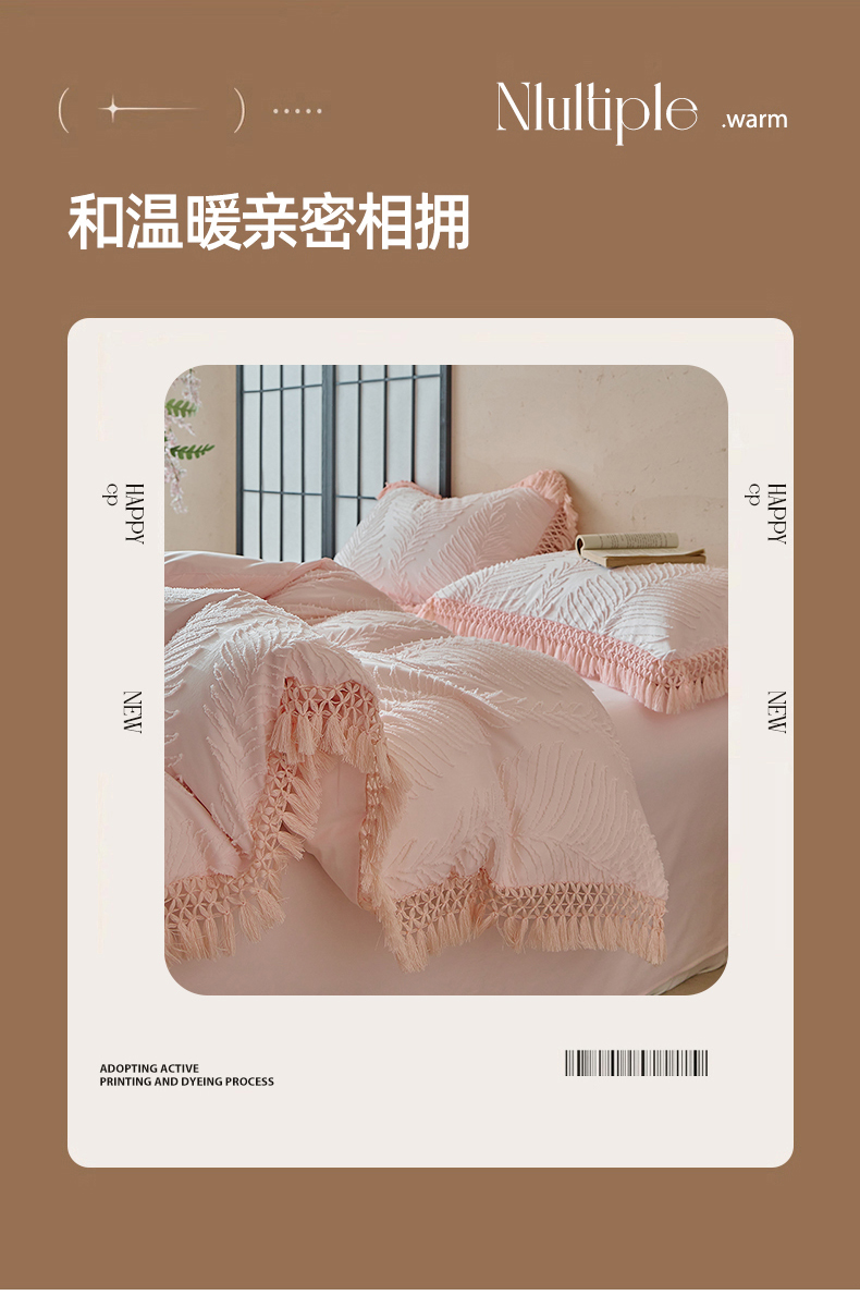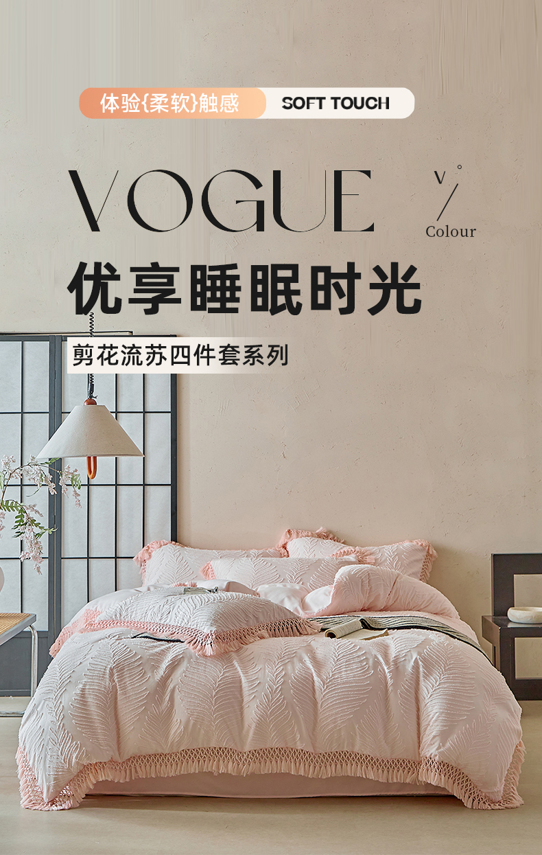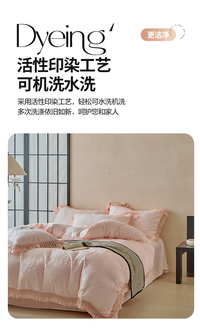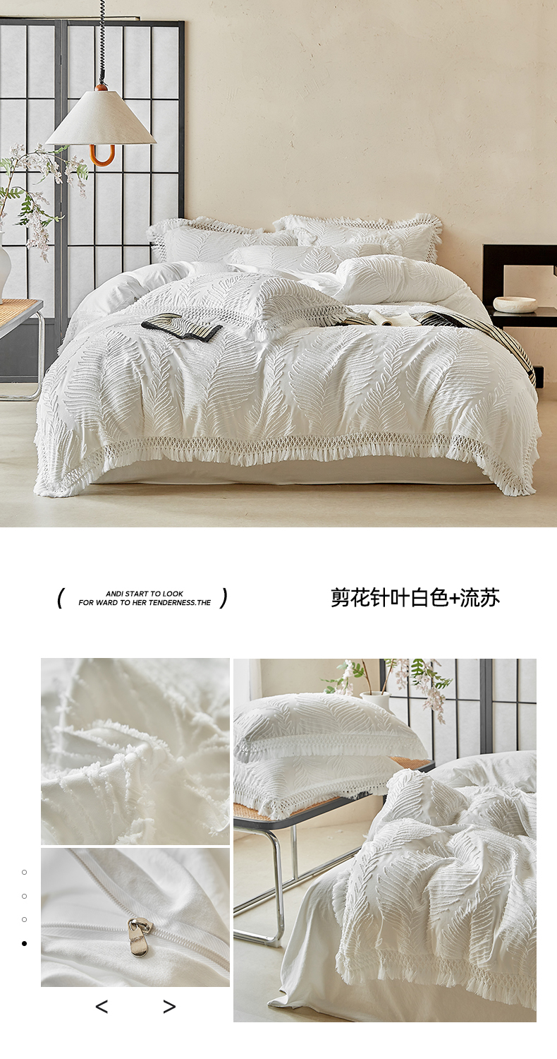 当前位置: 91家纺网 > 商品网购 > 床品套件 > 四件套 > 磨毛活性四件套 > 缘生活 2025新款剪花针叶流苏四件套四季款 民宿首选 剪花针叶浅粉+流苏