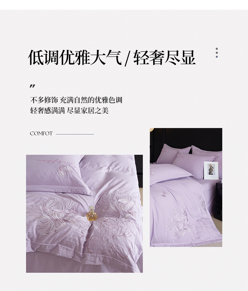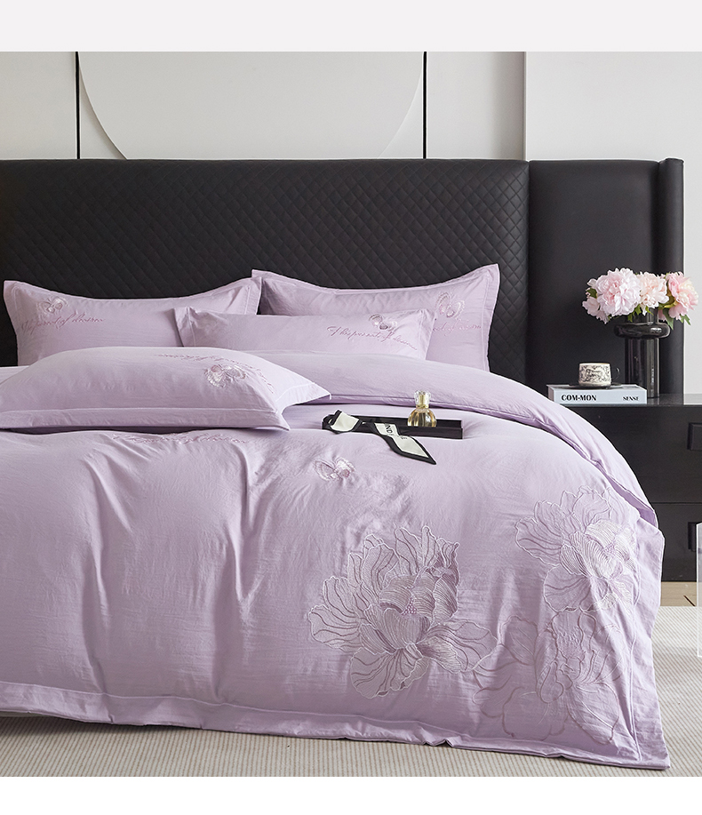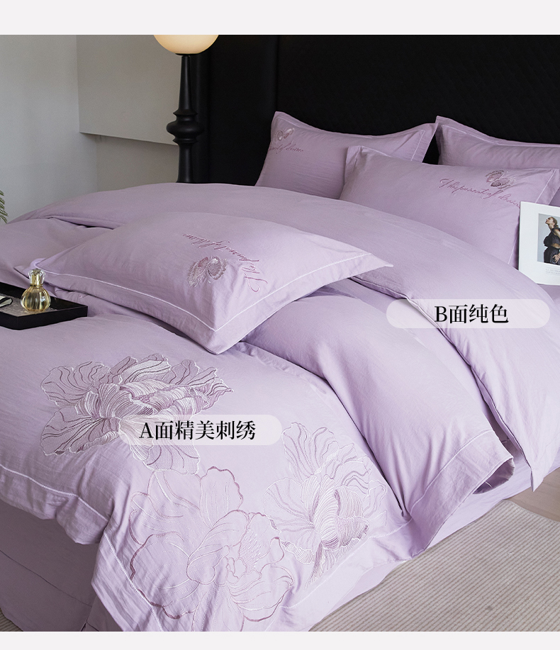 商品名称:金纱玉纺家纺 2025新款水洗棉工艺刺绣四件套 沁颜花开-紫