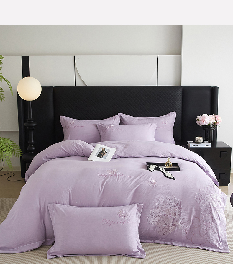 金纱玉纺家纺 2025新款水洗棉工艺刺绣四件套 沁颜花开-紫