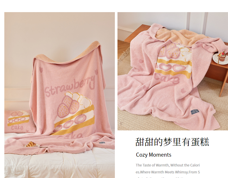 暖绵绵家纺 2025新款甜品点心系列毯子毛毯抱枕套 拉贝瑞