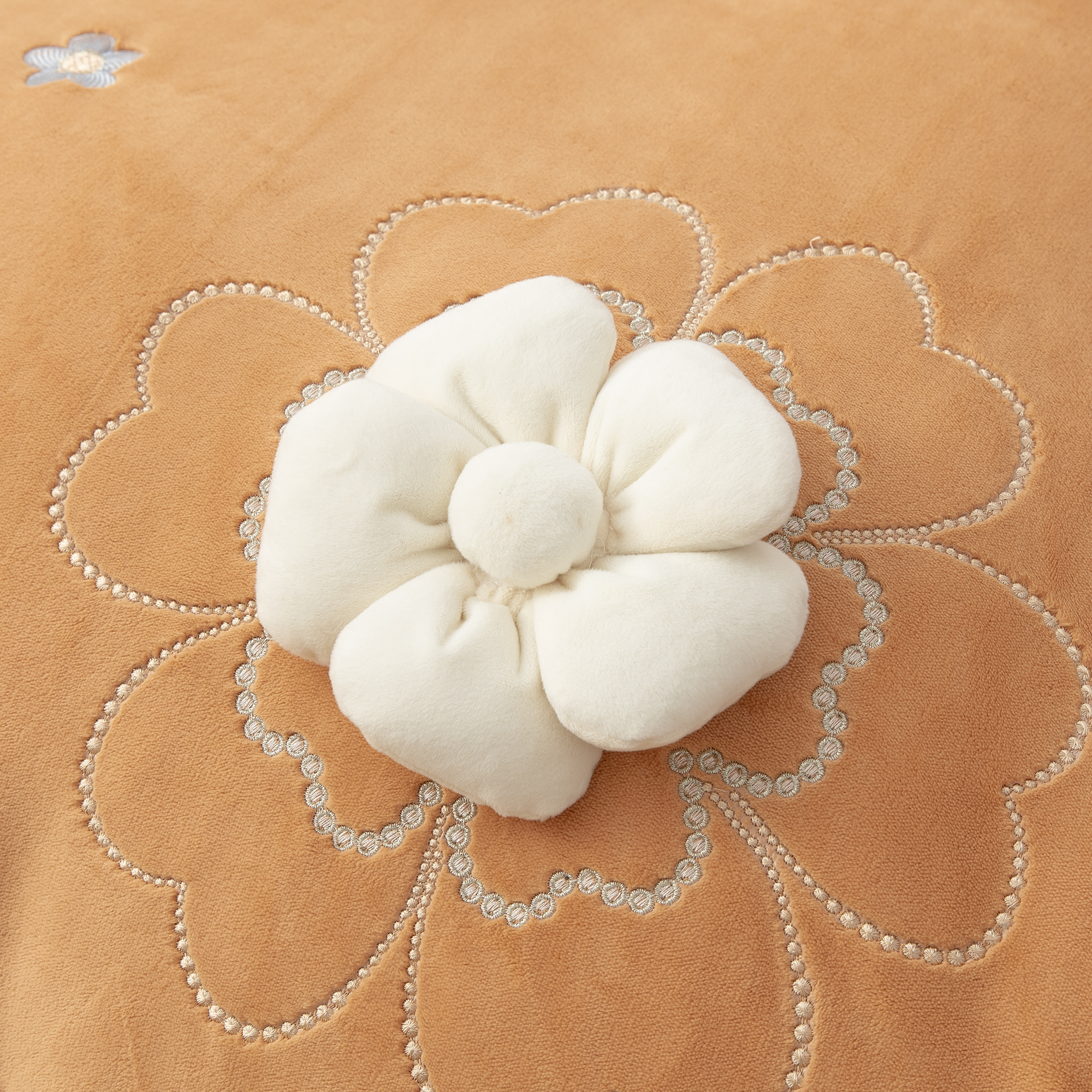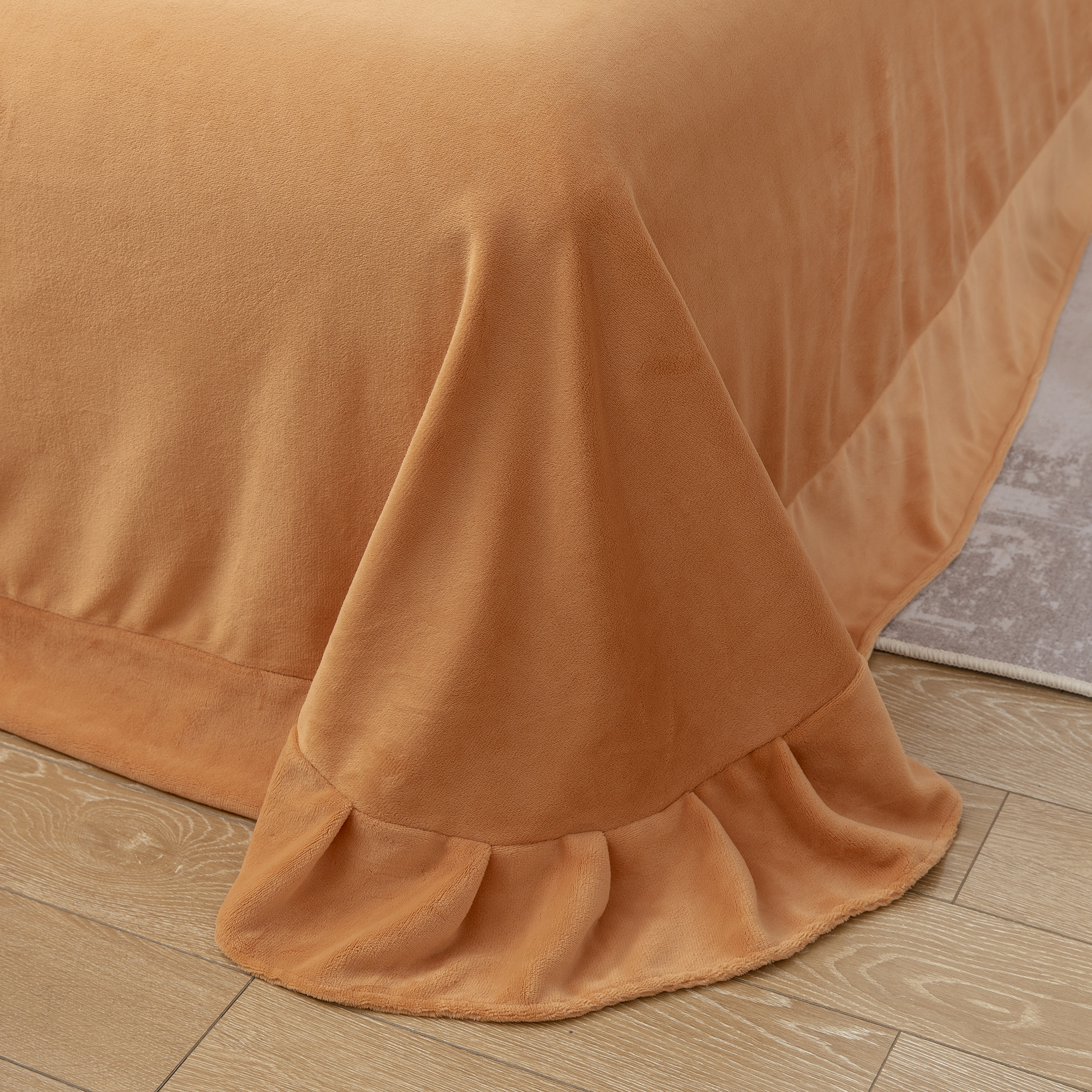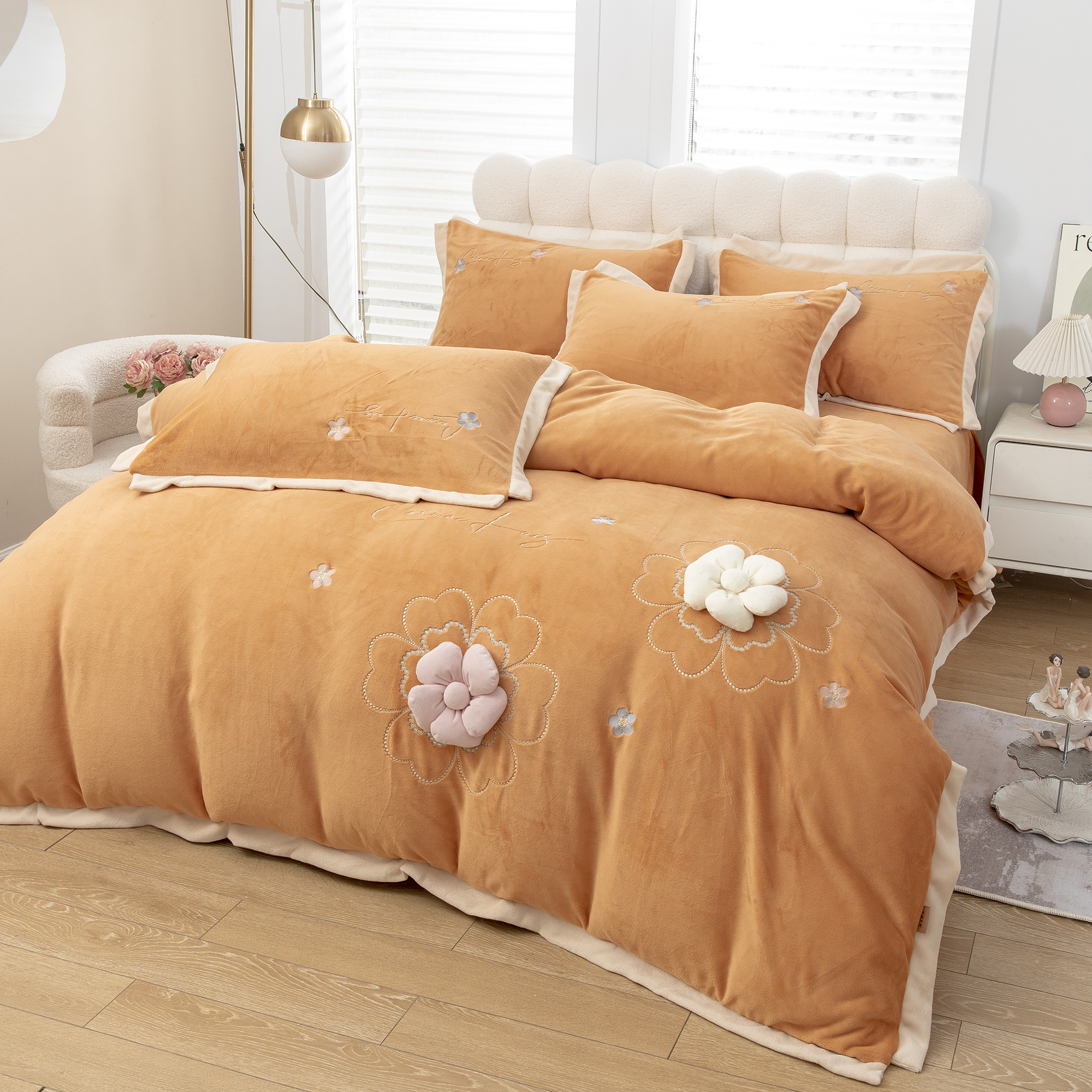 商品名称:贝尔 2025新款花之语-纯色高克重全消光蚕丝绒(赠送拎袋)-段角刺绣四件套 桔色