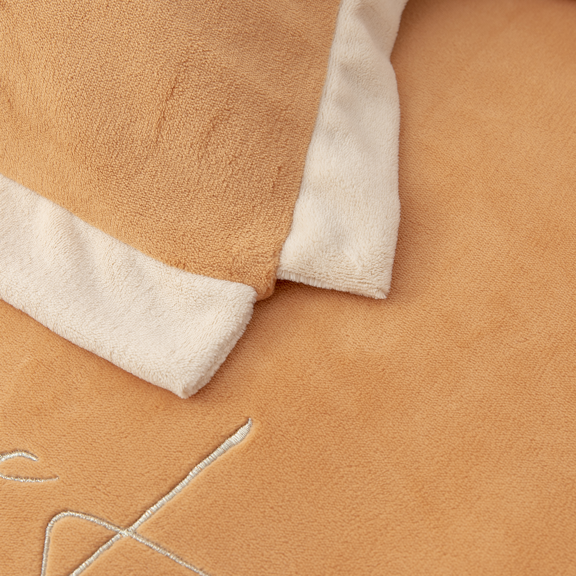 贝尔 2025新款花之语-纯色高克重全消光蚕丝绒(赠送拎袋)-段角刺绣四件套 桔色